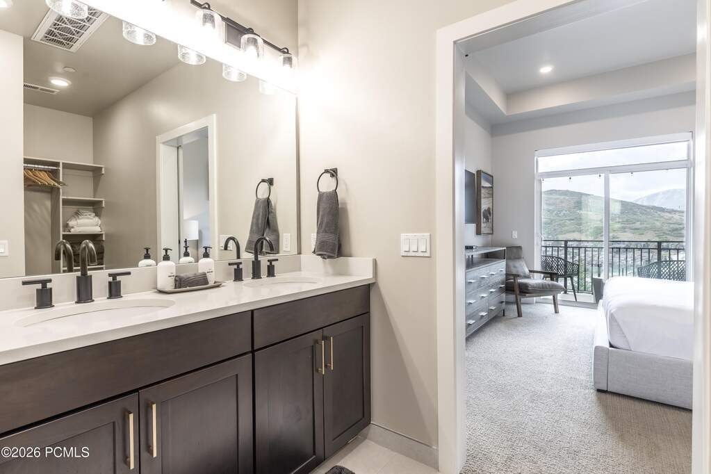 Welcome to your mountain retreat at Black Rock Ridge, where luxury, location, and lifestyle come together seamlessly. This beautifully appointed 2-bedroom condo offers the perfect blend of comfort and flexibility, featuring a lockout option ideal for rental income, guests, or added privacy. Step inside and enjoy high-end finishes throughout, including a gourmet kitchen with quartz countertops, stainless steel appliances, and a cozy gas fireplace. The spacious open-concept living area flows effortlessly onto a private balcony where you can take in sweeping views of the ski runs and the sparkling pool--a true year-round oasis. The thoughtful floor plan provides two spacious bedrooms, each with ensuite bathrooms. The lockout configuration allows for maximum versatility--use it as a two-bedroom residence or split into a one-bedroom and separate studio, each with private access. Located just minutes from Park City's world-class skiing, Old Town dining, and year-round outdoor recreation, Black Rock Ridge is a premier community offering unparalleled convenience with the peace of mountain living.