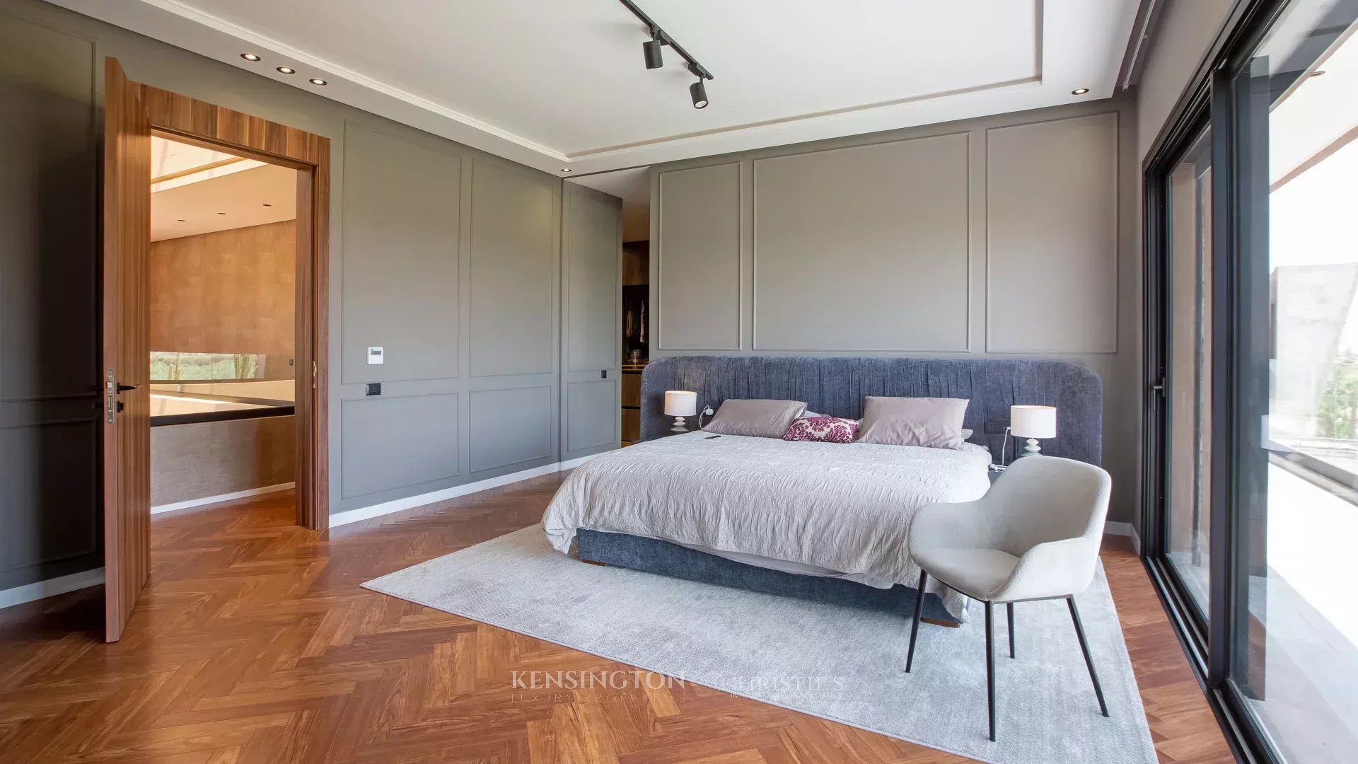 Villa Leyna is a beautiful contemporary villa on one of Marrakech's most renowned golf courses, with a breathtaking view of the golf course and the Atlas Mountains. The villa features more than 1,000 m² of land with little vis-à-vis on the front line of the golf course, giving it comfort and serenity.