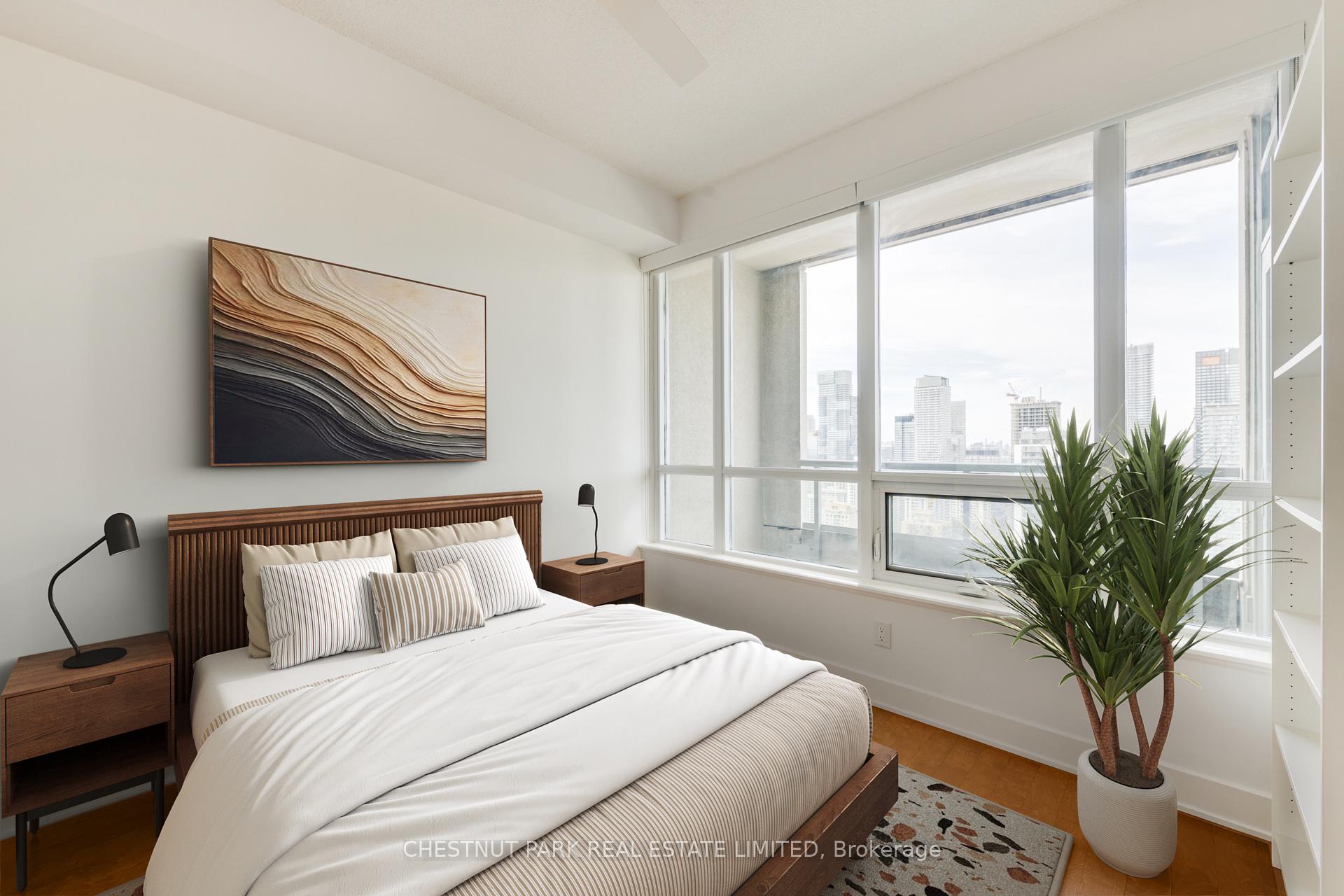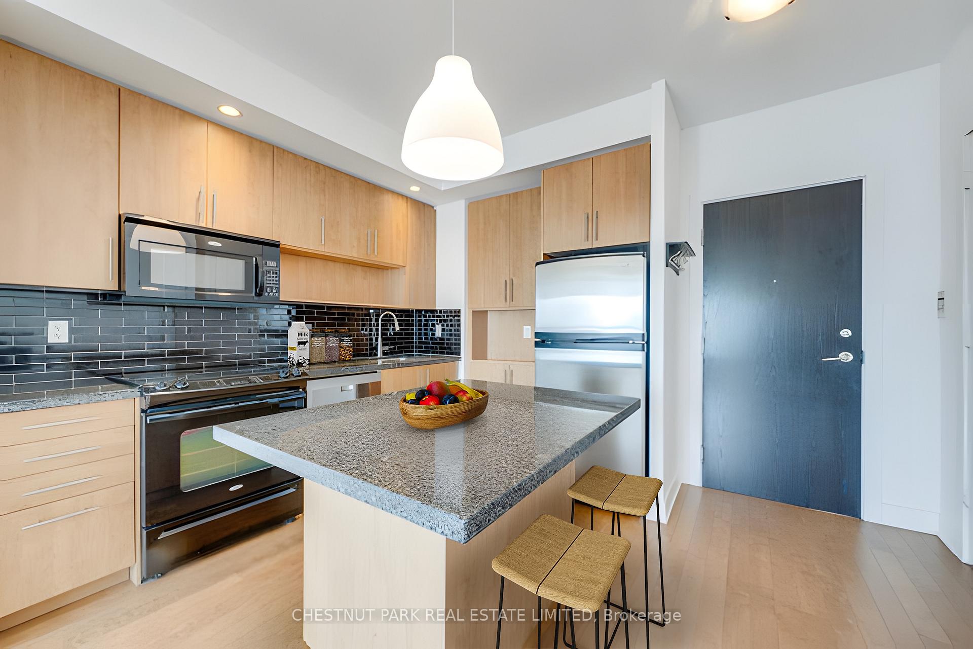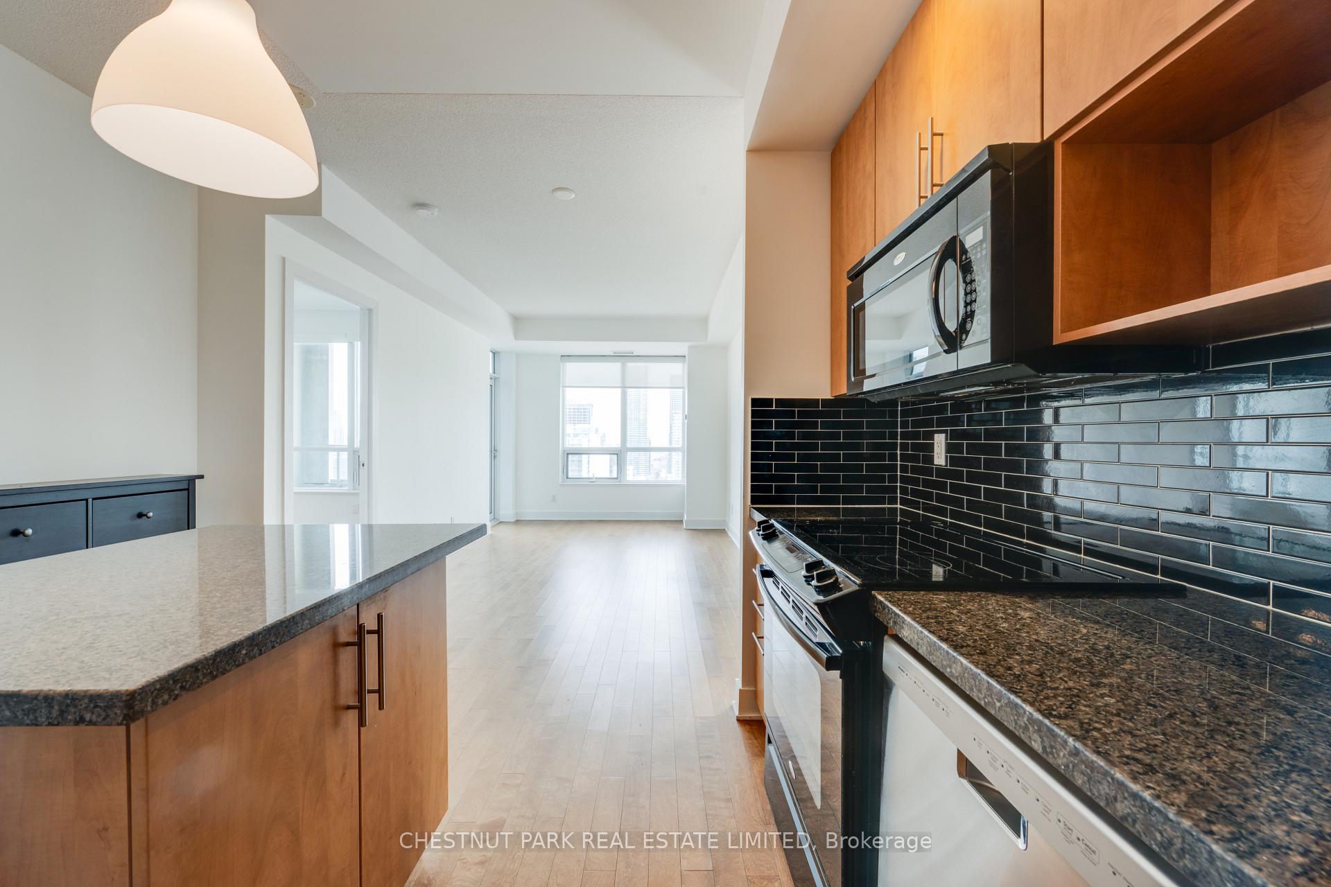 Welcome to Verve Condominiums - a vibrant, master-planned community by Tridel, known for quality construction and thoughtful design.This rarely offered northwest corner suite spans approximately 823 sq. ft. and features a highly desirable split-bedroom layout. The open-concept living, dining, and kitchen area creates an airy, inviting space that's perfect for entertaining. Floor-to-ceiling west-facing windows in the living room frame spectacular city views, which can also be enjoyed from the private balcony walkout.The modern kitchen is beautifully appointed with granite countertops, a glass tile backsplash, and a functional centre island - ideal for casual dining and hosting. The spacious primary bedroom offers a west-facing window, a walk-in closet, and a private 4-piece ensuite. The second bedroom enjoys both north and west exposures and includes a generous double closet. Rich hardwood flooring runs throughout, tying the entire suite together with warmth and elegance.For commuters, convenience is unmatched with access to two subway lines: Wellesley Station on the Yonge line and Sherbourne Station on the Bloor line.Residents enjoy an impressive array of amenities including 24-hour concierge and security, a rooftop pool, outdoor BBQs and terrace, a state-of-the-art tness centre, sauna, billiards room, theatre, and a large party room with catering kitchen. All just steps to shopping, dining, and everyday conveniences.One parking space is included. Stainless Steel Fridge, Stove, Built-In Stainless Steel Dishwasher, Microwave/Hoodfan, Washer, Dryer, All Existing Window Blinds, All Existing Light Fixtures, Shoe Cabinet And Above Mirror. Parking Spot