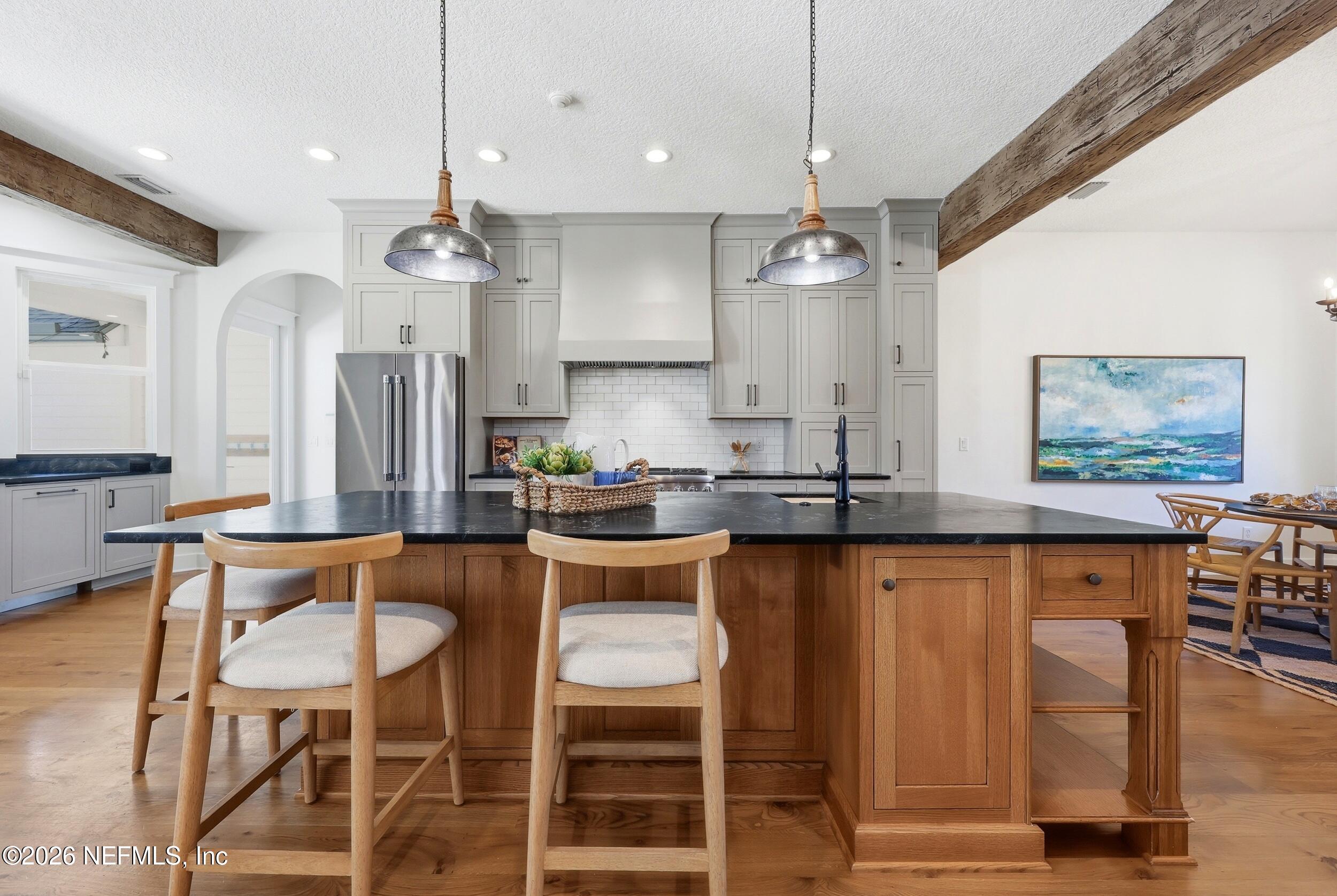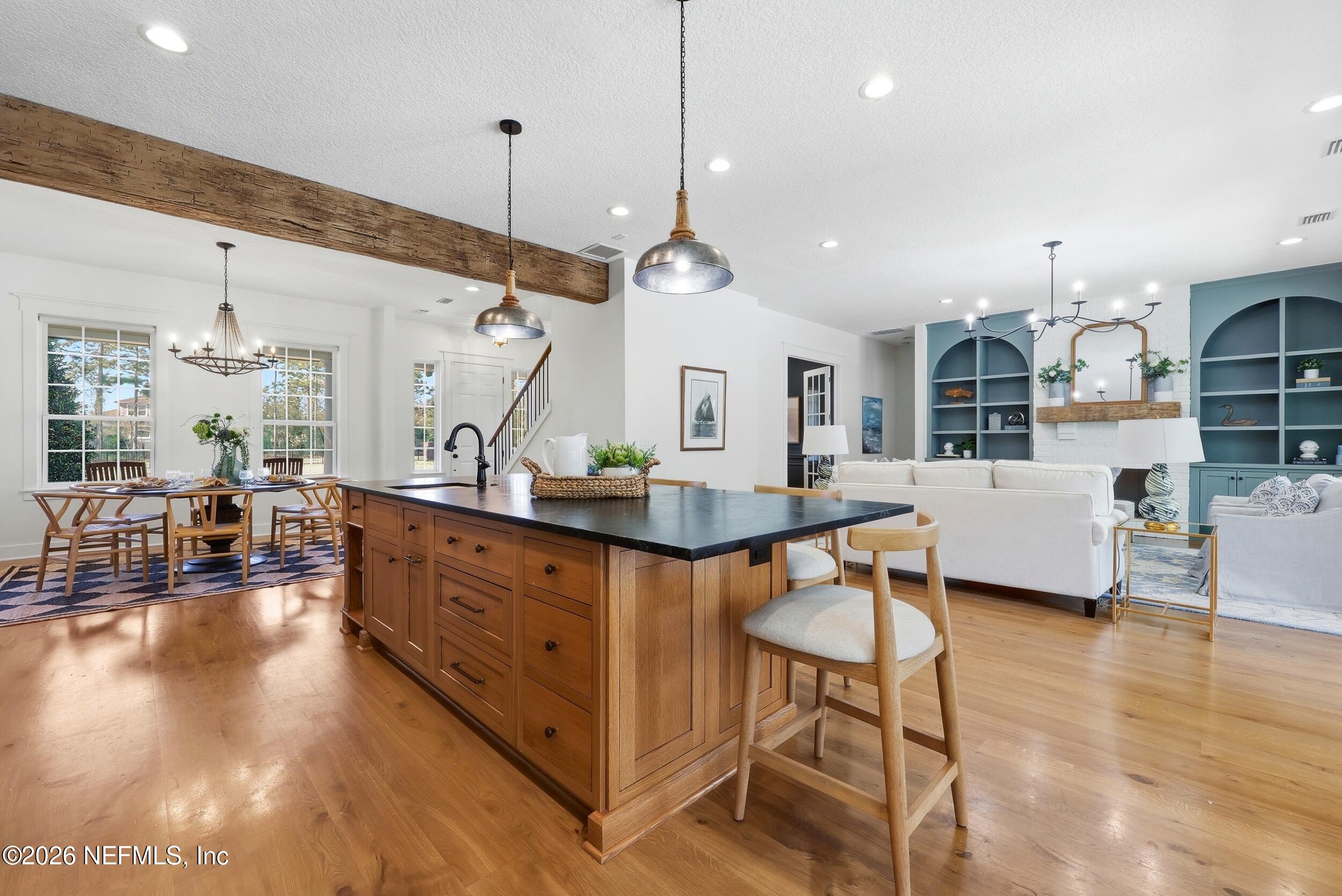 Welcome to this stunning waterfront retreat on Bishop Estates Rd, where timeless design and exceptional outdoor living come together. This beautiful home showcases gorgeous natural materials throughout, including rich hardwood floors and an abundance of natural light that fills every space. The thoughtfully designed layout offers both comfort and flexibility, featuring a dedicated home office and a private in-law suite complete with its own kitchenette, living area, full bathroom, and bedroom. Step outside and experience the true highlight of the property. Set on the highly sought-after Durbin Creek with direct access to the St. Johns River, the home offers an incredible waterfront lifestyle. A charming boardwalk leads you to a private dock with a covered area, ideal for fishing, boating, or relaxing while taking in the peaceful views. The expansive lot provides both a generous front yard (with automatic gate) and a large backyard designed for entertaining and everyday enjoyment. The outdoor living space is nothing short of spectacular, featuring a beautiful pool, summer kitchen, custom fire pit, and multiple-covered and open-seating areas perfect for gathering with friends and family year-round. With welcoming curb appeal, exceptional craftsmanship, and an unbeatable waterfront setting, this home offers the perfect blend of luxury, comfort, and outdoor living.