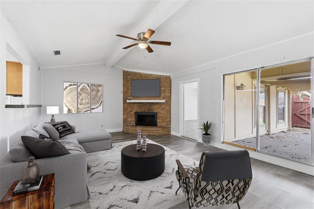Experience the perfect blend of space and potential in this Garland gem, where vaulted ceilings and a cozy brick fireplace welcome you into a home designed for effortless living. The open floorplan flows beautifully, anchored by luxury vinyl plank flooring and a neutral color palette that serves as the perfect canvas for your personal style. The kitchen is a functional dream for the home chef, graced with stainless steel appliances, a pantry, and ample cabinetry for all your storage needs. Retreat to the convenience of two main-floor bedrooms, including a primary suite with a generous walk-in closet and a flexible secondary bedroom that serves as an ideal nursery or quiet home office. The main level is anchored by a massive game room that offers endless possibilities for a home theater, gym, or expansive play space. Secluded for ultimate privacy, the second floor features two additional bedrooms and a full bath, providing a dedicated wing for guests or family members. Practicality meets lifestyle with an oversized utility room boasting built-in cabinets and space for an extra fridge, ensuring every chore is a breeze. Outside, your private backyard with mature trees and a covered patio provides a peaceful escape, complete with a storage shed and an attached carport. Nestled in a quiet subdivision with easy access to I-30, this home offers a quick commute to downtown Dallas while providing the space you have been searching for. Take a first-person look at this gorgeous home! Click the Virtual Tour link to see the 3D Tour!