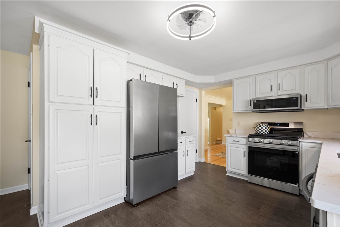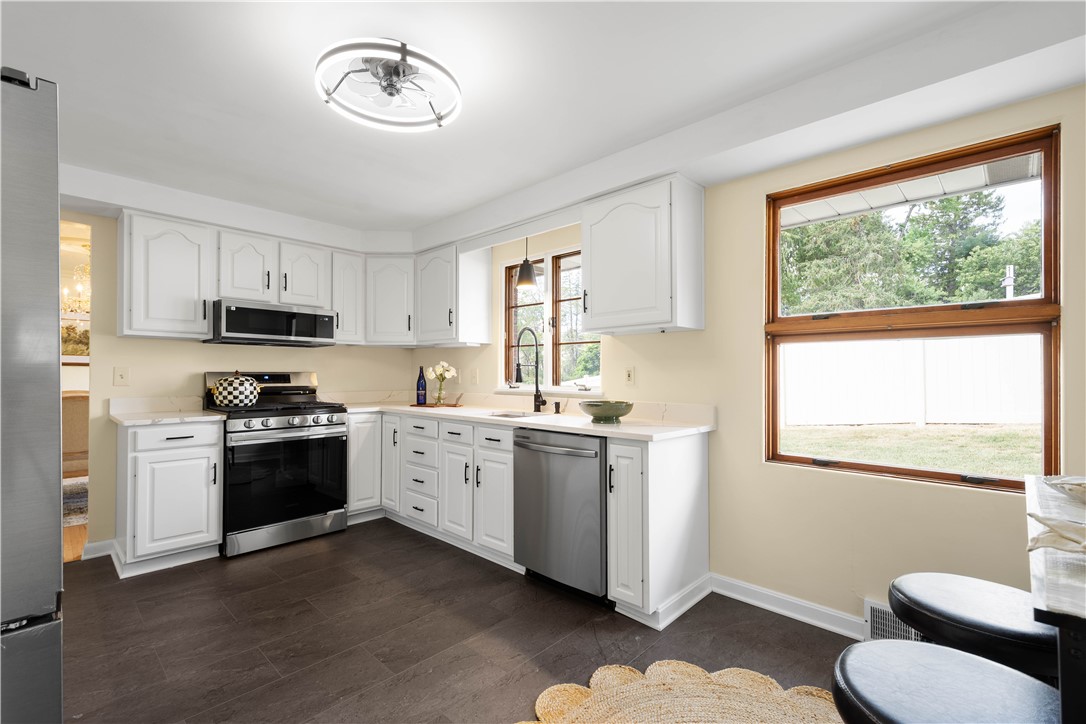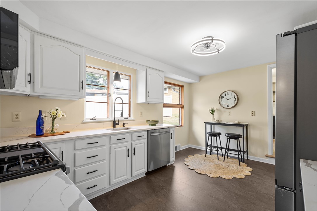 CUSTOM AND CLASSY SPRAWLING RANCH! INCREDIBLE UPDATES in 2025 while keeping with the original charm, this spacious home will wow you and give you peace of mind for years to come! Privately set on a perfectly sized lot in one of the most amazing locations in Bethel Park! Awesome proximity to major arteries, shopping, dining, medical care, and schools! Additionally this home is walking distance to the "T" for easy access into the city for work or play!! Let's talk about one of the most special features here...the covered and expansive front porch!! A serene place to sit and enjoy the tranquility of this extremely quiet street! From the porch, seamlessly step inside and be welcomed by the feeling of quality and fall in love with the bright open feel and refinished original hardwood floors! The spectacular kitchen, laundry, and 4th bedroom/office all boast brand new flooring which compliment the other updates and warm originality of the home. Speaking of the 4th bedroom, or DEDICATED OFFICE SPACE..it is separated from the other living areas and the bedroom wing and has it's own half bath; plus a separate entrance! Your main floor convenient laundry room has it's own laundry sink, folding counter and loads of extra storage. From here is easy access the private backyard as well. The enormous main floor living room allows for an array of seating options complimented by the stone surround fireplace and most amazing natural light. The very open custom design allows family and friends to flow right into the gorgeous dining area which leads us into that FABULOUSLY UPDATED EAT-IN KITCHEN!! It's truly SPECTACULAR! Boasting new cabinetry, quartz countertops, 2 pantries and we have brand new appliances as well! Through the door into the walk-in pantry is access to the walk-up attic which expands the length of the home....can you say storage for DAYS..and we haven't even gone downstairs yet! The bedroom wing is next with an updated lovely main hall bathroom for the 2nd and 3rd bedrooms! Both bedrooms are generously sized with great light too! The Primary Suite has that WOW factor you'd expect w/two closets and a fantastic refreshed private ensuite bathroom. Travel down to find the EXPANSIVE GAME ROOM featuring another gas fireplace, full bar, new carpet, a SECOND FULLY FUNCTIONING KITCHEN and the THIRD FULL BATH!! - YES..a possible In-Law Suite for sure! Did I mention the DUAL staircases that access the lower level? BRILLIANT and so convenient to have accessibilty off the garage side as well as the main living area! You won't want to miss touring one of the most pristine and special homes on the market today!