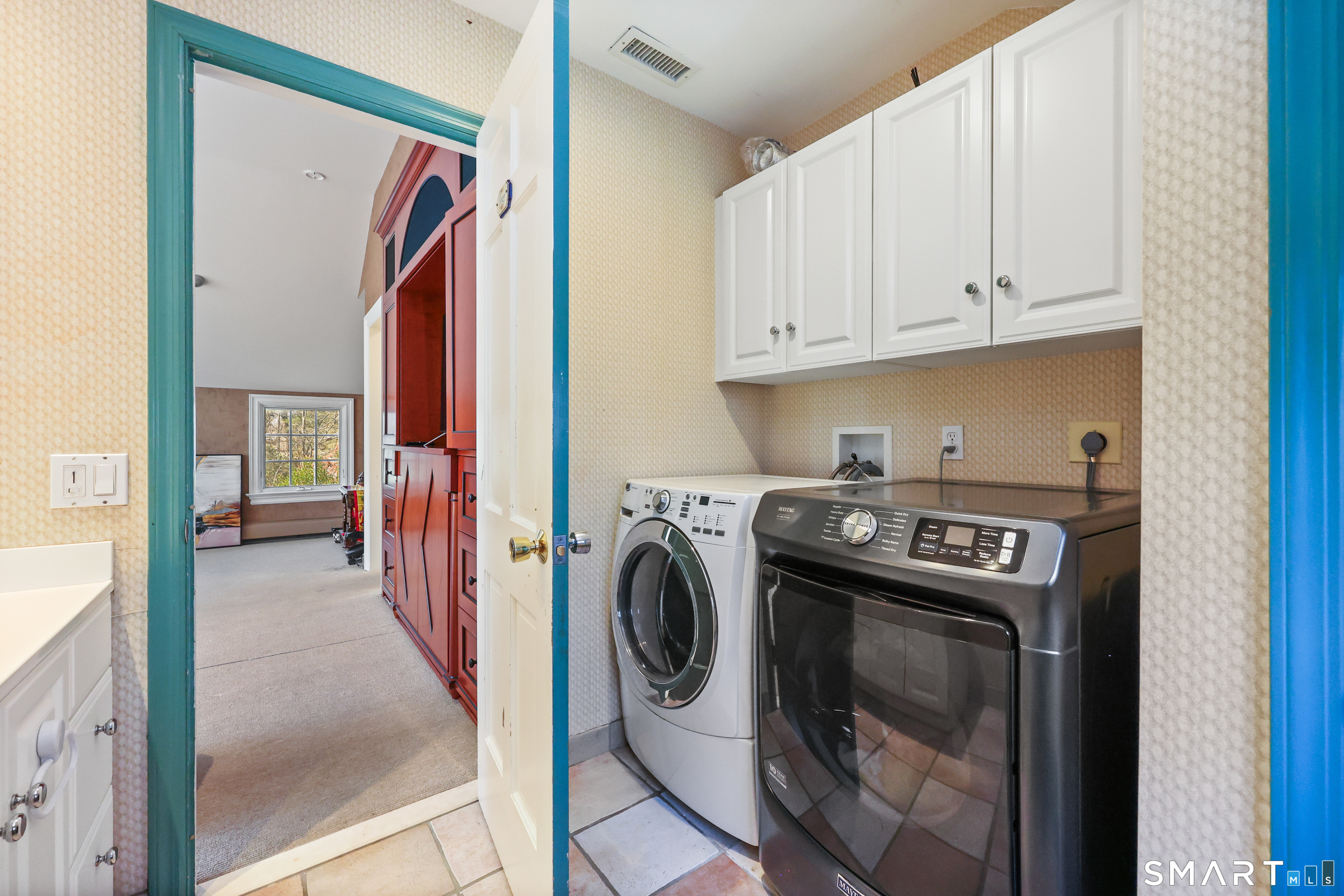 Tucked away on 2.18 private acres, this beautifully designed 5-bedroom, 6-bathroom home offers exceptional space, natural light, and a layout ideal for both everyday living and entertaining. Discover hardwood floors and a thoughtfully designed main level. The open kitchen flows seamlessly into the family room, anchored by a fireplace that creates a warm gathering space. A sun-filled den with a wall of windows and custom built-ins provides the perfect place to relax or work from home. Adjacent, convenient laundry room and half bath. The first floor includes a private home office with wet bar, spacious sunroom with tile flooring that brings the outdoors in. For entertaining, the formal living room with fireplace and elegant dining room open directly to a large deck overlooking the expansive property, creating effortless indoor-outdoor living. Upstairs, the primary suite offers a true retreat, featuring a spa-inspired bath with double sinks, soaking tub, separate shower, and dressing room with walk-in closet. Two bedrooms share a full bath, while two additional bedrooms and another hall bath provide comfortable accommodations for family and guests. The fully finished walk-out lower level with fireplace adds exceptional versatility-perfect for a recreation space, media room, gym, or additional entertaining area. A walk-up attic provides valuable storage and potential expansion. Located in a desirable Wilton setting, combining privacy, space, and classic New England comfort