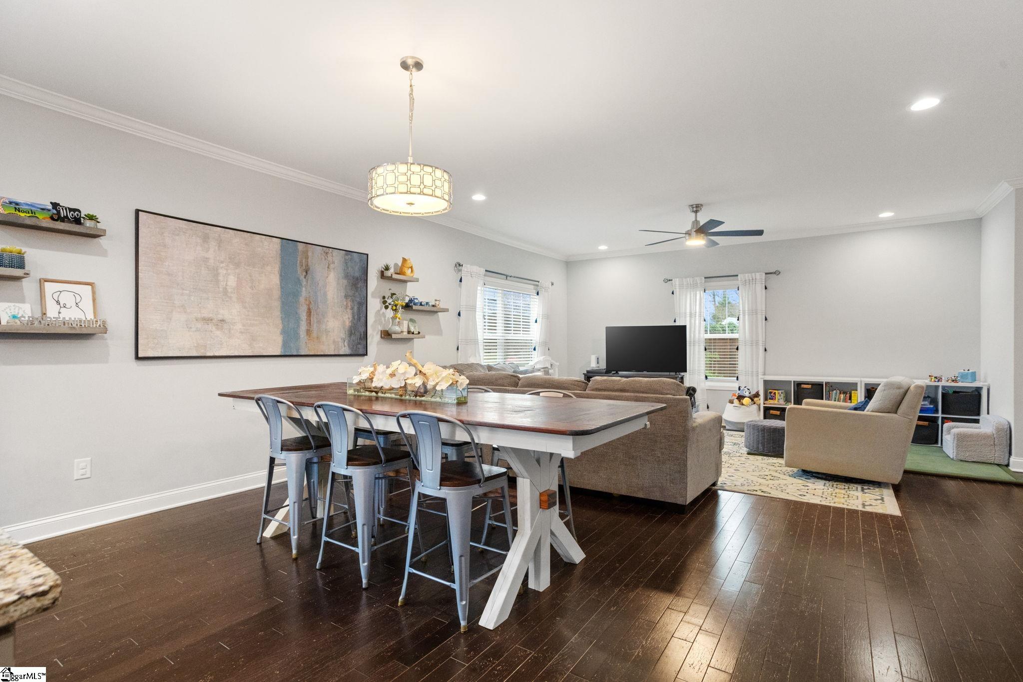 Location, Location, Location! This charming farmhouse-style home sits on a great lot and offers the perfect blend of comfort and convenience. Featuring 3 bedrooms and 2.5 baths, the spacious great room flows seamlessly into the dining area and kitchen, creating an open layout ideal for everyday living and entertaining. The kitchen is a true highlight with a beautiful granite island and countertops, coffee bar, and full package stainless steel appliances - perfect for gathering with family and friends. Upstairs you'll find a spacious 19x16 primary suite complete with a walk-in closet, dual sinks, and a tile shower with frameless glass door. A huge laundry room adds extra convenience to the second floor. Step outside and relax this spring on the large patio overlooking the fenced backyard, offering plenty of space for entertaining, pets, or play. Additional features include extra parking in the front and a long driveway, making it easy to accommodate guests. Conveniently located with easy access to 85, restaurant and shopping!! Mature neighborhood!