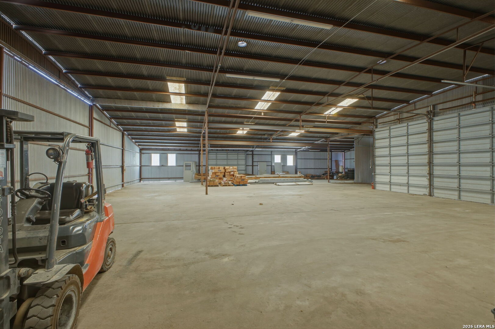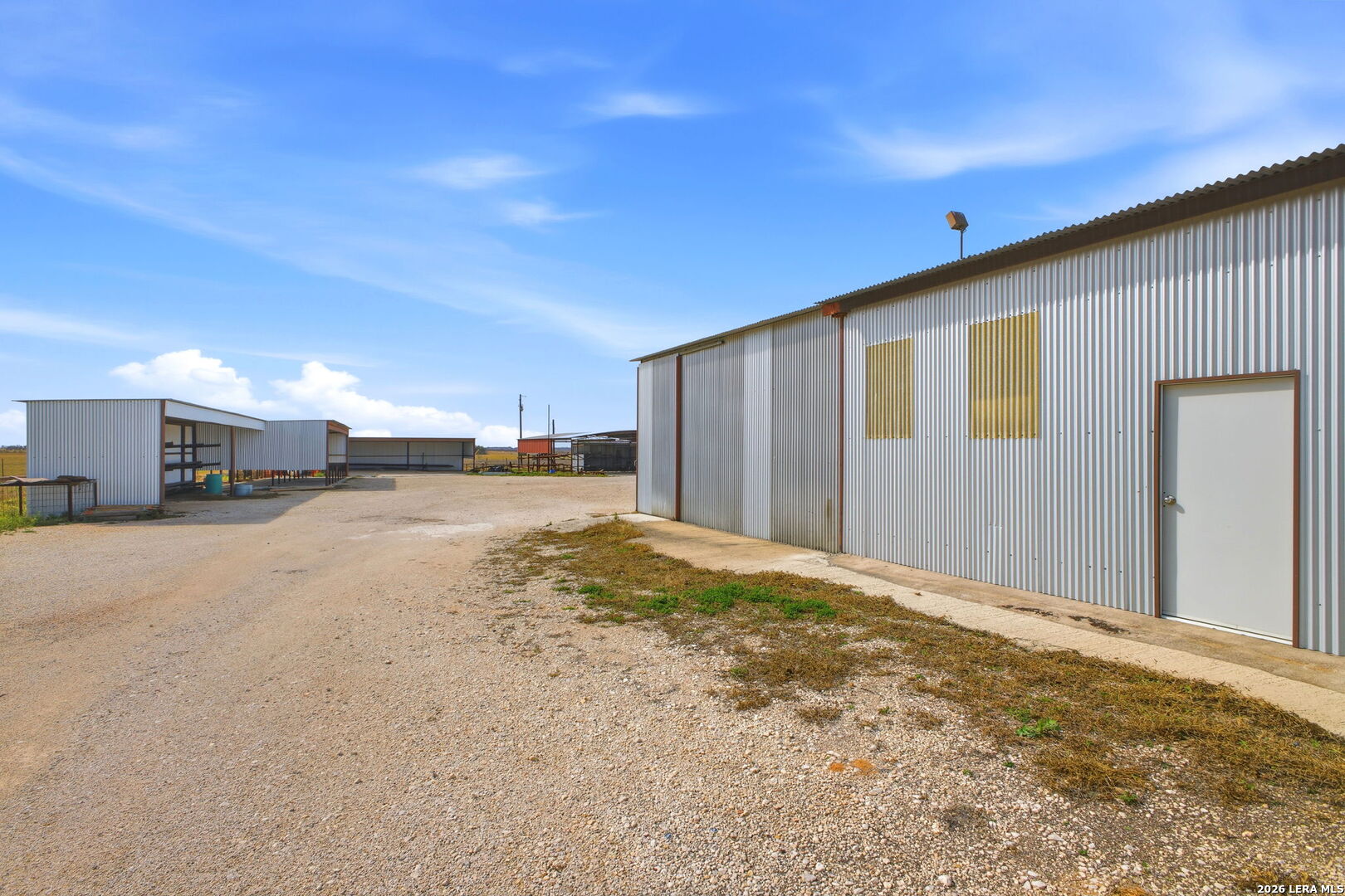 3.36-acre commercial and farm & ranch property featuring approximately 16,000 sq ft of total building improvements, including a 7,500 sq ft enclosed warehouse/shop with concrete slab, five overhead doors, three sliding doors, three walk-through doors, and a 20' x 30' interior office space, plus a 1,634 sq ft open-roof extension providing additional covered workspace. Four additional open-style buildings totaling approximately 6,500 sq ft provide flexible covered storage and equipment parking. Electric and water utilities are connected. The property also includes approximately 25,000 sq ft of stabilized road-base yard ideal for equipment storage, fleet parking, or material staging. Property and acreage include the access road from the buildings to FM 536. Available for sale or lease.