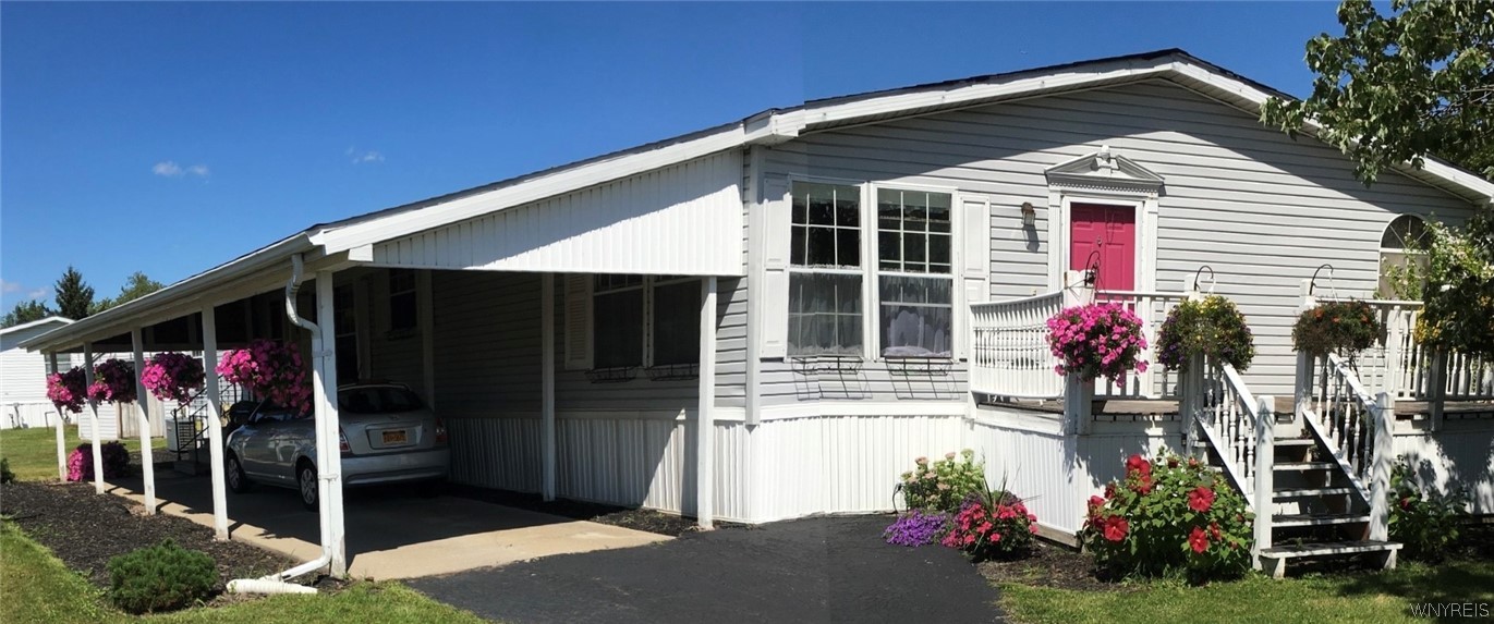 Step inside this beautifully decorated doublewide that instantly feels like home. The stunning kitchen is truly the heart of the home - so stylish and welcoming you may never want to leave it! A unique layout creates a private guest suite, perfect for visitors or extended stays, while both full baths have been thoughtfully designed for comfort and function. Outside, enjoy your own little retreat. The carport features a removable privacy curtain - ideal for relaxing outdoors while still enjoying your own quiet space. Additionally, the gorgeous low-maintenance perennials bring color and beauty season after season without all the work. Need space for projects or hobbies? The extra-wide shed wired for electric and a workbench are ready for you. Updates include newly done kitchen, some flooring, HWT, insulation, some plumbing, and more. Great location close to shopping, dining, and everyday conveniences, plus easy access to the 990 for commuting or getting anywhere you need to go. Comfortable. Beautiful. Convenient.