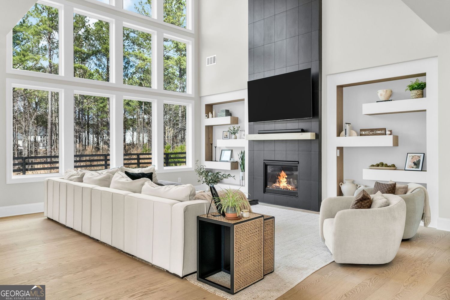 Better than NEW! This beautifully 5 bedroom, 4 full bath upgraded home offers style, comfort, and a dramatic two-story great room filled with natural sunlight that will "WOW" you. The great room includes one of a kind custom built-ins and wall of windows that overlook your private level backyard. You will fall in love with the open floor plan from the moment you entry the welcoming foyer. The floor plan is perfect for everyday living and entertaining, and includes a private office with custom double doors and an amazing oversized formal dining room. The gourmet kitchen features custom cabinetry, an oversized island, stainless steel appliances, eat-in breakfast area and plenty of space for gathering and enjoying this open floor plan that flows with sunlight. Upstairs, the primary suite boasts a large custom closet and a luxurious spa-like bath with double vanities, a soaking tub, and an upgraded shower. All secondary bedrooms are large and offer walk-in closets with plenty of closet and storage space. One bedroom on main level is the perfect bedroom, office or playroom. Additional highlights include built-in cabinetry, a custom mudroom, upgraded hardwood floors throughout, and a beautiful full bath on the main level. Conveniently located just minutes from Milton, Alpharetta, and Woodstock, this home offers the perfect blend of elegance, functionality, and location