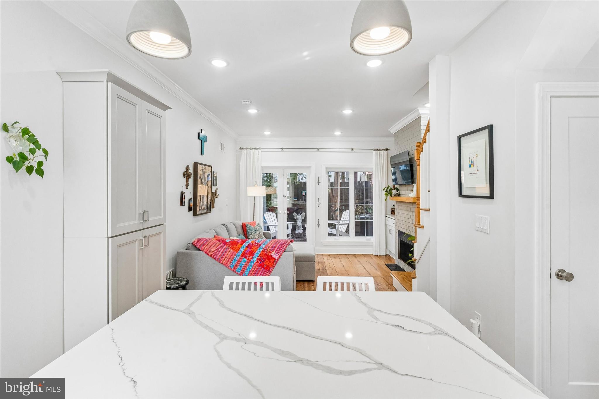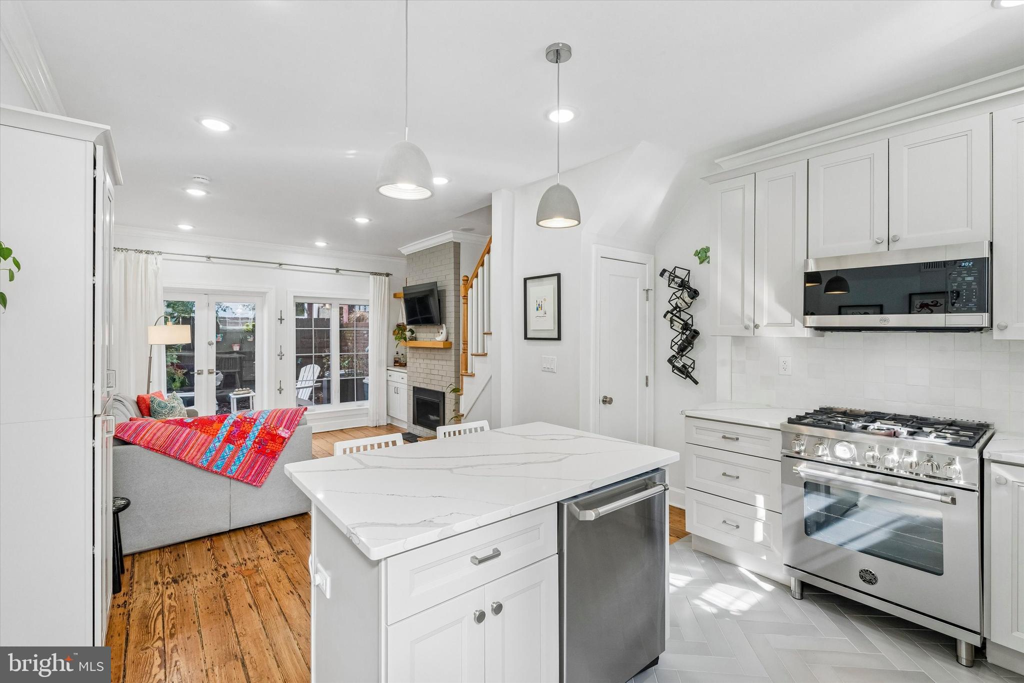 Incredible opportunity to own a beautifully reimagined home on one of the most charming blocks in Rittenhouse Square. Thoughtfully renovated from top to bottom, 2047 Waverly Street seamlessly blends modern design, refined architectural details, and preserved original character to create a truly exceptional residence. This stunning home offers 3 bedrooms, 2 full bathrooms, a lower-level den, and a private outdoor patio - an ideal combination of style, comfort, and functionality. The classic red brick fa ade with black trim creates striking curb appeal and sets the tone for what awaits inside. The main level welcomes you with tall ceilings, abundant natural light, and a bright, airy layout. A sleek monochrome kitchen serves as the centerpiece of the home, featuring 42-inch gray cabinetry, quartz countertops, a designer tile backsplash, herringbone tile flooring, and high-end Bertazzoni stainless steel appliances. Pendant lighting highlights the island with seating, creating the perfect space for casual dining or entertaining. Restored original hardwood floors flow throughout the dining area and into the inviting living room, where a fireplace and custom built-ins add warmth and character. French doors open to a peaceful private patio, also accessible via a rear alley, providing an ideal outdoor retreat for gardening, entertaining, or enjoying a quiet morning coffee. The second level features two bright bedrooms with ample closet space, positioned at opposite ends of the floor for privacy, along with a beautifully updated full bathroom at the center. The entire third floor is dedicated to a luxurious, hotel-inspired primary suite featuring soaring cathedral ceilings, skylights, large windows, a fireplace, and built-in cabinetry. A spacious custom-built walk-in closet offers the ultimate in organization, while the spa-like bathroom includes a double vanity, linen shelving, and a stunning glass-enclosed dual-head shower finished with elegant chevron tile. The finished lower level is completely DRY giving the owner peace of mind from the older wet basements that typically exist and provides additional versatile living space ideal for a den, home office, gym, or extra storage. Nearly every aspect of the home is brand new, including all plumbing with a new sewer line, complete electrical wiring and panel, new windows, two fully renovated bathrooms, the designer kitchen, and all mechanical systems, including a new gas furnace, central air conditioning, and gas hot water heater, along with a full-size washer and dryer. Located in the heart of Rittenhouse Square, the home offers exceptional walkability, with a Walk Score of 99, a Transit Score of 96, and a Bike Score of 100. Daily conveniences are multiple cafes, Food and Friends, South Square Market, and Wawa are just steps away, along with some of Philadelphia's most beloved restaurants, including Pub & Kitchen, Sabrina's Cafe, Parc, Borromini, D'Angelos and Trattoria Carina. Rittenhouse Square Park and the Schuylkill River Trail are only a few blocks away, and the property offers easy access to Center City, the University of Pennsylvania, public transportation, and I-76. Situated within the highly sought-after Greenfield School Catchment and offering low-maintenance living with no association fees, this hidden Rittenhouse Square gem delivers the perfect balance of location, design, and modern upgrades. Schedule your private tour today.