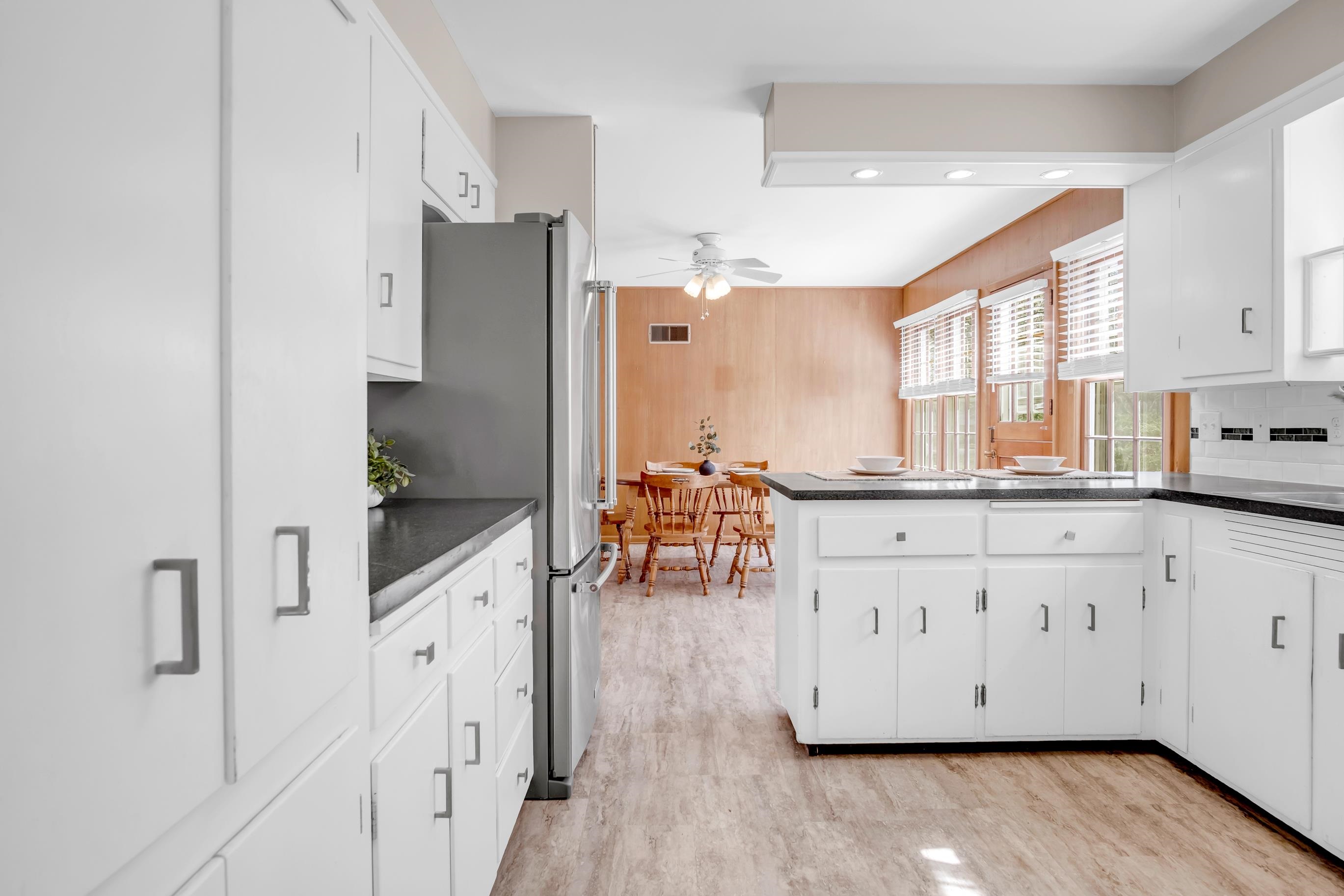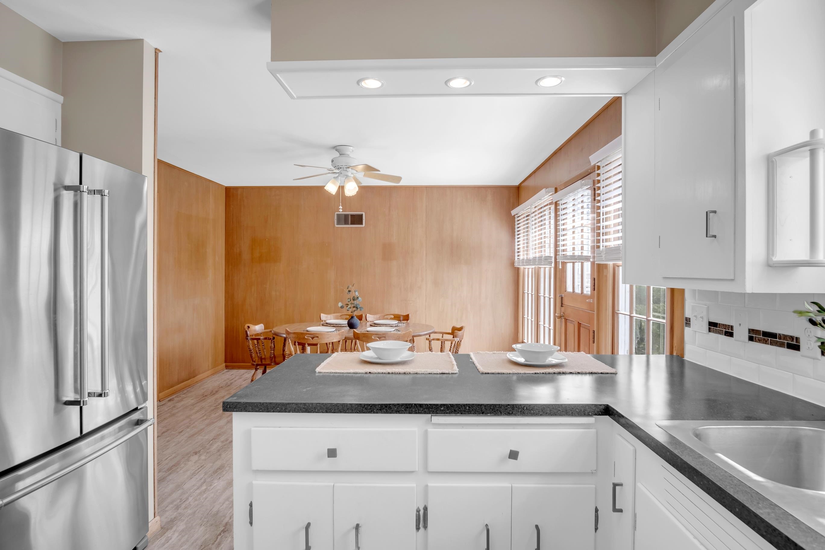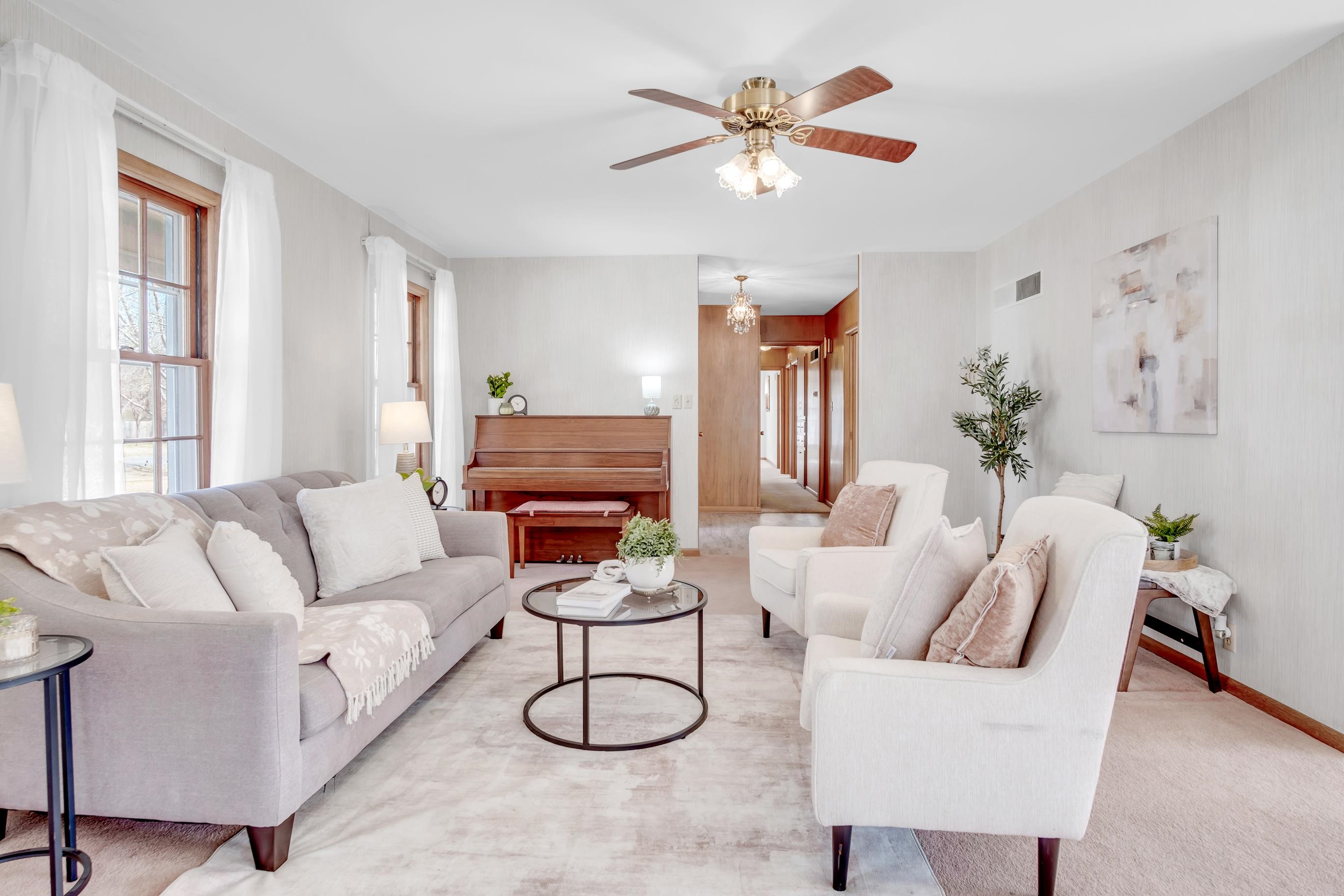This home sits on a beautiful acre lot in the highly sought-after Country Acres neighborhood on iconic Circle Drive. With its covered front porch and inviting curb appeal, the setting alone is something special. Inside, the home offers a wonderful opportunity for someone with vision to update, refresh, and truly make it their own - perfect for buyers looking to add personal style and build equity in an established neighborhood. The home features 3 bedrooms and 2.5 bathrooms, a formal dining room, and a large breakfast area. The updated kitchen includes all appliances, and the main floor laundry adds everyday convenience. The primary suite offers a private bath and direct access to the laundry room. The basement expands the living space with a full kitchen, an additional room with a closet, and extensive built-in storage. Outside, the acre lot includes a sprinkler system with an irrigation well, designated garden space, and a side-load garage. A major bonus is the new seller-owned solar panel system installed in 2025 by King Solar, helping keep the average electric bill around $15 per month.