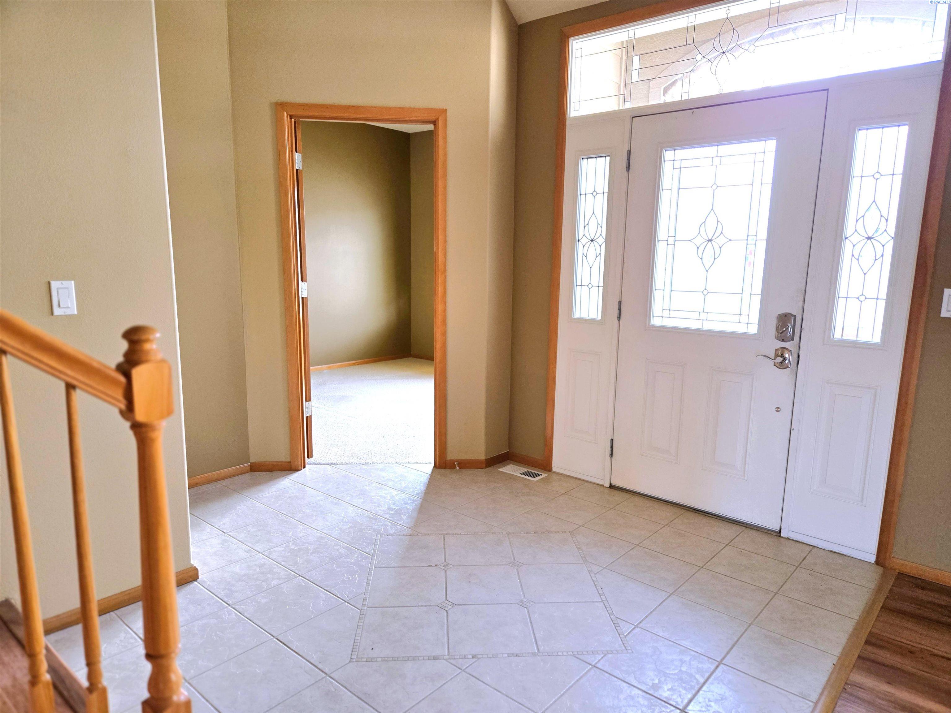 MLS# 291213 Enjoy the ease of main-level living in this beautifully maintained home where all of your everyday essentials are conveniently located on the first floor, including the kitchen, living spaces, laundry, bathroom, and the spacious primary suite. The primary bedroom on the main floor offers a relaxing retreat with a walk-in closet, soaking tub, and a private slider leading to a walk-out deck. Upon entry, you're welcomed by a sweeping curved staircase that adds character and leads to a second-floor sitting area, two additional bedrooms, and a full bathroom, perfect for guests, hobbies, or additional living space. The main level opens to a recently extended covered patio overlooking a serene, fully landscaped backyard with custom curbing, brand new block fencing, and mature landscaping on a large corner lot. A storage shed provides extra space for tools and outdoor equipment. Inside, the home features new luxury vinyl flooring, wood blinds on beautifully wood-wrapped windows throughout, a reverse osmosis water system, and a whole-home sound system withspeakers both inside and outside; perfect for entertaining. Additional updates include new HVAC and fresh exterior paint. The front of thehome showcases beautiful landscaping, excellent curb appeal, and a spacious 3-car garage. This home is a must-see!