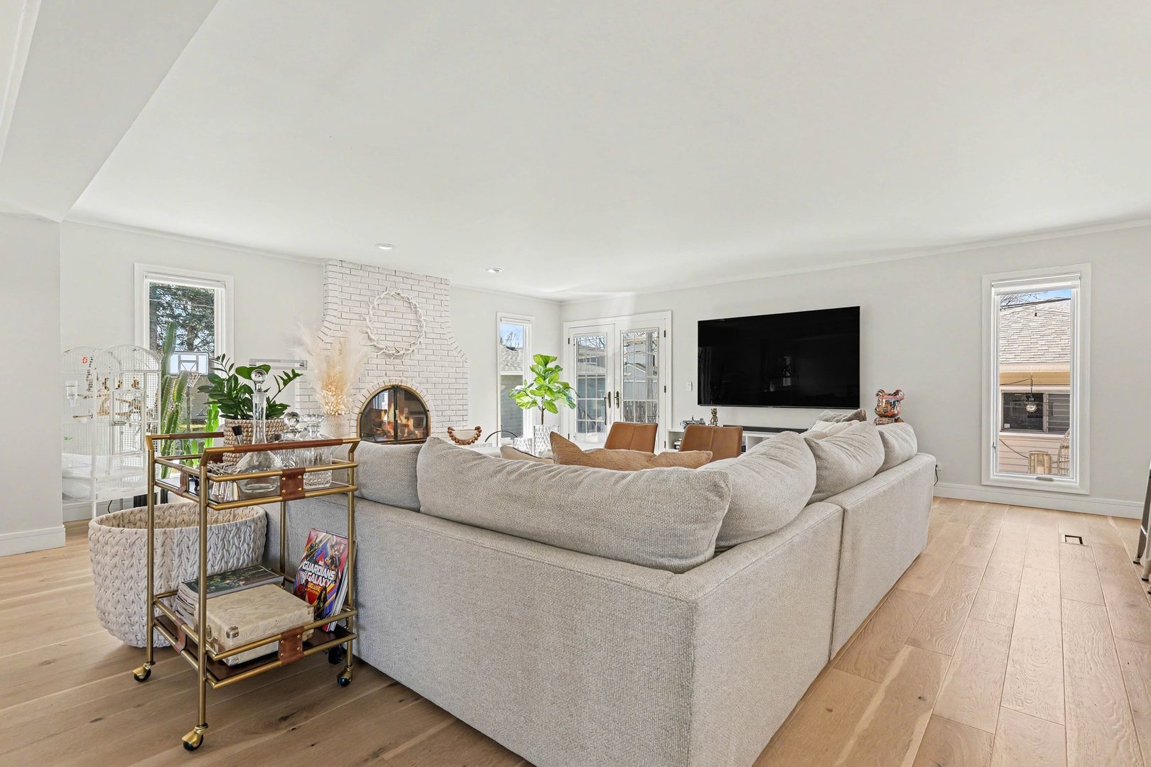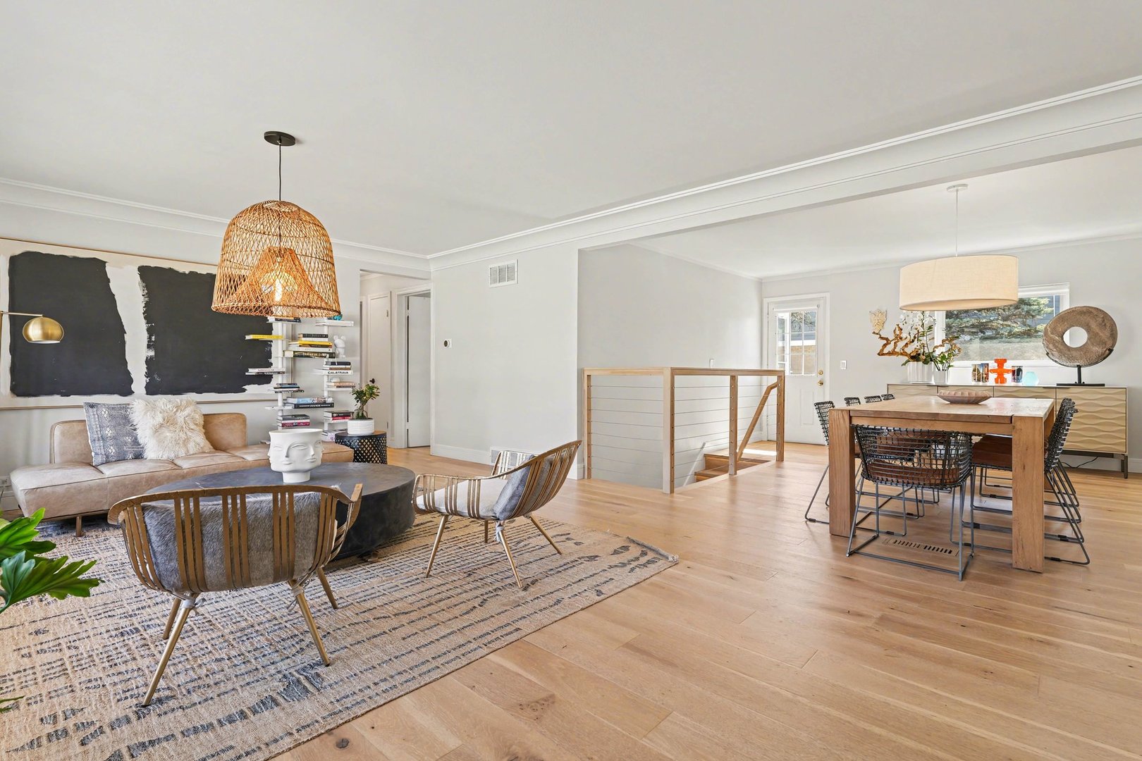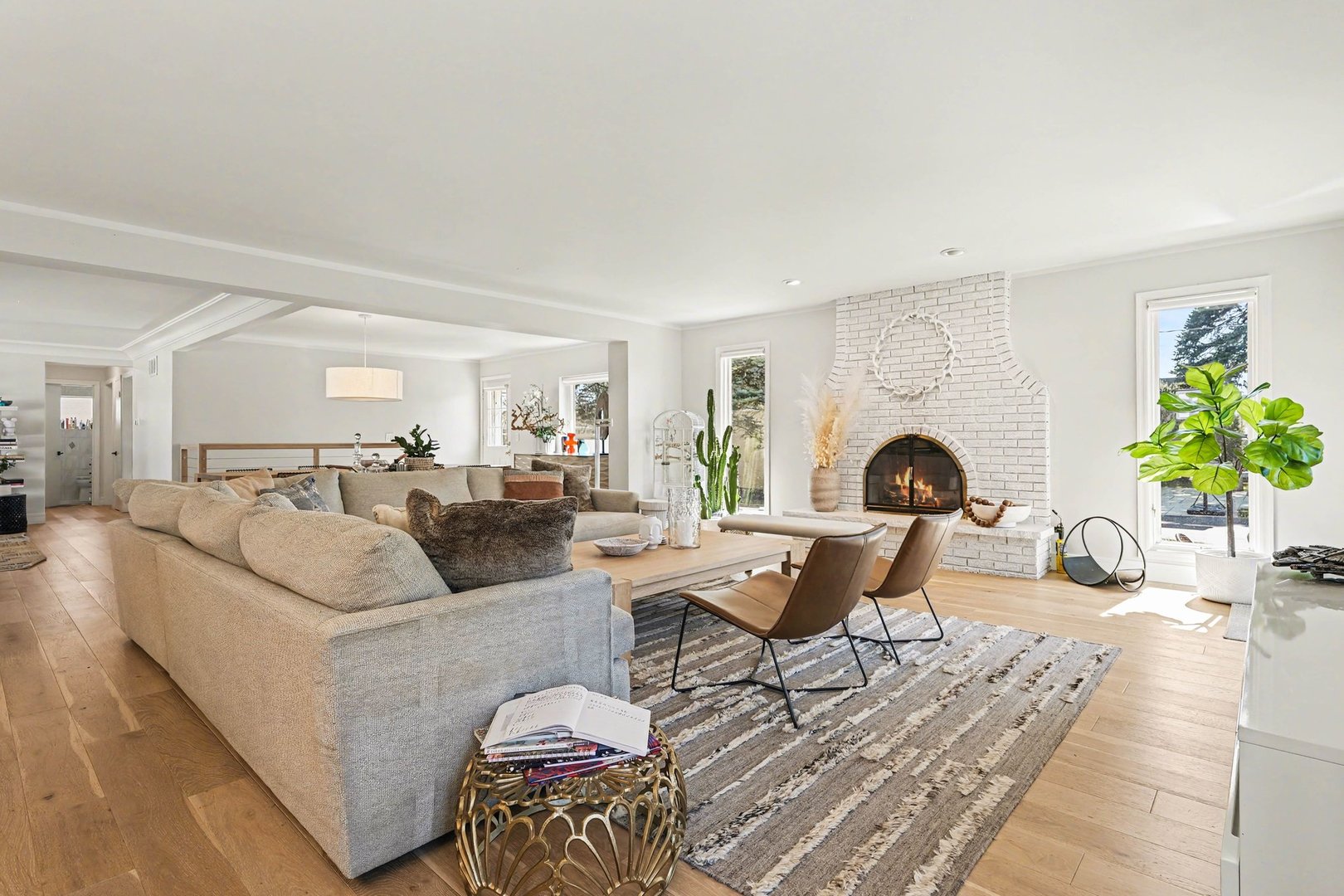 Rarely Found Oversized Ranch in Desirable Arlington Heights! Much larger than expected, this beautifully updated ranch offers an open floorplan and thoughtfully designed spaces perfect for both everyday living and entertaining. From the moment you step inside, you'll notice the home's contemporary style, upgraded trim work, and stunning lighting that carries throughout the home. The spacious main level features multiple inviting gathering areas including a large living room, formal dining room, and a warm family room anchored by a fireplace-creating perfect nooks for hosting or relaxing. The show-stopping kitchen is truly the heart of the home, showcasing modern upgraded cabinetry, sleek quartz countertops, stainless steel appliances, a commercial-grade oven with professional range hood, built-in microwave, beverage refrigerator, and exceptional workspace for cooking and entertaining. A striking open contemporary staircase leads to the fully finished basement, offering incredible additional living space. The lower level features a huge recreation room, generous storage areas, a fourth bedroom with walk-in closet, mudroom/drop zone area, and walkout access. There is also space already framed for a dry bar and the existing half bath offers plenty of room to convert to a full bath. Step outside to enjoy the intimate outdoor setting, ideal for entertaining, situated on an extra-wide lot. Additional highlights include an oversized two-car garage and recent exterior improvements including a newer roof, gutters, and downspouts, along with recently stained brick that gives the home a fresh, modern look. Located within award-winning schools: Olive Elementary, South Middle, and Prospect High School. This home provides an outstanding opportunity for the next owner to personalize the final details and add their own style to an already beautifully updated and spacious home. Low Taxes