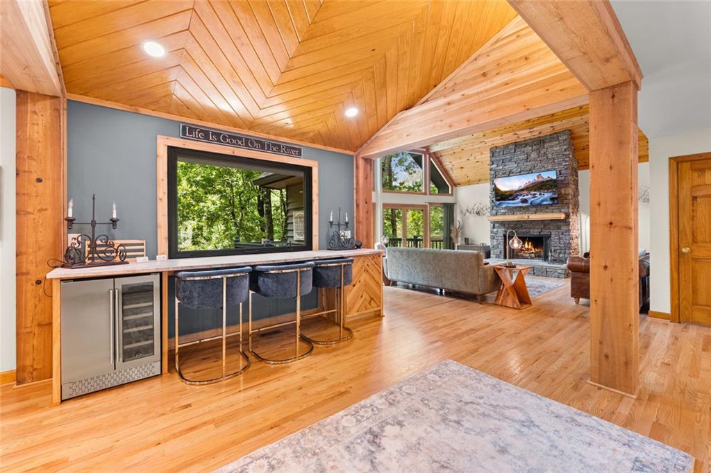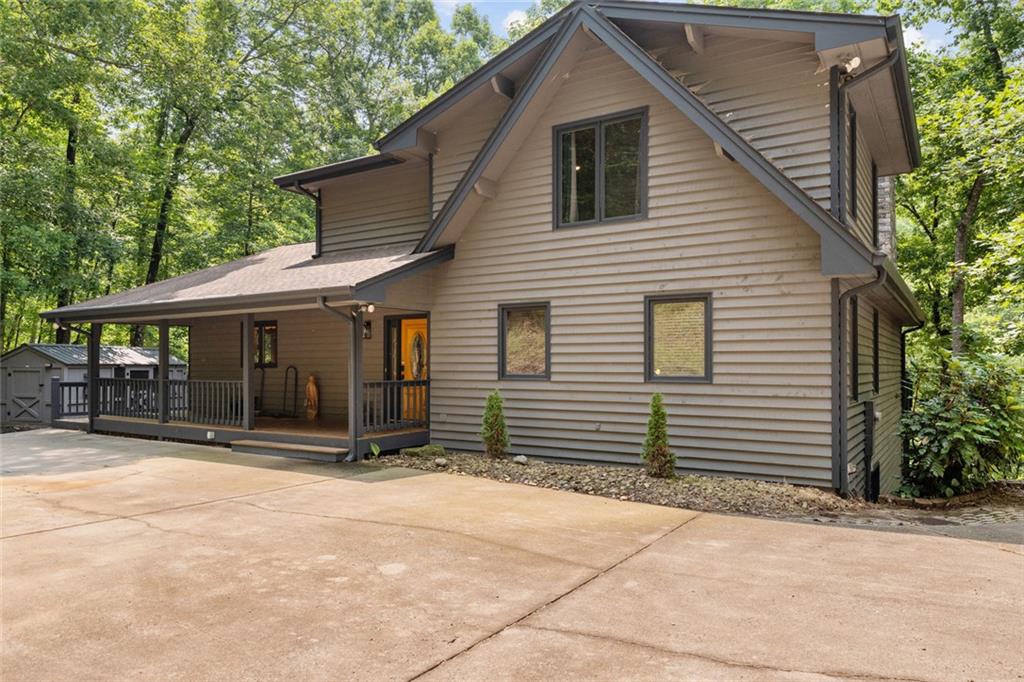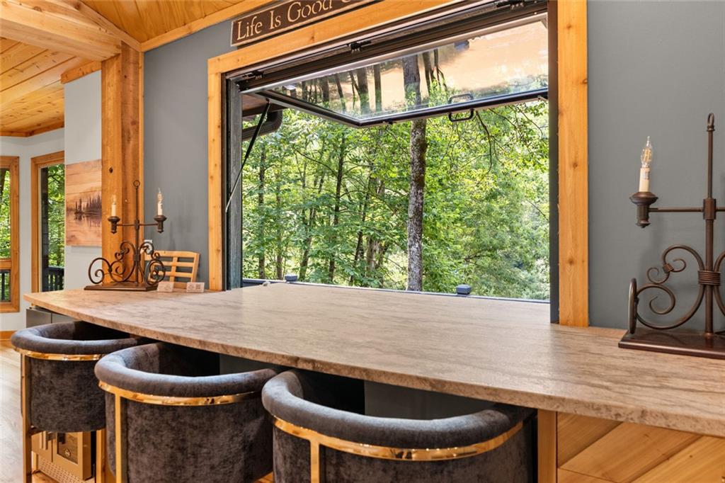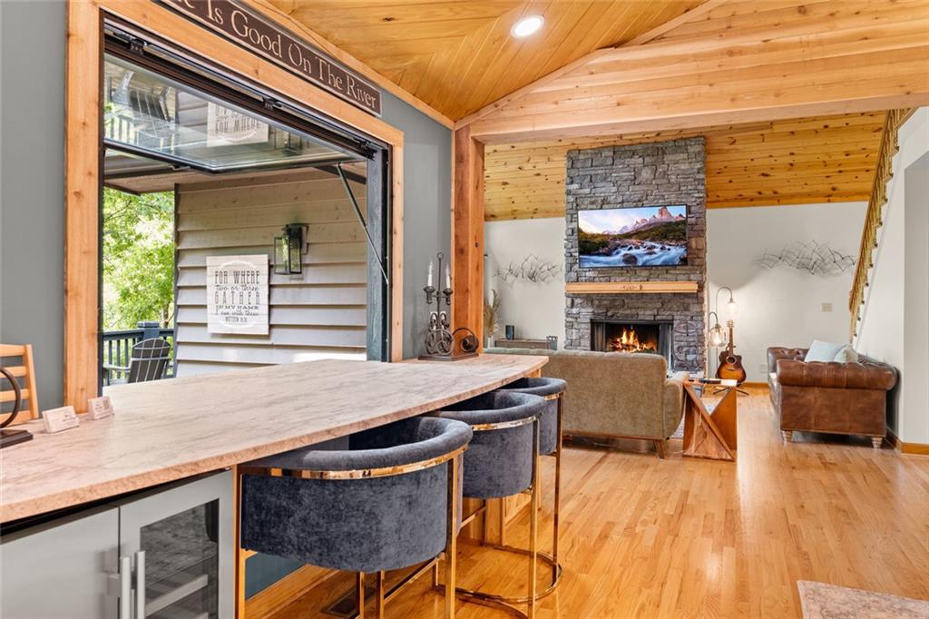 Set on a quiet, private stretch of the Etowah River, 338 Woody Tucker Road, being sold fully furnished, is a rare riverfront retreat in Dawsonville, Lumpkin County with the kind of seclusion you cannot replicate: 2.5 Acres of complete privacy, no thru traffic, and the home is tucked down from the drive for privacy while keeping the water in view. Enjoy gentle walk-down access to 204 ft of Etowah River frontage with flat-water frontage at the river's edge, ideal for fishing, floating, and effortless time on the water. Owners have transformed the main level into an open, flowing layout designed for gathering, anchored by hardwoods, a wood-burning fireplace, and an updated kitchen with stone countertops, island seating, and pantry. Retractable windows bring the outdoors in and connect the living space to the river-facing decks and porches. A main-level bedroom and full bath add flexibility, while upstairs the vaulted primary suite lives like its own retreat and has been beautifully refreshed, including the bathroom. The terrace level has been completely overhauled to feel like its own sanctuary, featuring two additional bedrooms, a full bath, a game room, wet bar, and space to unwind after a day on the water. Outdoor living is the headline: multiple decks and covered porches on three levels face the river, and the hot tub on the lower deck is positioned for river views. Step down to the shoreline fire pit for evenings by the water. A flex outbuilding offers space for gear, projects, or a creative reimagining, and the chicken coop adds a touch of country charm Conveniently positioned between Dawsonville and downtown Dahlonega, which is less then 10 miles away, with North Georgia vineyards and premier golf within an easy drive, this is a true furnished riverfront escape with unmatched privacy. A must-see in person and a rare opportunity you will not want to miss!