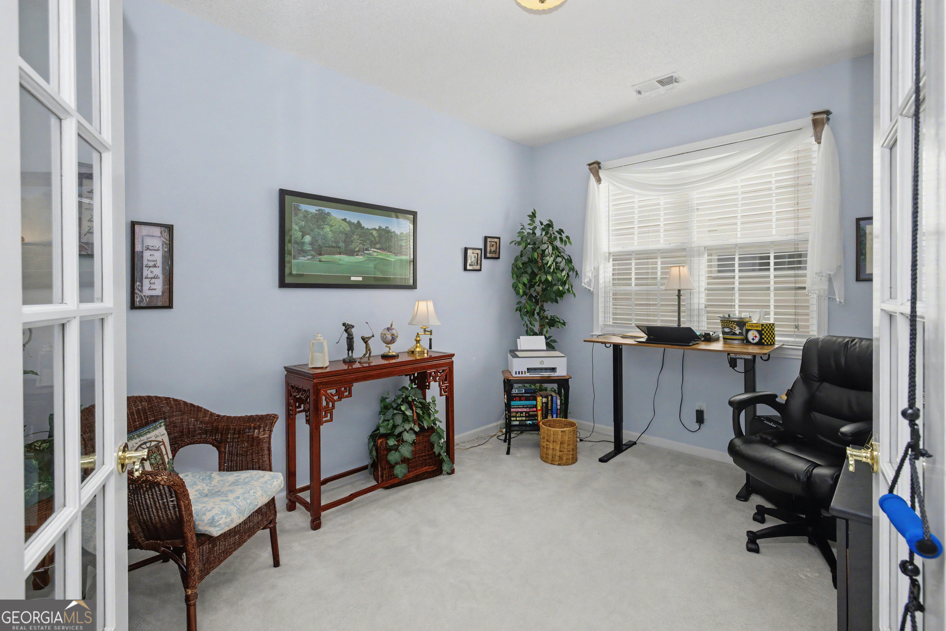 Welcome to your dream home in the sought-after Loras Place subdivision of Newnan! Step through the covered front entryway into an inviting foyer featuring hardwood floors and elegant crown molding. To the left, a spacious bedroom with a ceiling fan sits adjacent to a full bathroom with tile flooring and a shower/tub combination-perfect for guests or family. Continue down the hall to double doors that open into a versatile office, bonus room, or additional living space, offering endless possibilities. The family room is warm and welcoming with crown molding, recessed lighting, and a cozy fireplace with gas logs, while the formal dining room exudes sophistication and charm. The open kitchen is a delight, featuring Corian countertops, abundant cabinetry, a stylish tile backsplash, breakfast bar, built-in microwave, pantry, and a bright breakfast area with built-in bookshelves and a window seat overlooking the beautifully landscaped backyard. Enjoy morning coffee or evening relaxation in the sun-drenched sunroom with tile flooring, ceiling fan, and serene views. Step outside to the covered patio, perfect for entertaining or unwinding. The primary suite is your private retreat, complete with a sitting area, crown molding, ceiling fan, and a luxurious primary bathroom boasting a cultured marble vanity, tile flooring, walk-in shower, and walk-in closet. Loras Place is a welcoming community with sidewalks, streetlights, and the convenience of HOA-covered grounds maintenance, offering both beauty and peace of mind. This home isn't just a place to live-it's a lifestyle. Schedule your visit today and experience all the charm and comfort this exceptional property has to offer!