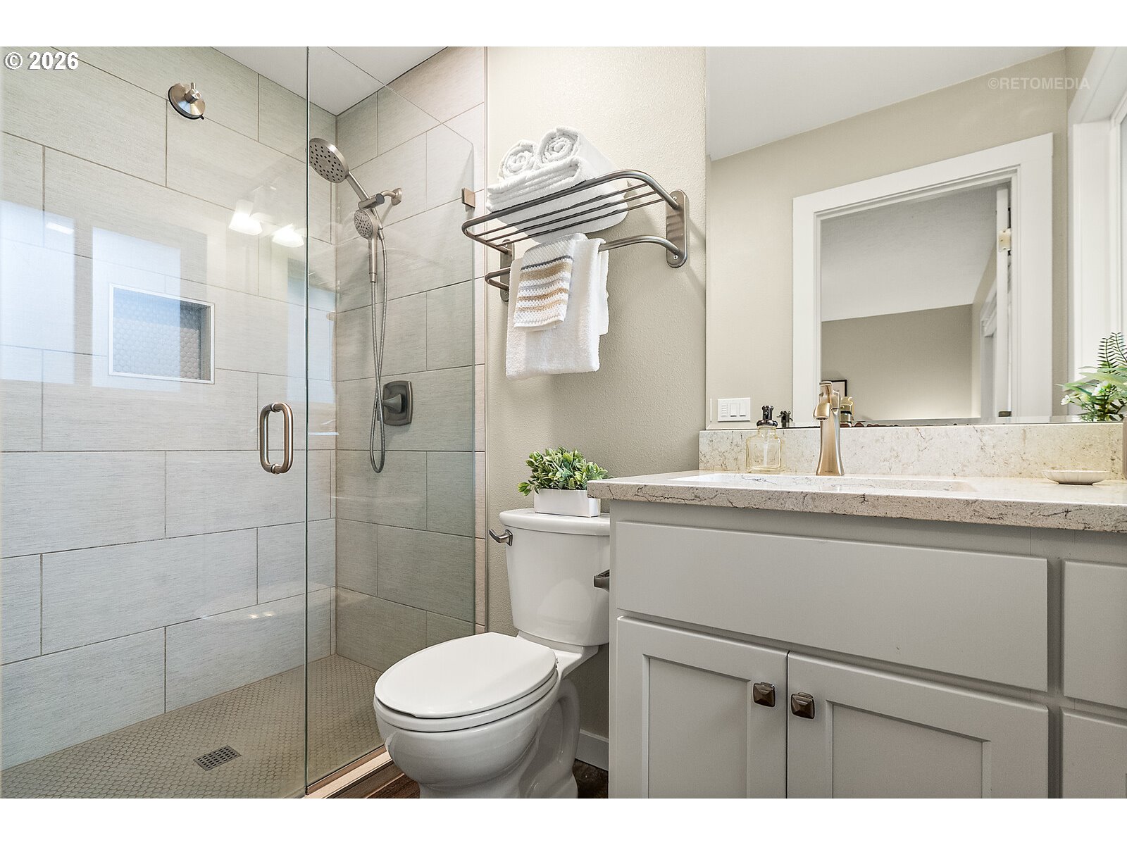 The home that changes everything for Sherwood buyers. Completely reimagined inside and out, this beautifully updated home blends warm modern design with effortless everyday livability in one of the area's most connected locations. Thoughtfully remodeled in 2019, nearly every surface and major system has been refreshed, creating a truly move-in ready opportunity that feels both stylish and comfortable. The light-filled main level features an inviting great room layout centered around a stunning kitchen with quartz slab countertops, a generous island with eat-bar seating, soft-close custom cabinetry, and stainless steel appliances. Just beyond, the dining area and living room create an open and welcoming space highlighted by a floor-to-ceiling statement fireplace. Outside, the elevated deck is perfect for morning coffee, sunset relaxation, or easy outdoor entertaining. The main level also includes a spacious primary suite with an updated bathroom featuring a tile-wrapped walk-in shower and quartz vanity, along with two additional bedrooms and a full hall bathroom. Downstairs, the daylight lower level adds incredible flexibility with a large bonus living space, a walk-in closet, and a bathroom with a tile shower, quartz vanity, and a convenient laundry area. This versatile space works beautifully as a family room, guest suite, home office, or potential fourth bedroom. Outside, the fully fenced backyard offers room to play, garden, or entertain with a composite deck, patio, and generous yard space. Additional highlights include an oversized two-car garage, central air conditioning, a side gravel pad and extensive updates since 2018, including the roof, HVAC, siding, doors, trim, all interior surfaces, finishes and more! Located in Sherwood, just around the corner from Stella Olson Park, trails and Old Town Sherwood! Enjoy all of Sherwood's best with easy access to HWY 99, top-rated schools, shopping, restaurants and more!