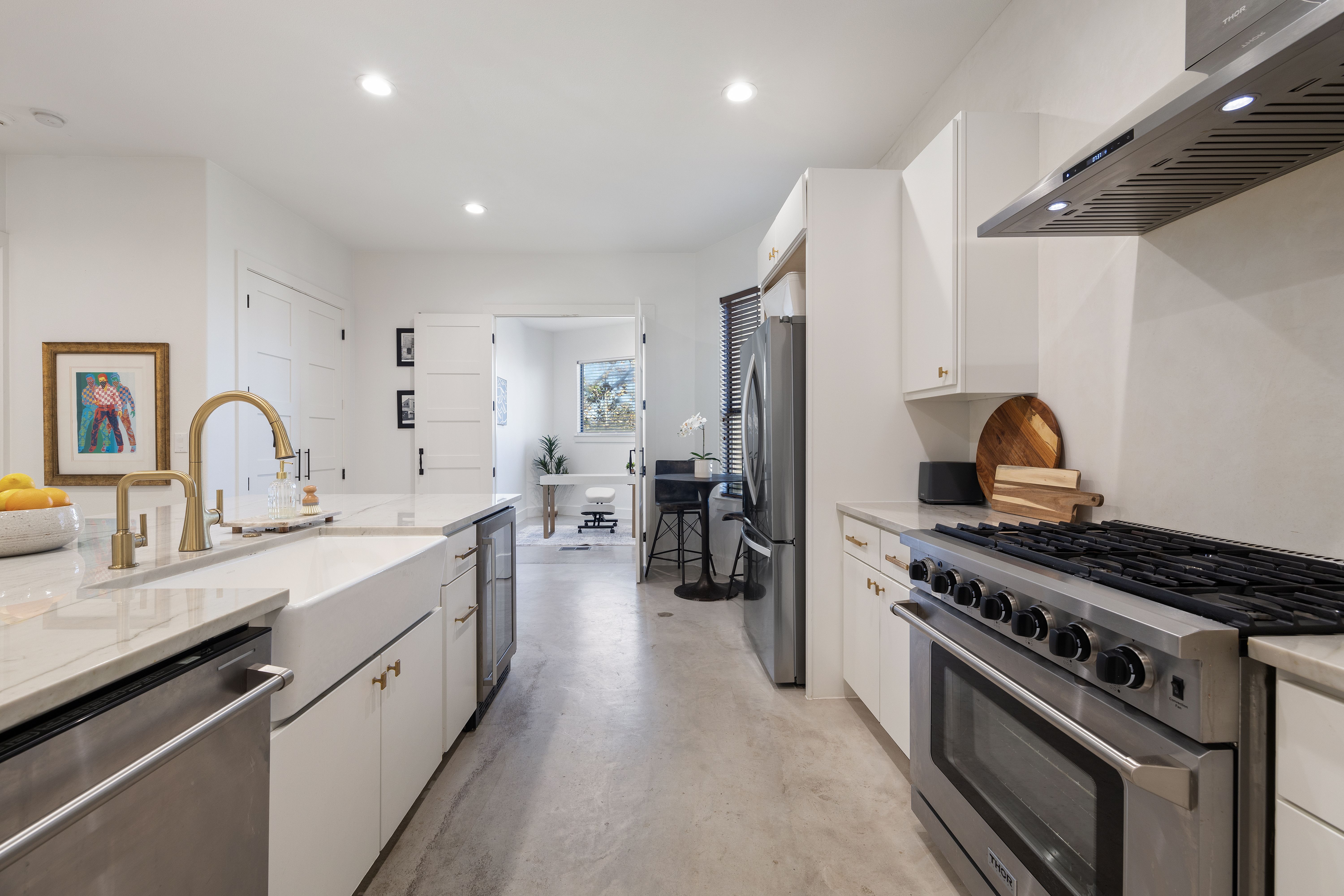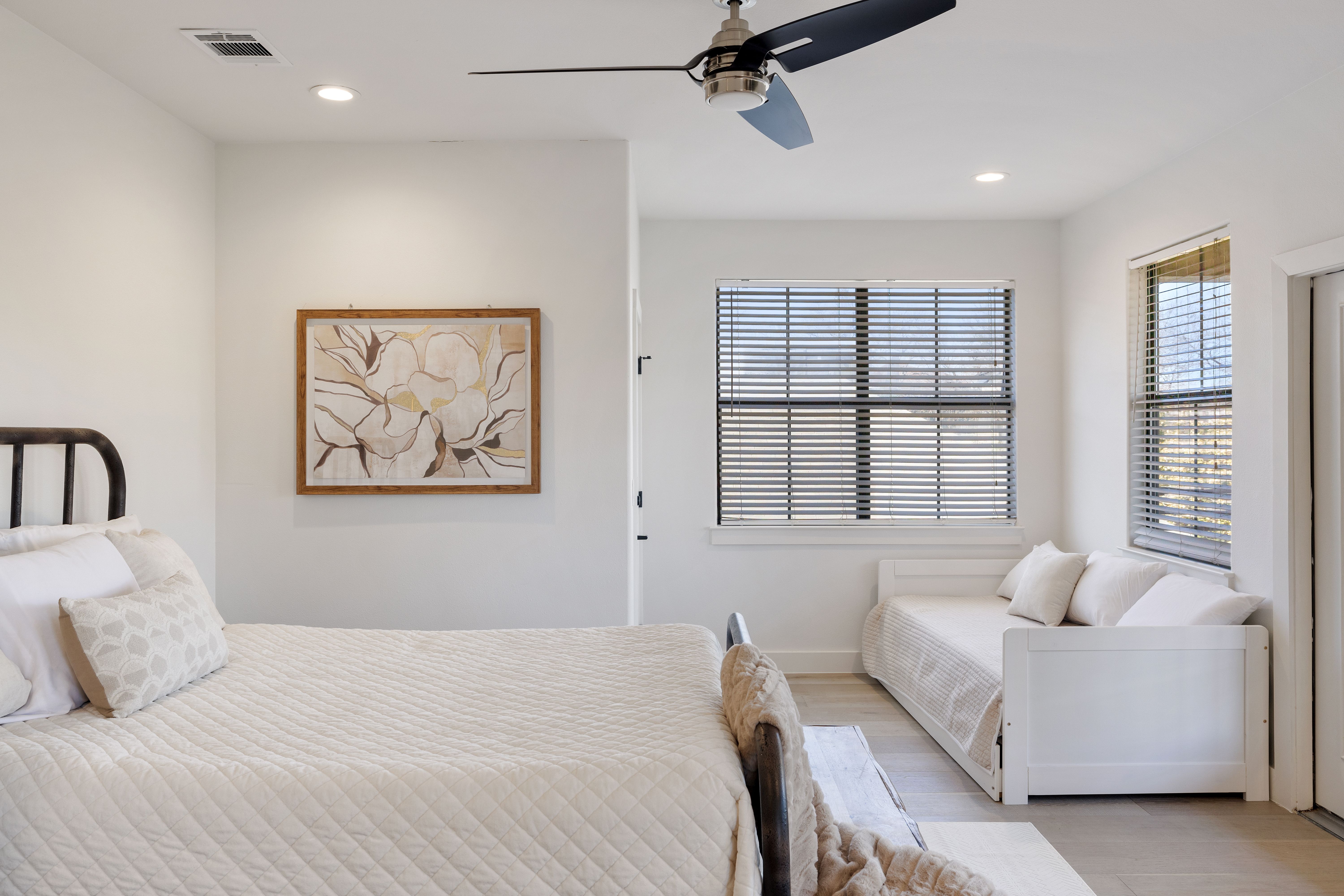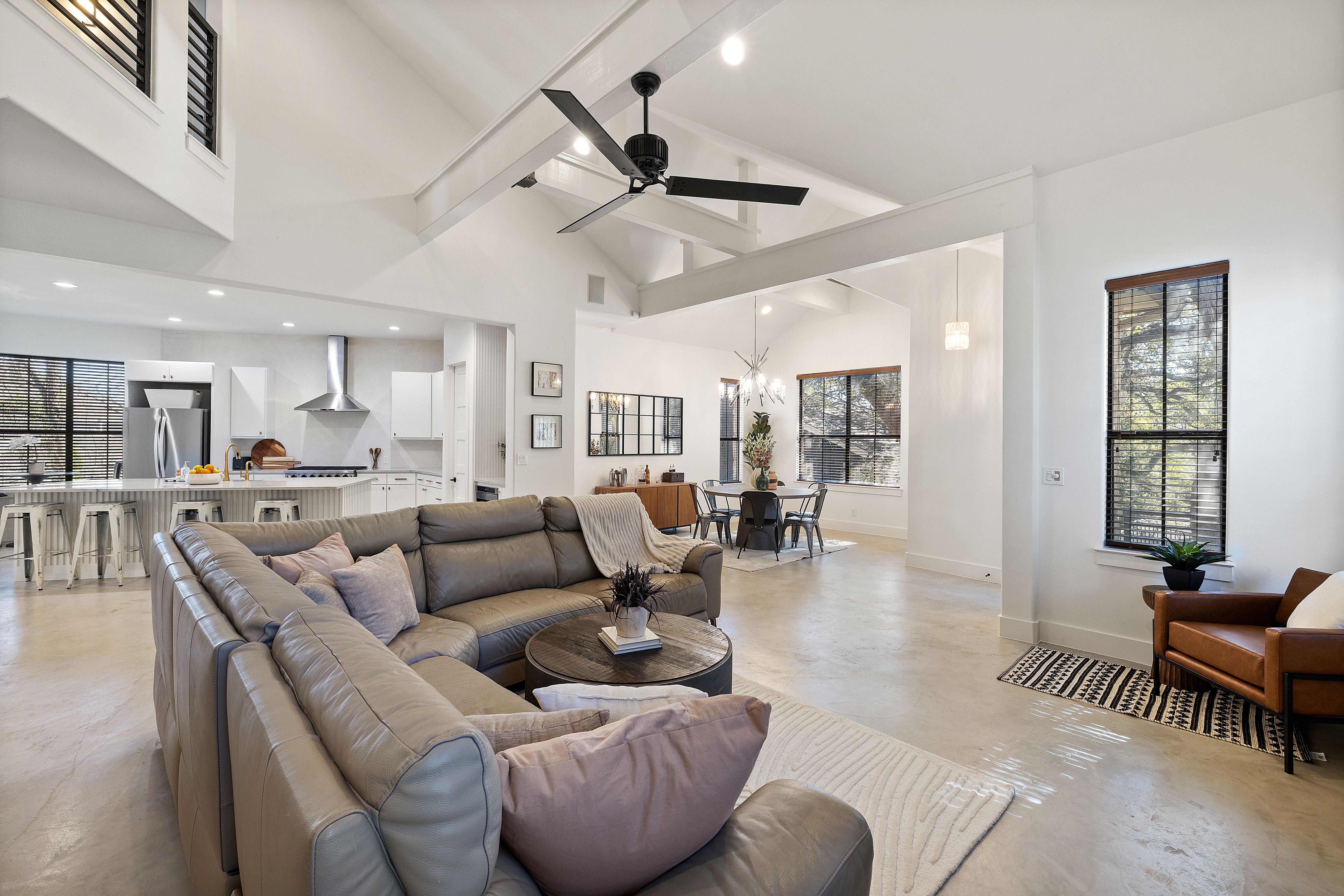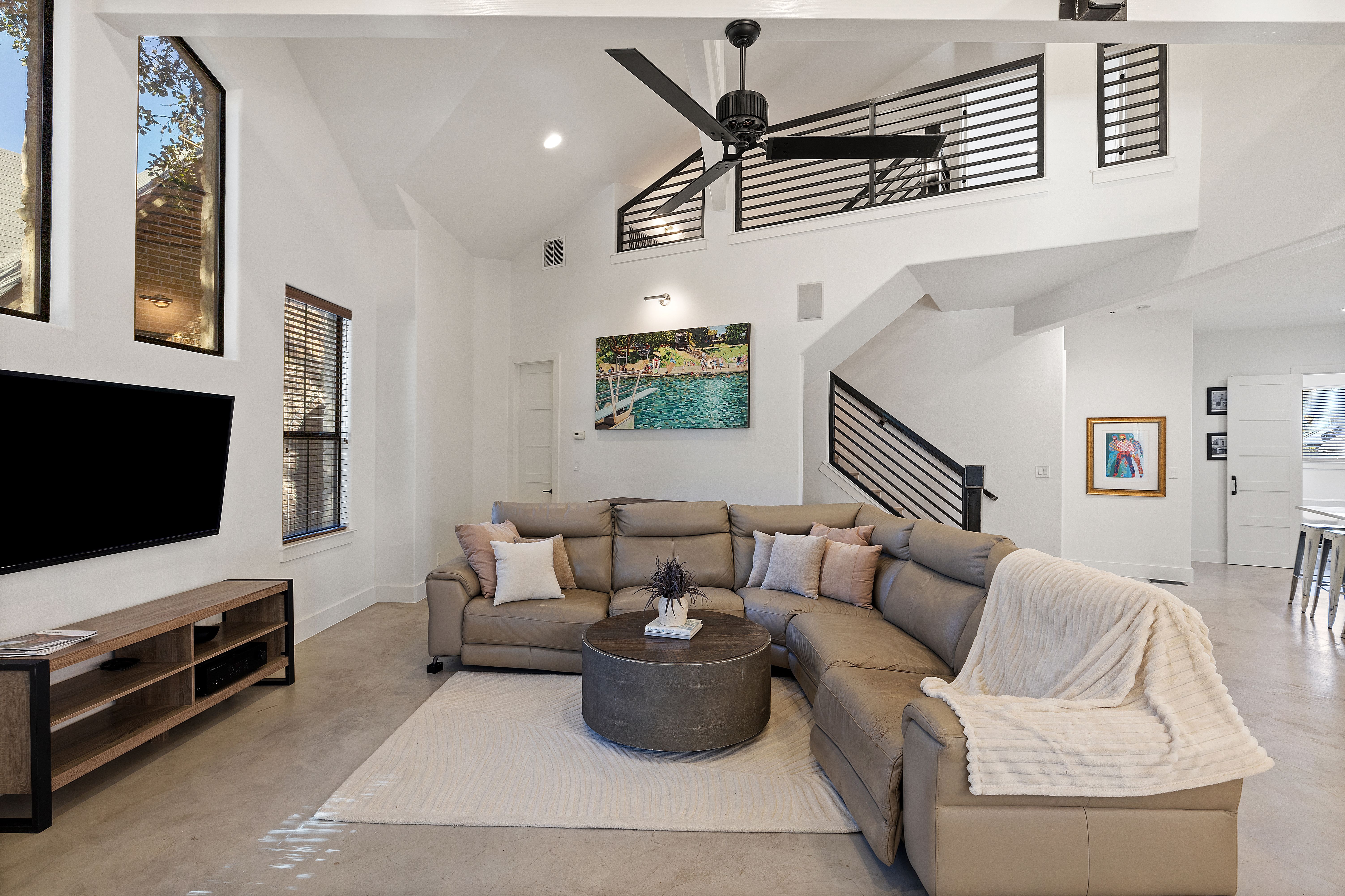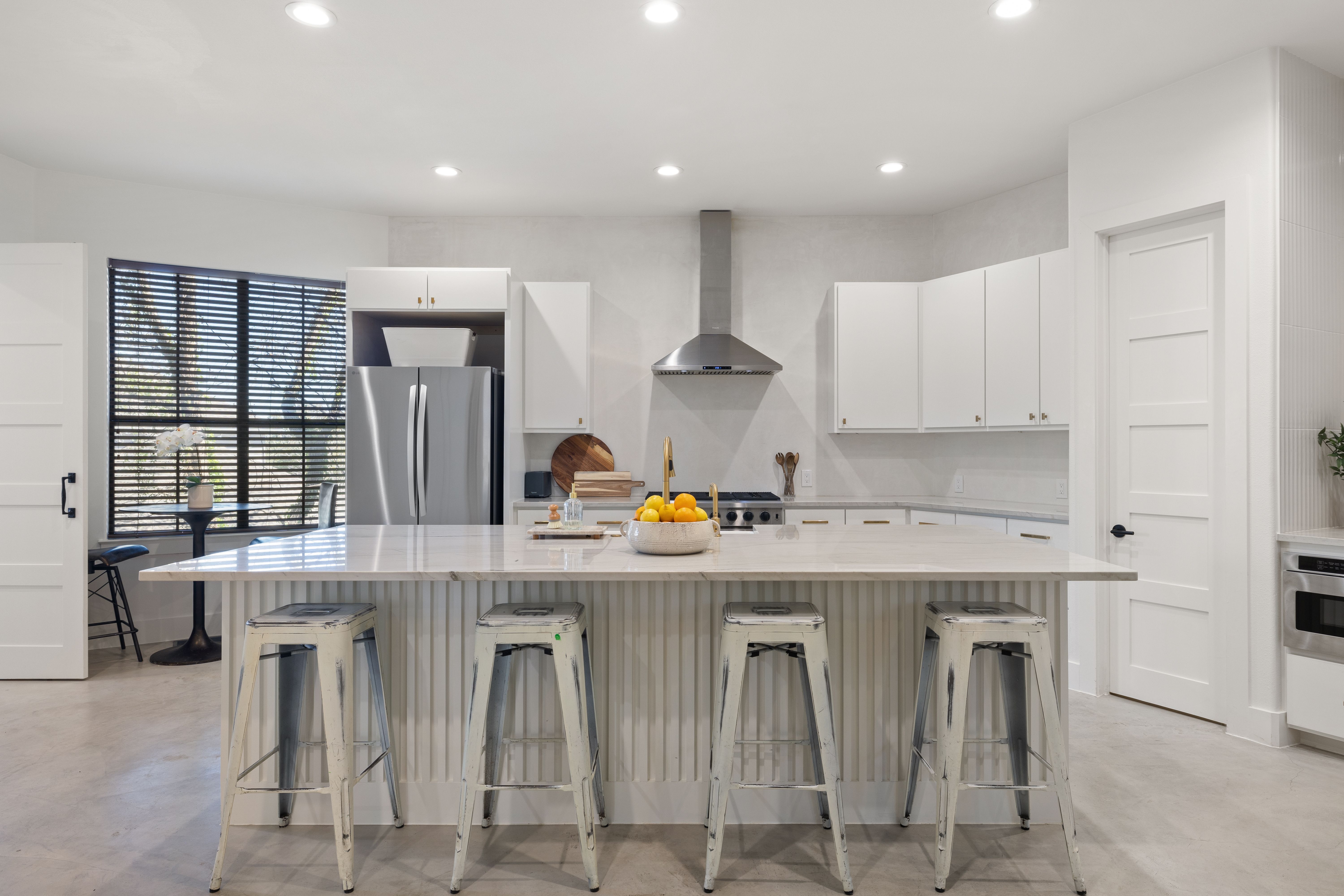 Located on a quiet street in the highly sought-after north end of Travis Heights, this beautifully remodeled home offers an exceptional blend of modern design, privacy, and walkable urban living. Just one block from Lady Bird Lake and the Hike & Bike Trail, and a short stroll to Stacy Park, the property places some of Austin’s most beloved outdoor spaces right outside your door—while remaining only minutes from Downtown and South Congress.Originally built in 2004 and recently remodeled, the home features 3,344 square feet with four bedrooms, three full baths, a powder room, and a dedicated office. Natural light fills the open-concept living spaces, highlighting elegant finishes and thoughtful design throughout.The newly remodeled kitchen serves as the heart of the home, featuring Quartzite countertops, a large center island, Thor appliances, custom cabinetry, and a beautifully designed butler’s pantry offering additional prep space and storage. Oak Perlino wood floors add warmth and sophistication across the main living areas.The spacious primary suite provides a true retreat, complete with a private balcony offering views of Downtown Austin and a spa-inspired bath with a freestanding soaking tub, walk-in shower, and refined finishes.Set behind a fully gated entry, the landscaped yard offers privacy and space for pets, while the rare two-car garage provides both convenience and security.With its premium finishes, thoughtful layout, and unbeatable Travis Heights location just steps from the lake, this home captures the essence of Austin living.