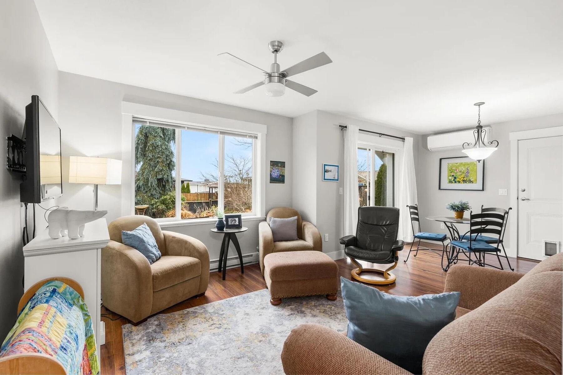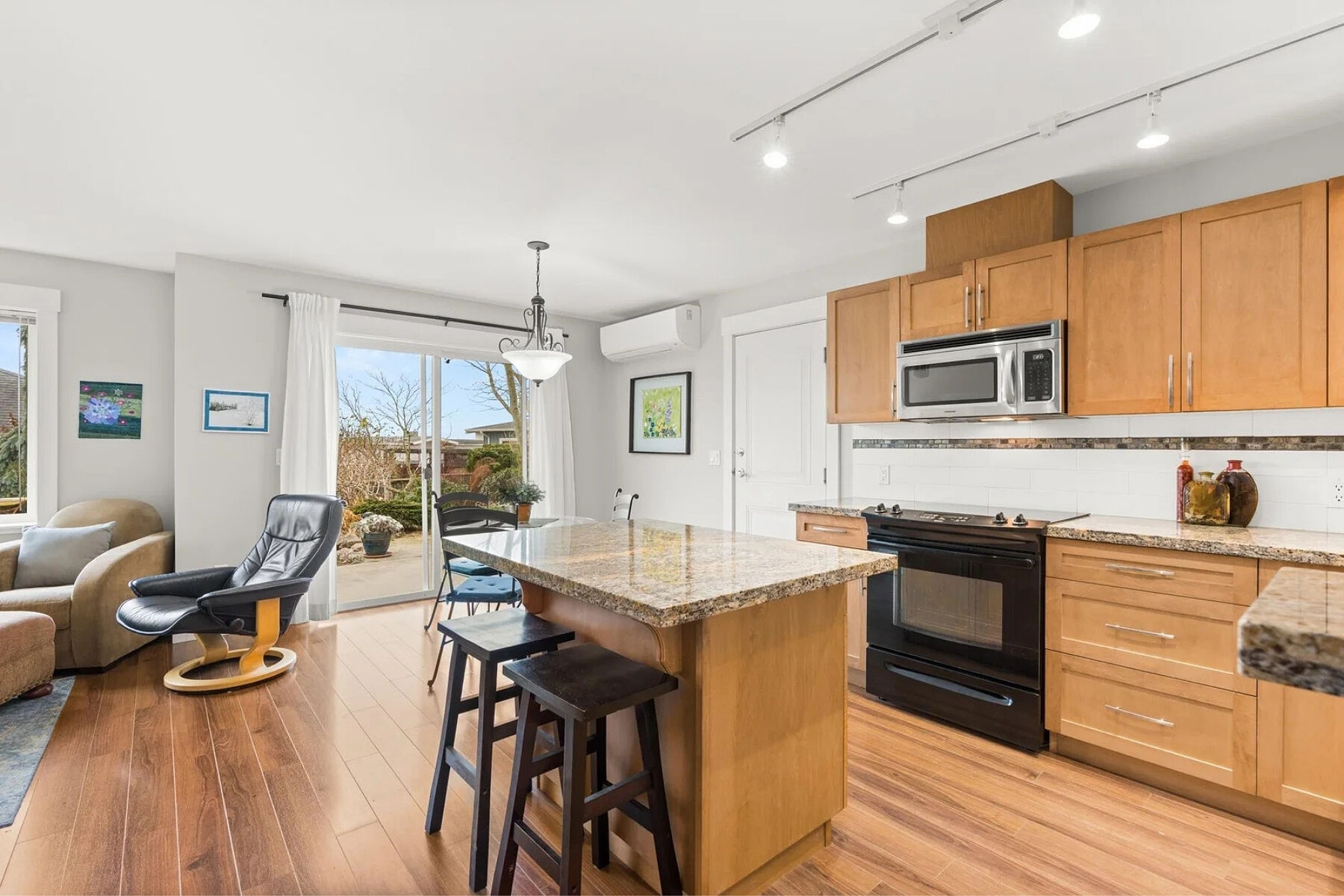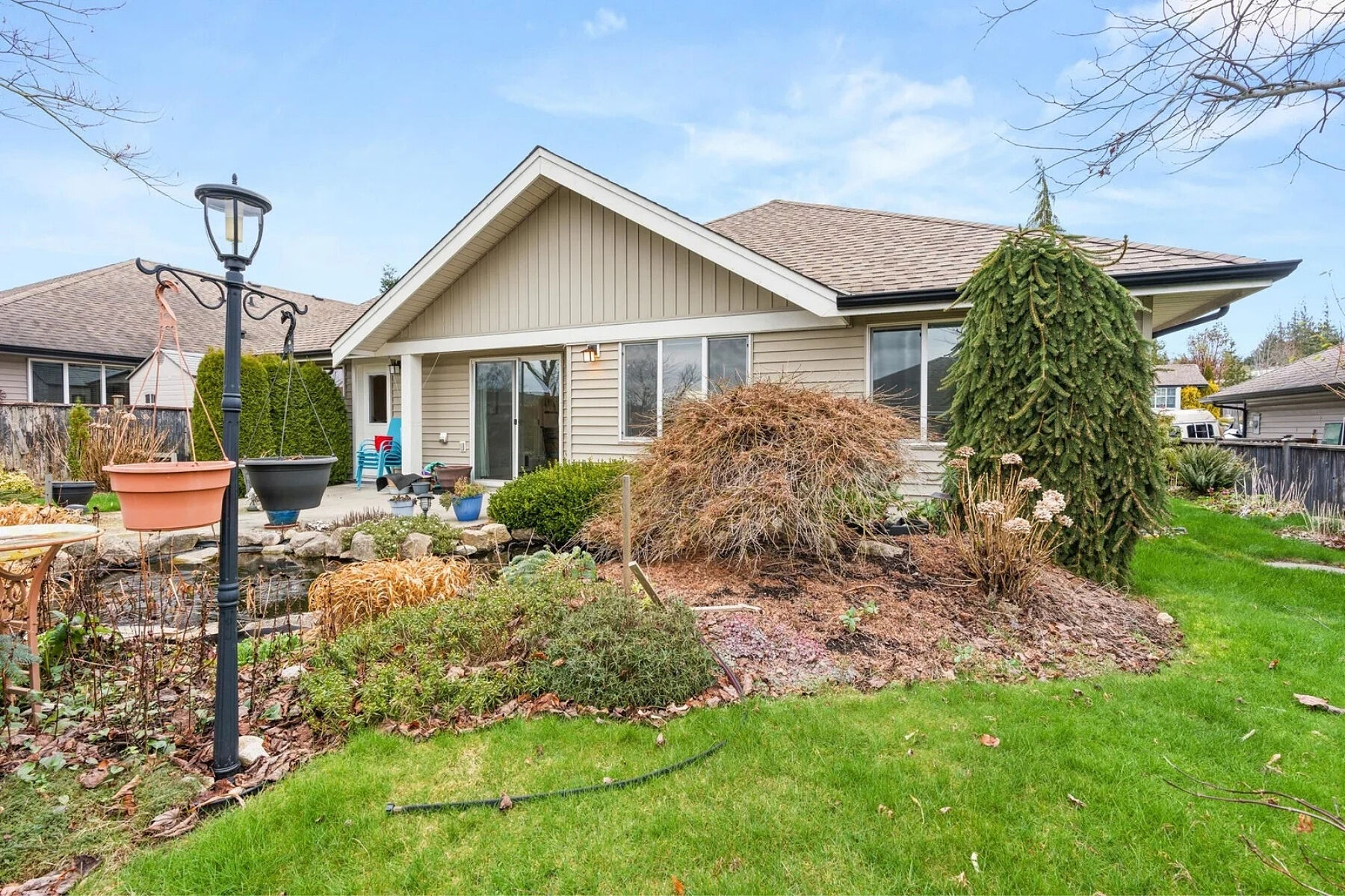 Charming curb appeal and warm, welcoming interiors define this three bed, two and a half bath rancher in Tyler Heights. Built in 2009, the home offers bright, stair-free living with beautiful wood floors and an open layout that flows from the living room to the kitchen and straight out to the patio. Large windows and thoughtful sightlines allow you to enjoy views of the private backyard from the main living areas. The spacious primary bedroom features a walk-in closet and ensuite with walk-in shower. Two additional well-sized bedrooms provide flexibility for family, guests, or a home office, plus excellent storage throughout. Fully fenced, south-facing landscaped backyard, ideal for pets, children, or summer gatherings Tandem garage with flexible workshop space (easily converted back). Heat pump and A/C.