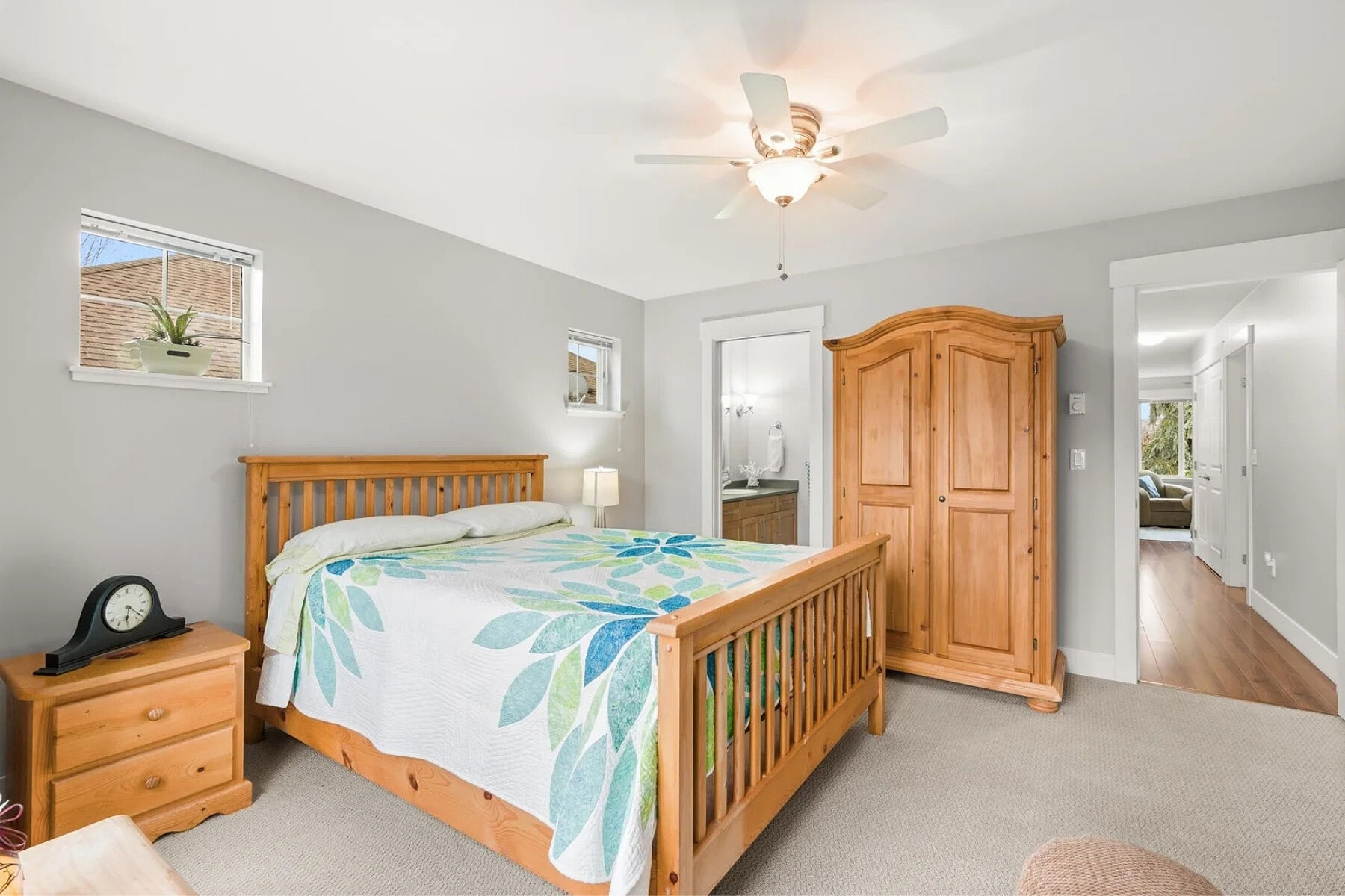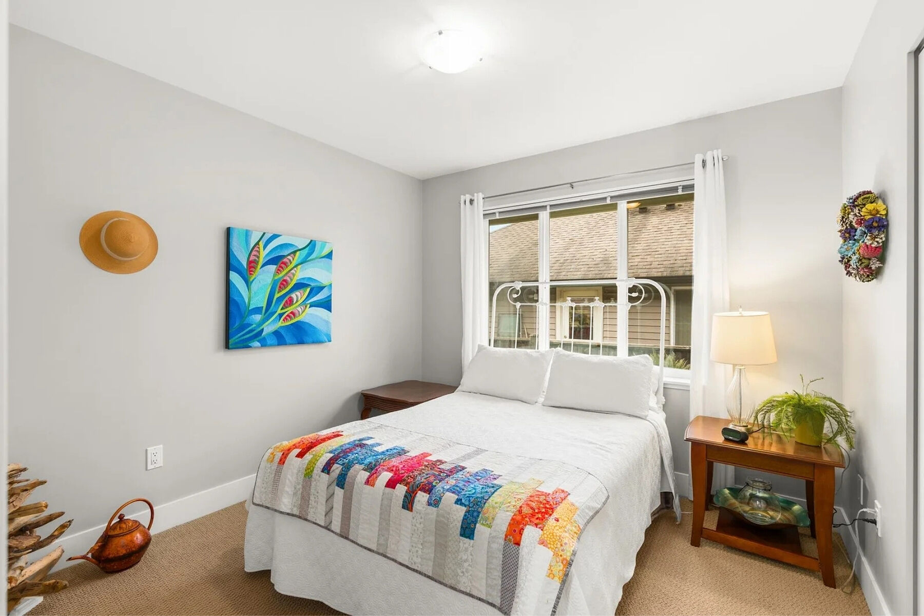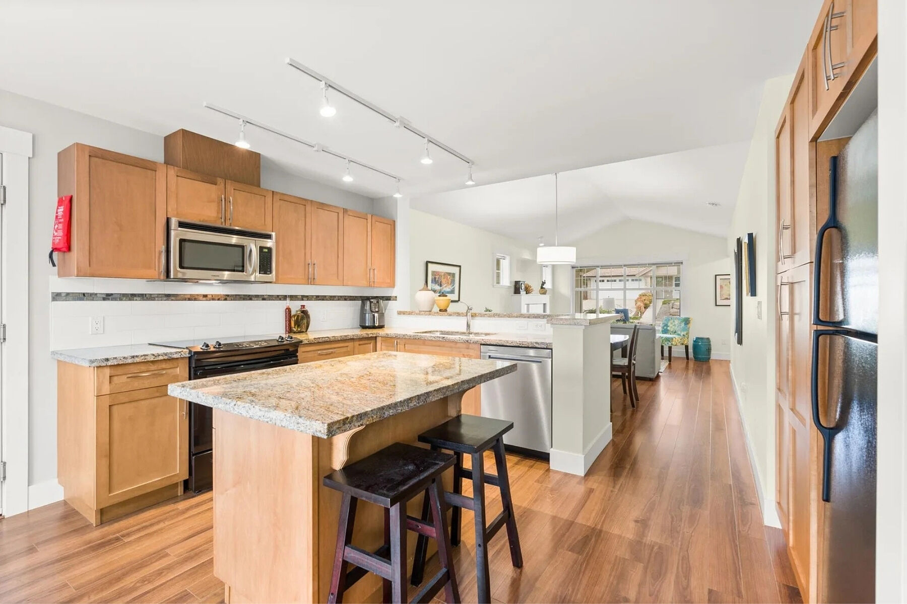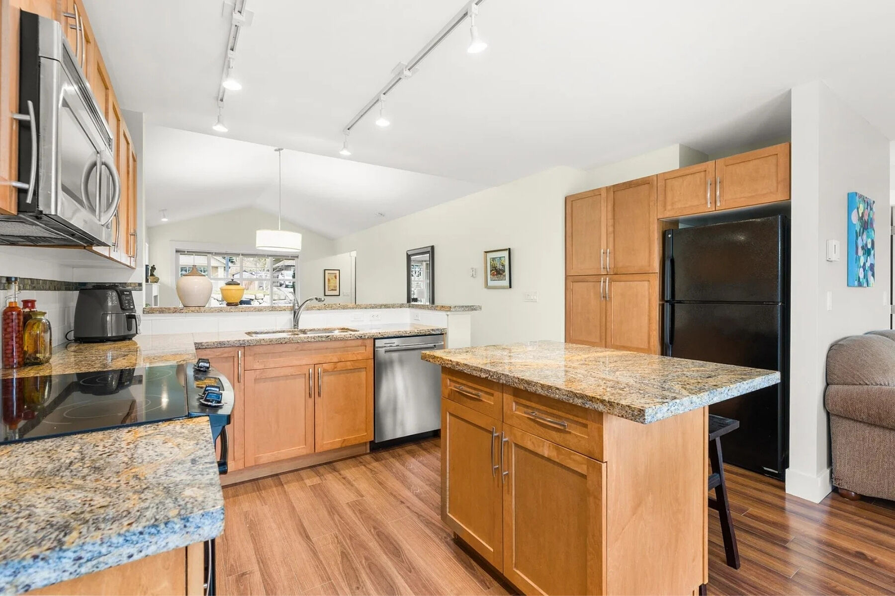 Charming curb appeal and warm, welcoming interiors define this three bed, two and a half bath rancher in Tyler Heights. Built in 2009, the home offers bright, stair-free living with beautiful wood floors and an open layout that flows from the living room to the kitchen and straight out to the patio. Large windows and thoughtful sightlines allow you to enjoy views of the private backyard from the main living areas. The spacious primary bedroom features a walk-in closet and ensuite with walk-in shower. Two additional well-sized bedrooms provide flexibility for family, guests, or a home office, plus excellent storage throughout. Fully fenced, south-facing landscaped backyard, ideal for pets, children, or summer gatherings Tandem garage with flexible workshop space (easily converted back). Heat pump and A/C.