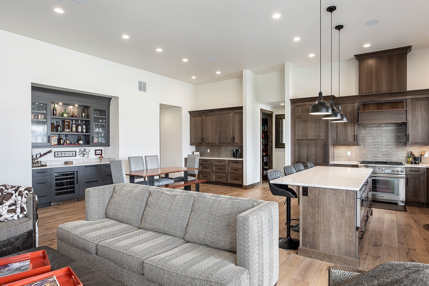 Overlooking the meadow in High Star Ranch, this lightly lived-in 2022 build blends effortless living with refined mountain-modern design. Spanning 2,639 square feet, the 3-bedroom, 3.5-bath layout features two primary suites and lives large with an open-concept main level anchored by a gas fireplace, a custom dry bar with built-in cabinetry, and a tailored walk-in pantry that keeps everything beautifully organized. The kitchen is thoughtfully appointed with a suite of Thermador appliances, including a built-in refrigerator, wine fridge, and warming drawer, paired with an instant hot/cold water purifier faucet, extended storage and a custom dining built-in that adds both function and thoughtful detail.