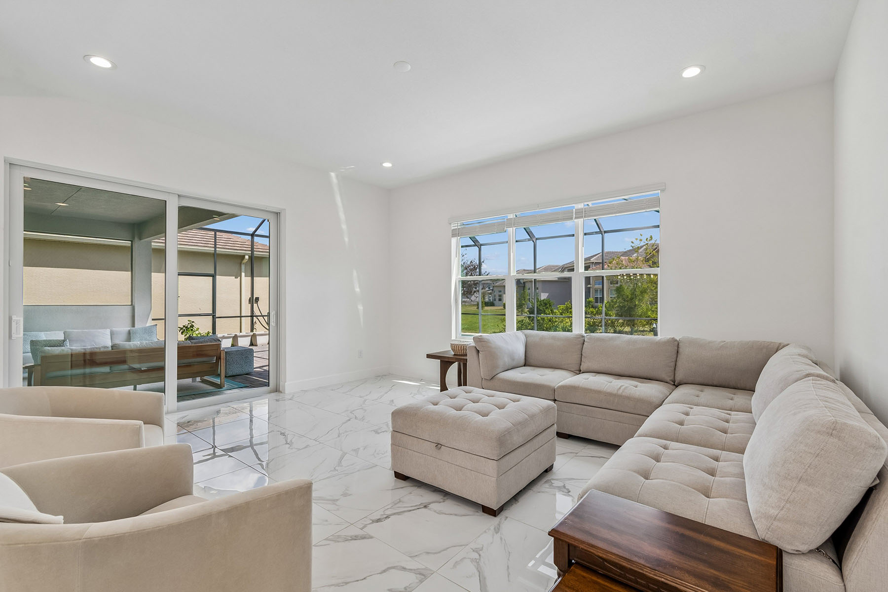 Why wait to build≠ Move right into this gorgeous 3-year-old home that shows like new in the gated community of Winding Ridge (no CDD). Beautifully maintained, this home offers modern design, quality construction and stylish finishes throughout. Go inside and the stunning floors lead you to an open and inviting floor plan designed for everyday living and entertaining. The spacious living and dining areas flow seamlessly into the well-appointed chef's kitchen featuring contemporary cabinetry, sleek countertops, stainless steel appliances, a built-in oven/microwave, gas cooktop, generous walk-in pantry and a large island ideal for gatherings. Don't miss the extra game room adding to your entertaining space! A powder room and fifth bedroom with en-suite bath completes the first level. Plenty of closet storage. Upstairs, the owner's suite provides a private retreat with a generous bedroom, two large walk-in closets, and a beautifully designed en-suite bath. Additional three bedrooms provide flexibility for family, guests or a home office. Enjoy Florida living with a covered outdoor space and a backyard ideal for relaxing or entertaining with plenty of seating area and a heated, saltwater pool. Built just three years ago, this home offers the benefits of newer construction, including modern energy efficiency, updated systems, and low-maintenance living. Residents enjoy convenient access to shopping, dining, top-rated schools, medical facilities and major roadways. Wesley Chapel continues to be one of Tampa Bay area's fastest growing and sought-after locations. Move-in ready and better than new so schedule your private showing today. This home has over $130,000 in upgrades (not including the pool area). Additional lighting, fan pre-wires, surround sound pre-wires, stub-ins for outdoor kitchen and generator, security system pre-wires, water softener, gutters, 300-amp service, central vac, extra insulation and more. Ask for the complete list. Furnishings available by separate bill of sale.