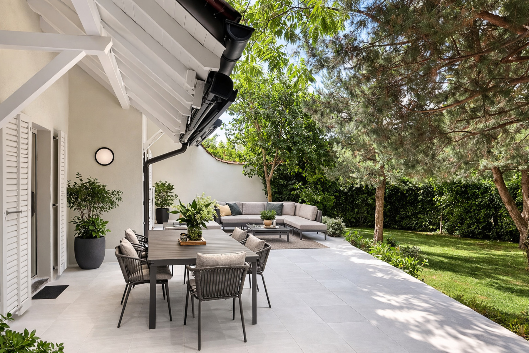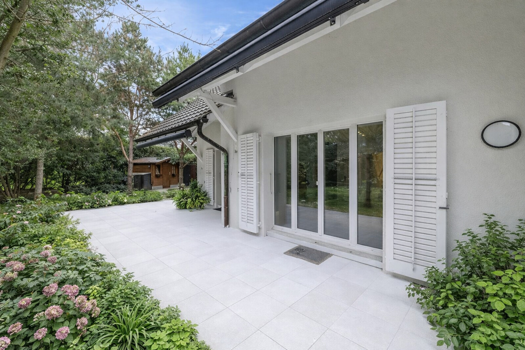 Two large terraces harmoniously extend the living areas towards the wooded, fenced garden, a veritable showcase of tranquility.