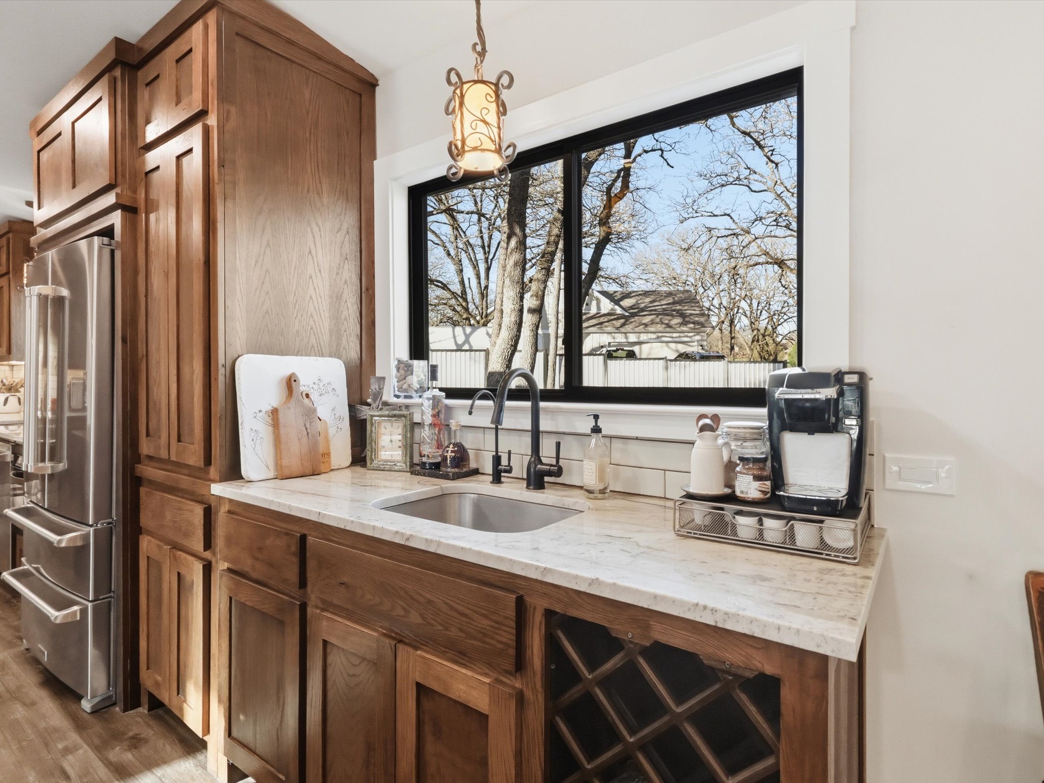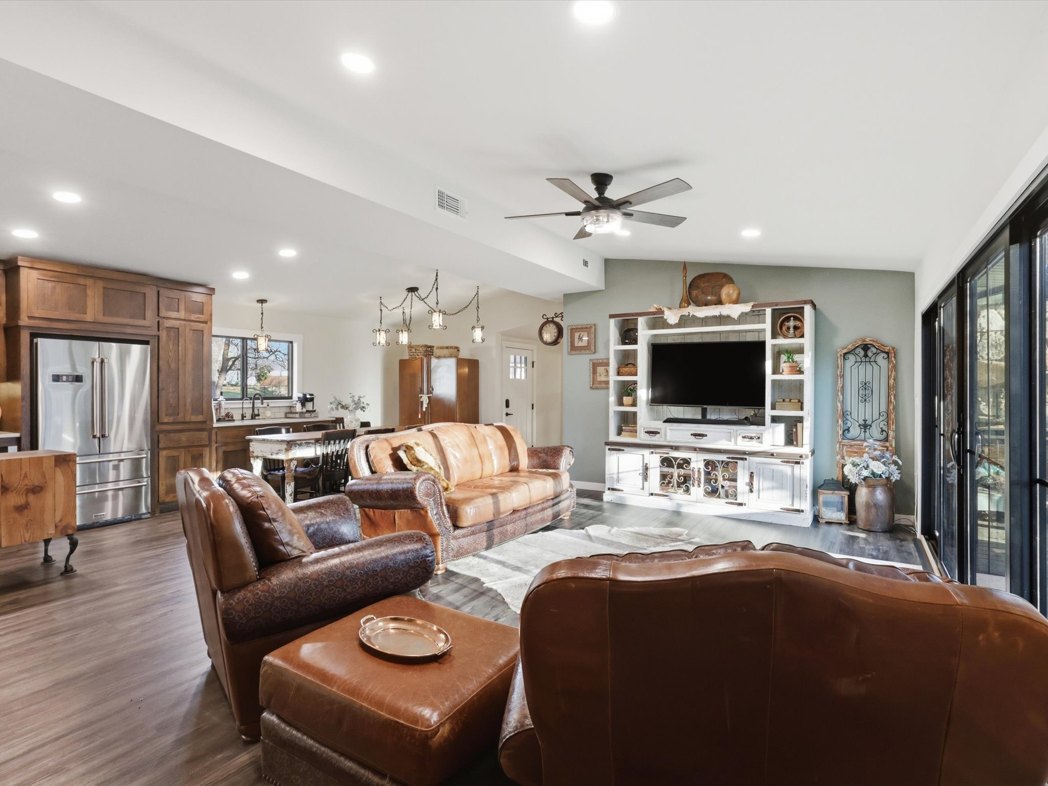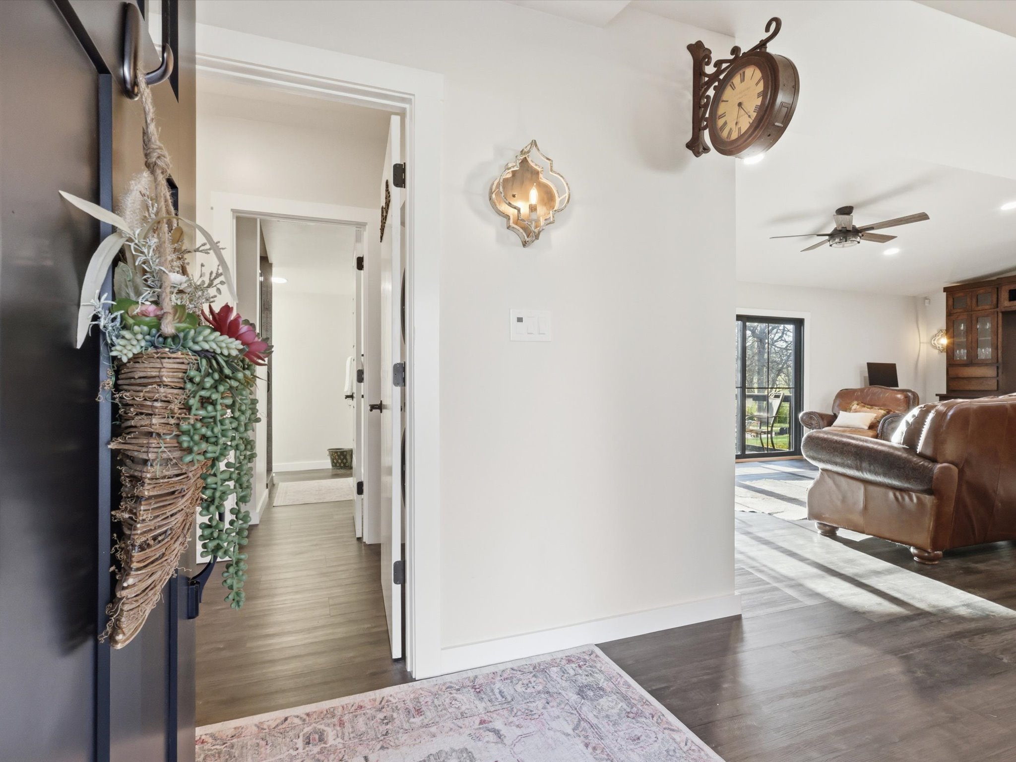This darling home is perfectly situated in a quiet country setting with beautiful views, roaming wildlife, and incredible sunsets. Completely renovated, it offers a rare blend of charm, comfort, and character.The kitchen is beautifully designed with white oak stained cabinetry, quartzite countertops, soft-close drawers, under-cabinet lighting, and a built-in pantry. A second prep sink and bar area with a built-in wine rack adds a perfect space for entertaining, along with a filtered drinking water faucet for everyday convenience.The primary suite welcomes you through stunning antique paned doors that add warmth and character, while luxury vinyl flooring runs throughout the main living areas. Fresh double-padded carpet in the secondary bedrooms adds extra comfort and a cozy feel.Step outside through a beautiful sliding door onto the deck to take in the open views across the spacious lot — the perfect spot to relax and enjoy the peaceful setting and beautiful sunsets.Thoughtfully renovated and full of charm, this home offers a quiet country feel with details that make everyday living both comfortable and inviting.