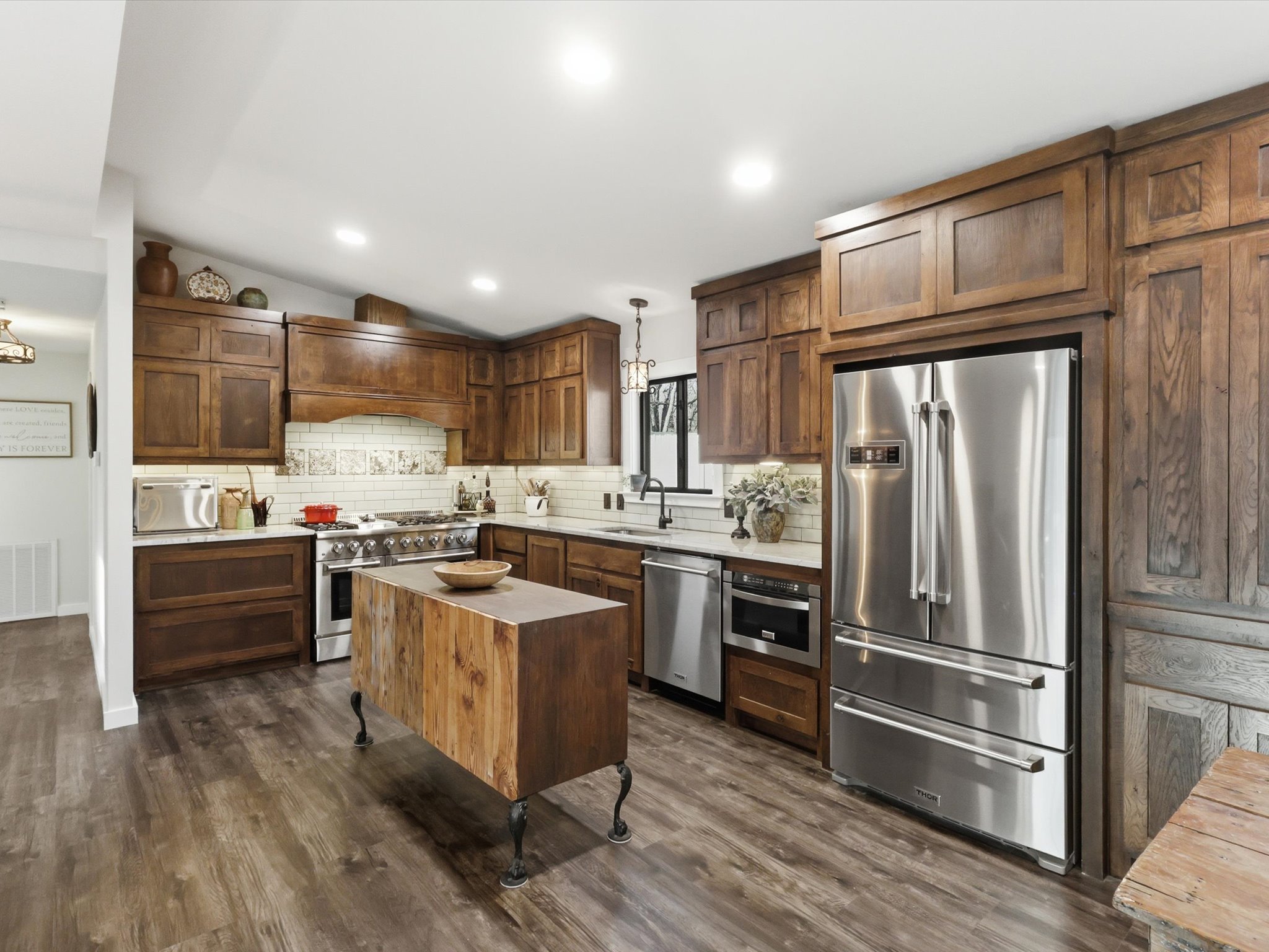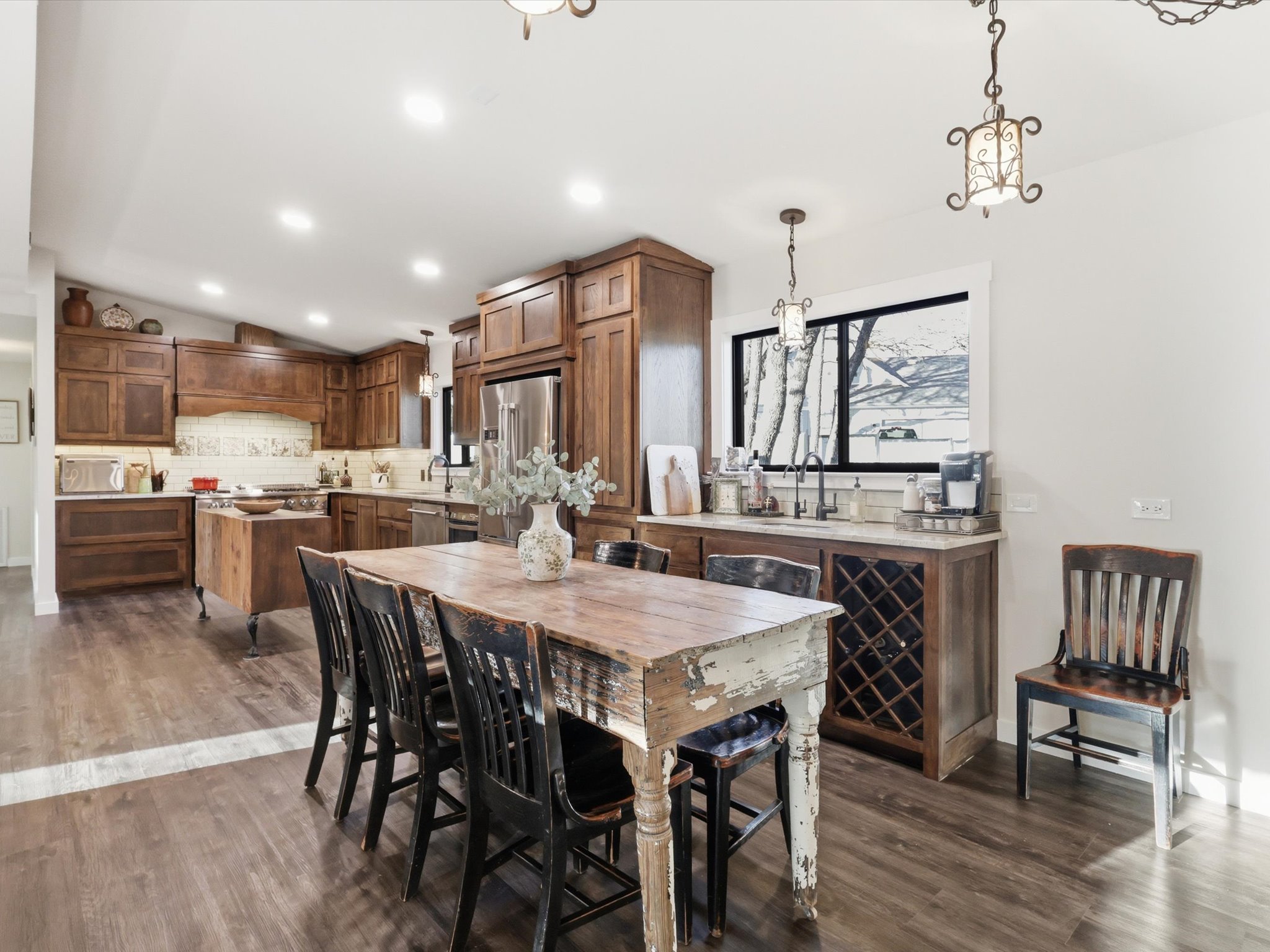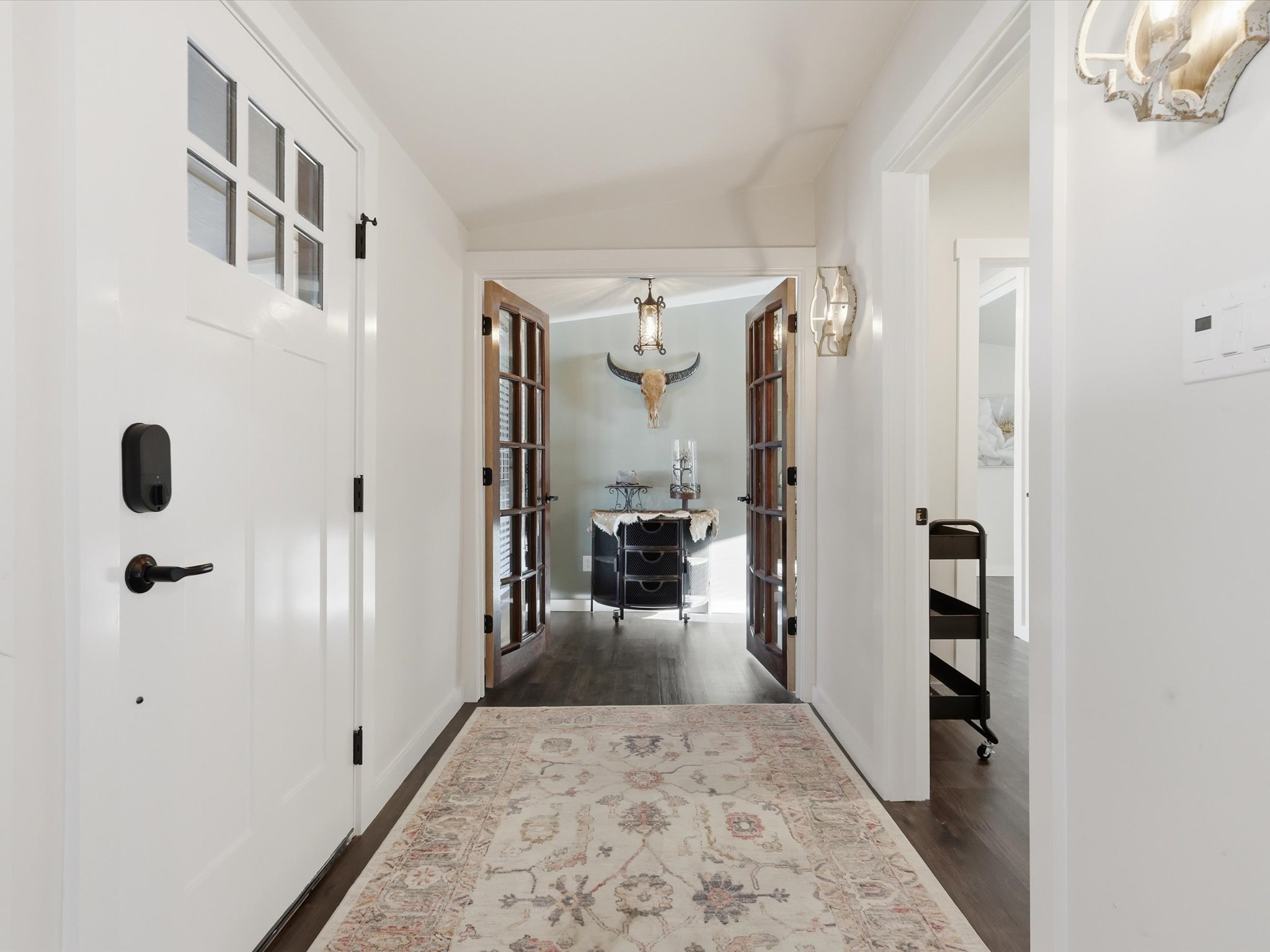 This darling home is perfectly situated in a quiet country setting with beautiful views, roaming wildlife, and incredible sunsets. Completely renovated, it offers a rare blend of charm, comfort, and character.The kitchen is beautifully designed with white oak stained cabinetry, quartzite countertops, soft-close drawers, under-cabinet lighting, and a built-in pantry. A second prep sink and bar area with a built-in wine rack adds a perfect space for entertaining, along with a filtered drinking water faucet for everyday convenience.The primary suite welcomes you through stunning antique paned doors that add warmth and character, while luxury vinyl flooring runs throughout the main living areas. Fresh double-padded carpet in the secondary bedrooms adds extra comfort and a cozy feel.Step outside through a beautiful sliding door onto the deck to take in the open views across the spacious lot — the perfect spot to relax and enjoy the peaceful setting and beautiful sunsets.Thoughtfully renovated and full of charm, this home offers a quiet country feel with details that make everyday living both comfortable and inviting.