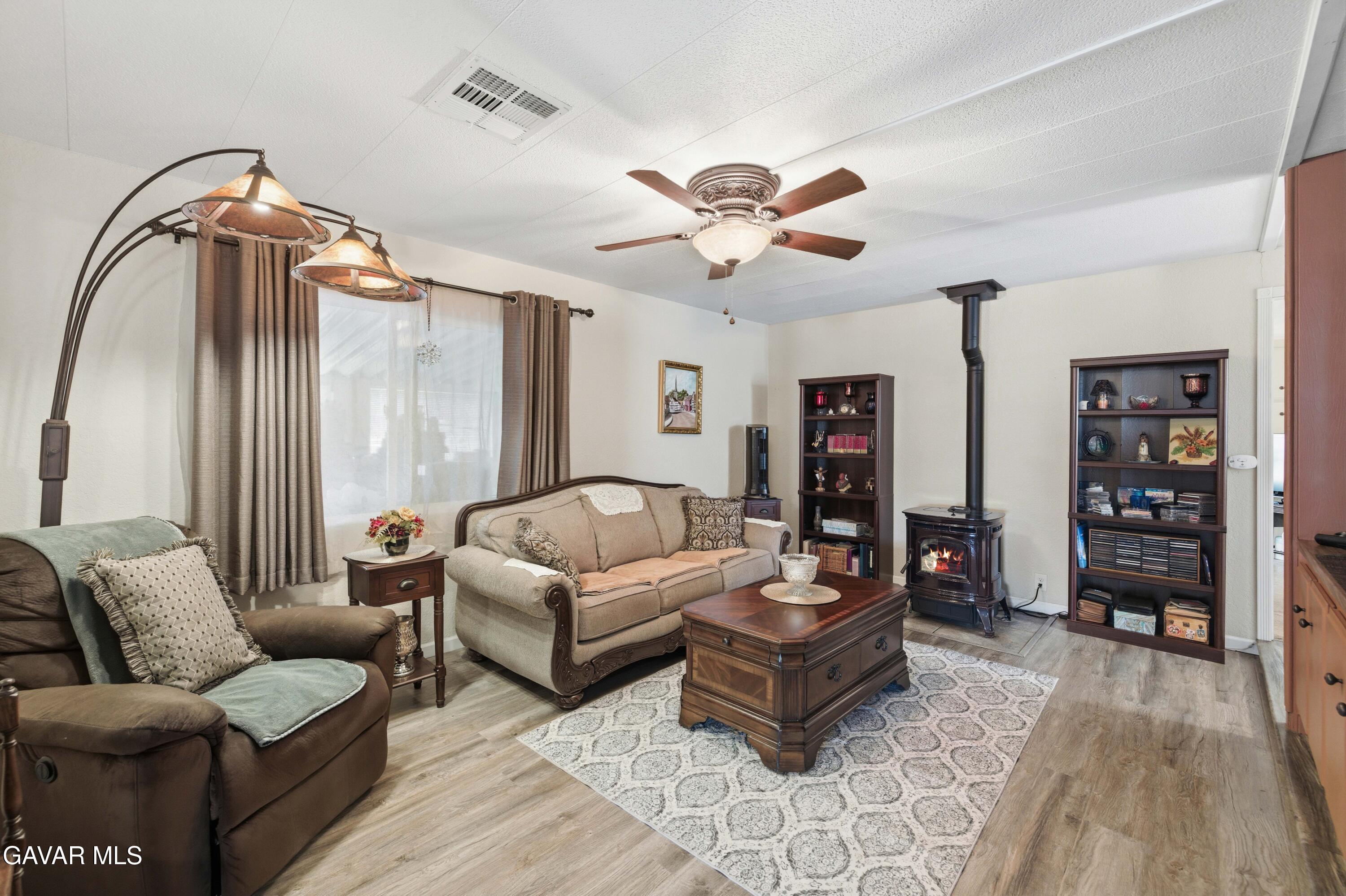 This home shows True Pride of ownership. One of the best spaces in the park. Stunning views of the Lake. Very peaceful location. Private dock for fishing or just enjoying the view. Split floor plan with the master at one end and guest room at the other. Upgrades galore, New kitchen counter tops, new paint on kitchen cabinets and door pulls, new stainless steel sink, subway tile backsplash, new vinyl flooring throughout the unit. Ceiling fans. Upgraded bathrooms. the paneling has been replaced with drywall. Beautiful double door entry. Living room and den have a wood pellet stoves to keep you cozy on the cool winter nights. Formal dining room with built in Hutch. Huge enclosed porch with amazing lake views. 2 covered patios with lakefront views, covered carport for 2 vehicles with storage shed, plus extra parking space for guests. Both entry doors have ramps. This is a Must see home.