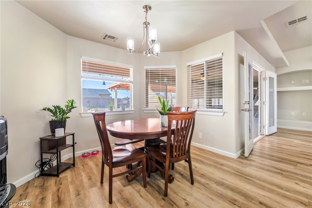 Welcome to this beautifully updated 3-bedroom, 2-bath home with a pool in the desirable Artesia community of Pahrump, featuring stunning views of Mt. Charleston. Inside, the home features luxury vinyl plank flooring in the main living areas, plush carpet in the bedrooms, fresh interior paint, and updated lighting that create a bright, modern feel. The kitchen offers granite countertops and space for cooking and gathering. Additional upgrades include a newer water heater and water softener. A standout feature is the enclosed patio with a large mini-split system, creating additional living space with year-round climate control. Step outside to a spacious covered patio overlooking the in-ground fiberglass pool, perfect for relaxing or entertaining while enjoying mountain views and desert surroundings. Located in the Artesia community, known for its well-maintained homes and quiet streets, this home offers peaceful living while still within reach of Las Vegas.