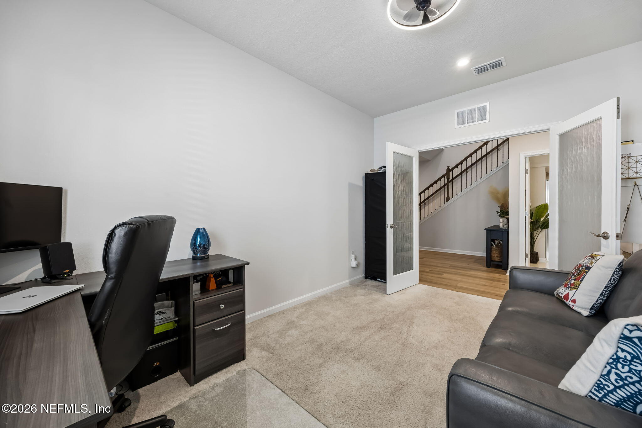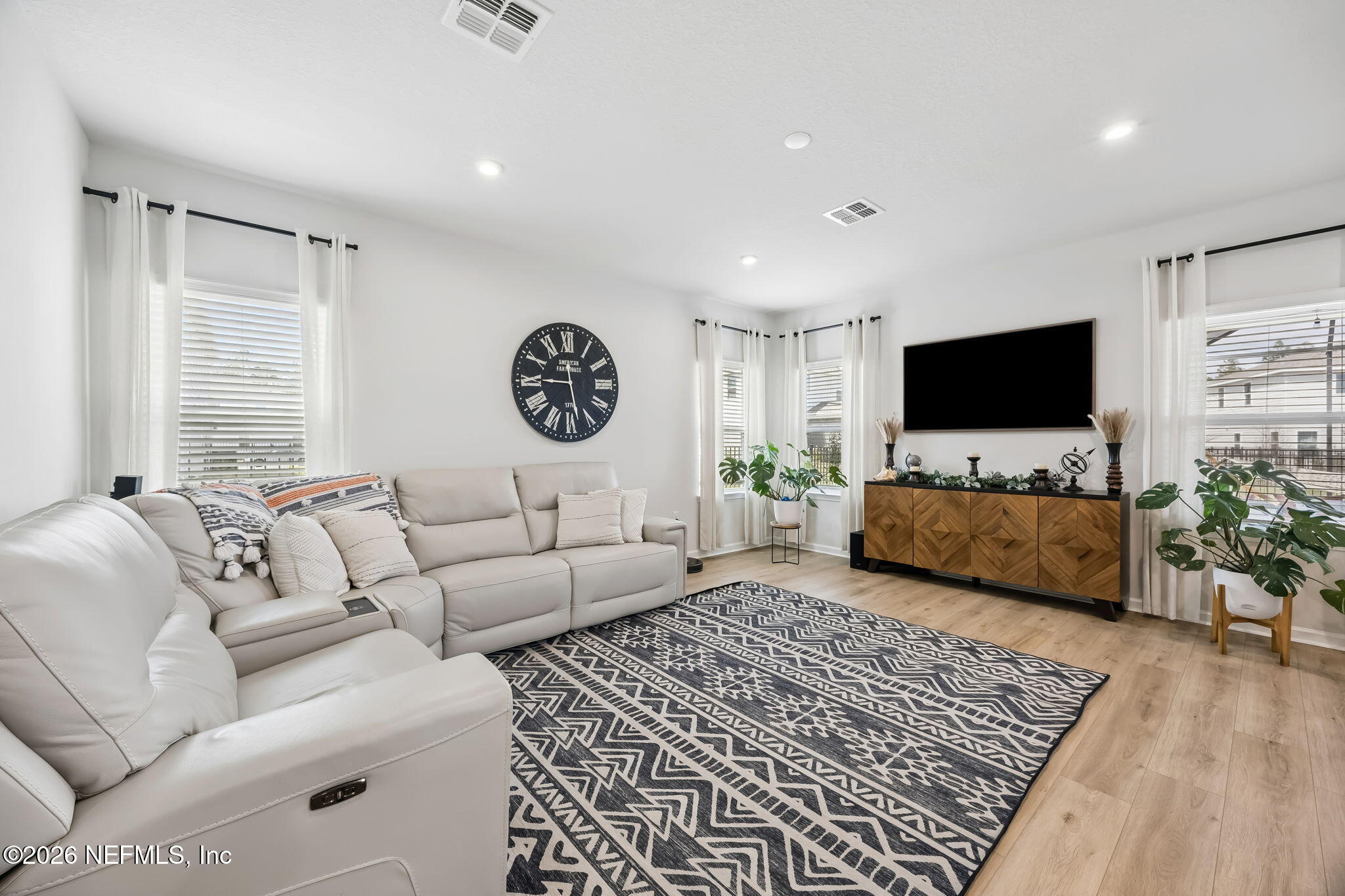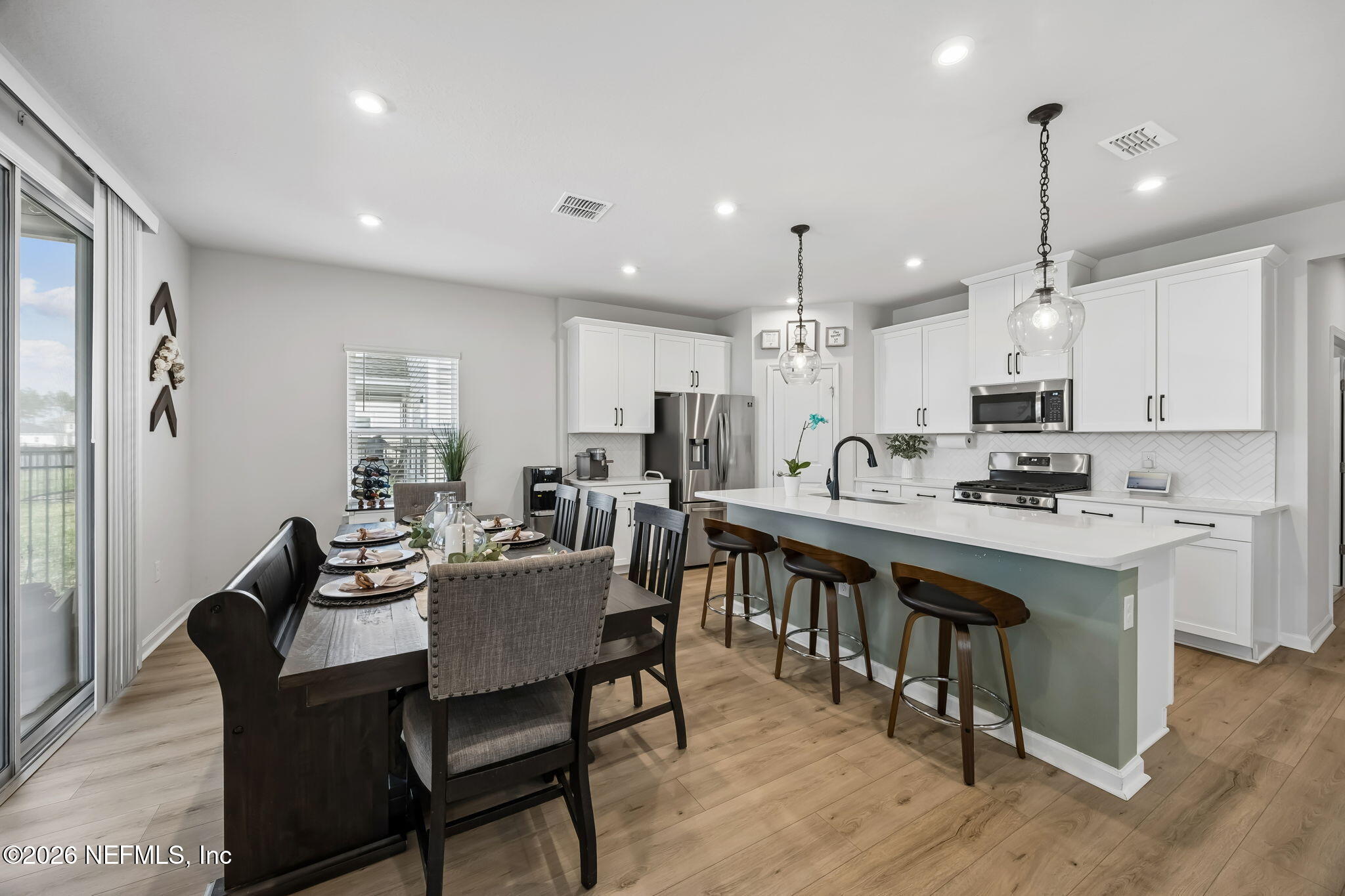 Welcome to 226 Tower Court, a beautifully maintained two-story home located in the highly sought-after Shearwater Community of St. Johns County. Known for its top-rated schools, family-friendly atmosphere, and resort-style amenities, Shearwater offers a lifestyle that's hard to beat. From the moment you arrive, the home's paver driveway and newly installed Gemstone permanent exterior lighting create eye-catching curb appeal and make holiday decorating effortless year-round. Step inside to find luxury vinyl plank flooring flowing throughout the main living areas, offering both durability and style that's perfect for busy households. Just off the entryway, a flex room with carpet flooring provides the ideal space for a home office, playroom, or homework zone, while the convenient full bath is tucked neatly beneath the staircase. As you move down the entry hall, the home opens into the spacious main living area where the living room, dining space, and kitchen seamlessly connect, creating the perfect gathering space for family time and entertaining. The kitchen is designed for both everyday living and hosting, featuring a large island, quartz countertops, white cabinetry, and stainless steel appliances, along with smart-home convenience including a WiFi-enabled Samsung refrigerator and WiFi-enabled washer and dryer. Upstairs, all bedrooms are thoughtfully located together for family-friendly living. The staircase leads to a versatile loft space that works perfectly as a media room, kids' hangout, or homework station. Three guest bedrooms and a full guest bath provide plenty of room for family and visitors. The spacious primary suite serves as a private retreat with two walk-in closets featuring built-in storage and an en suite bath with double vanities and a walk-in shower. Step outside to enjoy Florida living at its best on the recently expanded screened lanai with beautiful pavers overlooking the fully fenced backyard and peaceful lake views, creating a great space for kids and pets to play while you relax or entertain. Additional upgrades include a WiFi-enabled Aladdin garage door opener, WiFi-enabled sprinkler system, Nest doorbell, Nest thermostat, and electrical already in place in the garage for convenient electric vehicle charging. Living in Shearwater means access to incredible community amenities designed for active families, including resort-style pools, a lazy river, waterslides, a fitness lodge, kayak launch, playgrounds, sports courts, miles of nature trails, and community events throughout the year. Families also benefit from being located within the highly acclaimed St. Johns County School District, one of the top-performing districts in Florida known for strong academics and excellent extracurricular programs. At 226 Tower Court, you'll find the perfect combination of space, smart-home convenience, and a vibrant community, making it an ideal place for families to grow, gather, and create lasting memories.
