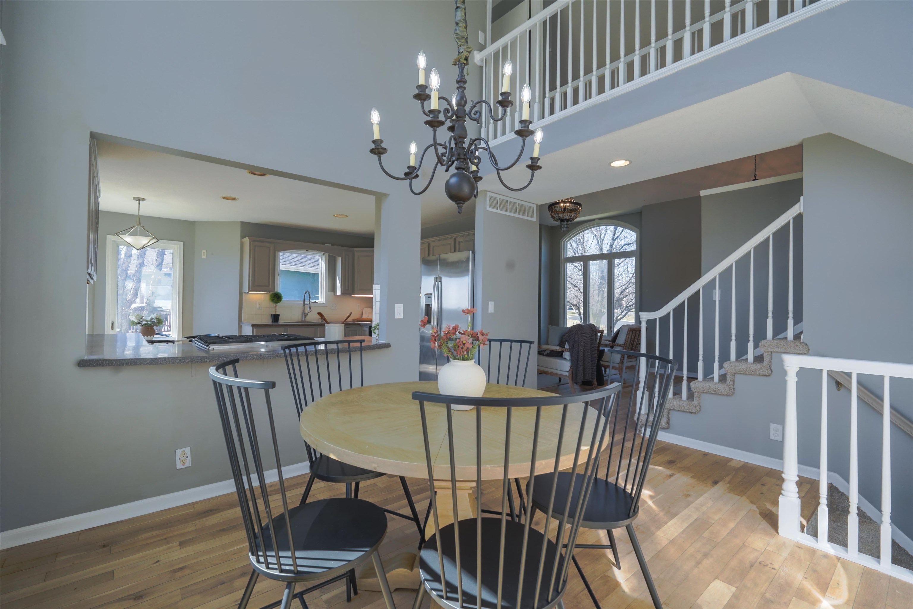 Beautifully refreshed 4-bedroom, 3.5-bath home with breathtaking golf course and lake views, located in the popular Green Valley neighborhood and Andover School District. Fresh interior paint and enameled woodwork throughout create a bright, polished feel, while hardwood floors span the entire main level. Designed for both everyday comfort and entertaining, the home offers two spacious living areas and two dining spaces. The inviting family room features patio doors that open to the spacious backyard and a large deck overlooking the golf course creates the perfect place to enjoy peaceful sunrise coffee or evening relaxation. A truly unique architectural feature is the dramatic catwalk overlooking the main floor, creating an open, airy feel while separating the upstairs bedrooms. The spacious primary suite captures beautiful golf course views and includes a double vanity, relaxing soaker tub, and generous closet space. All bedrooms are comfortably sized. The finished lower level provides flexible space that can serve as a guest bedroom, recreation room, or additional living area, complete with a nearby bathroom. Don't miss out on this great home with amazing views!