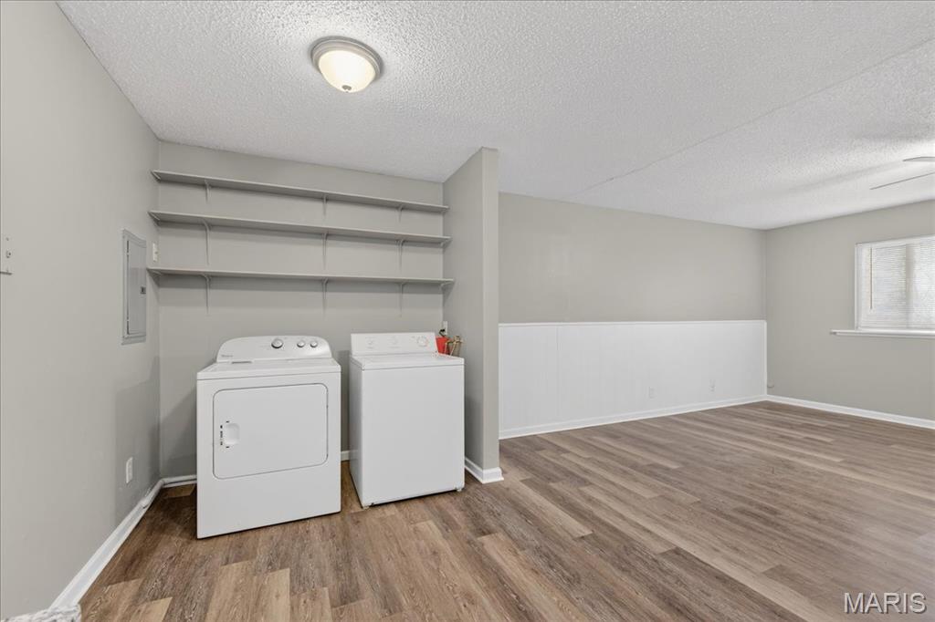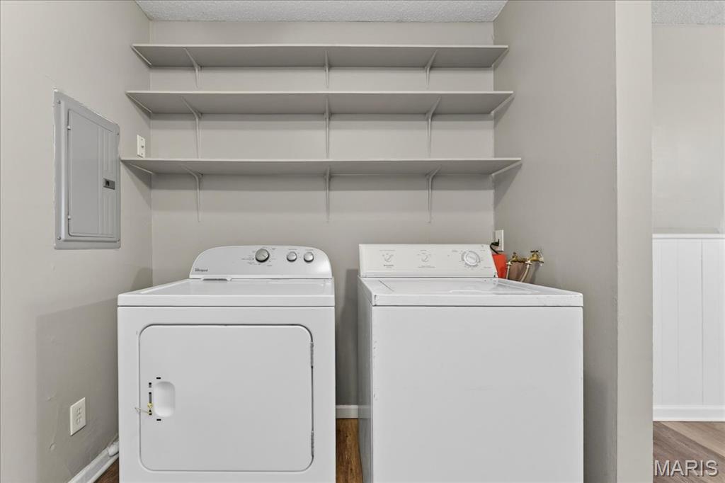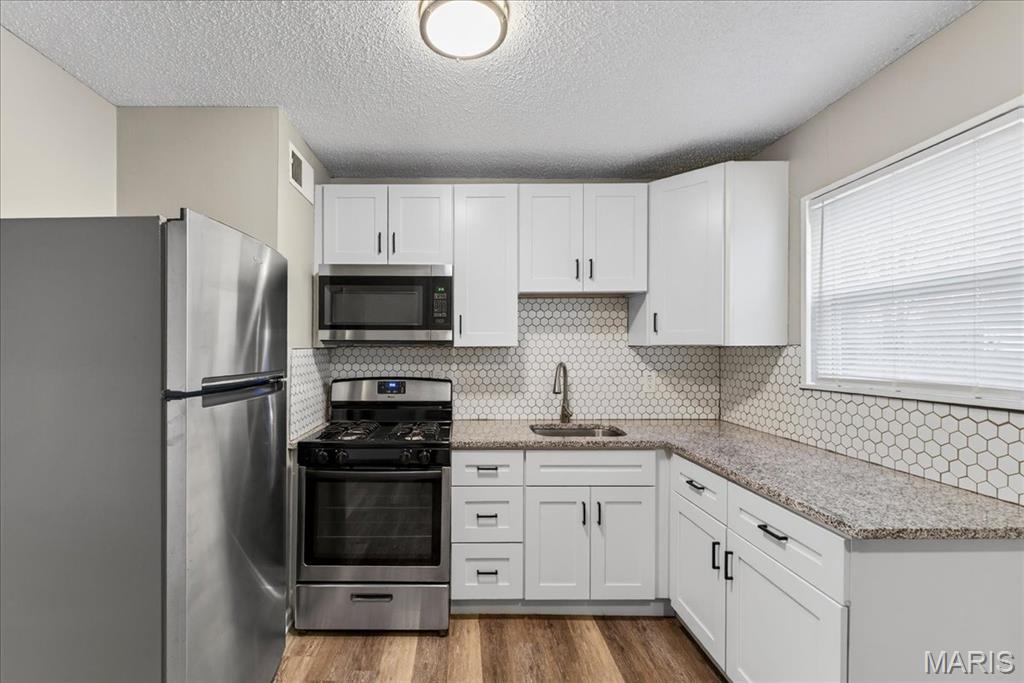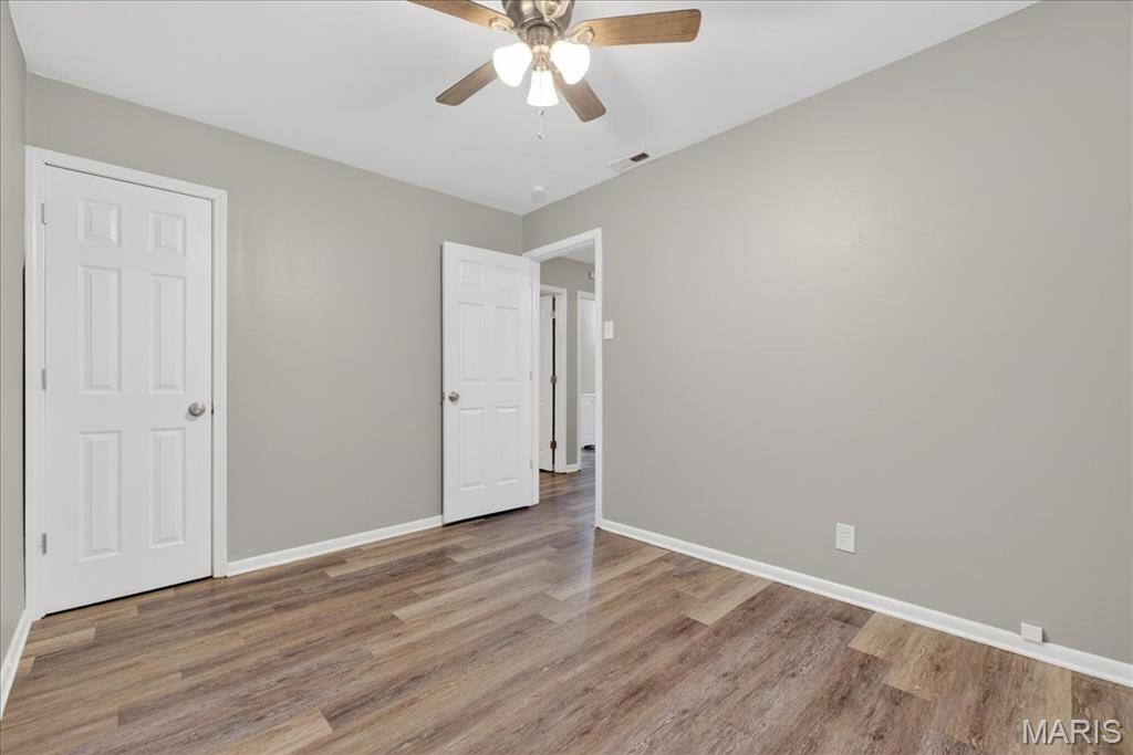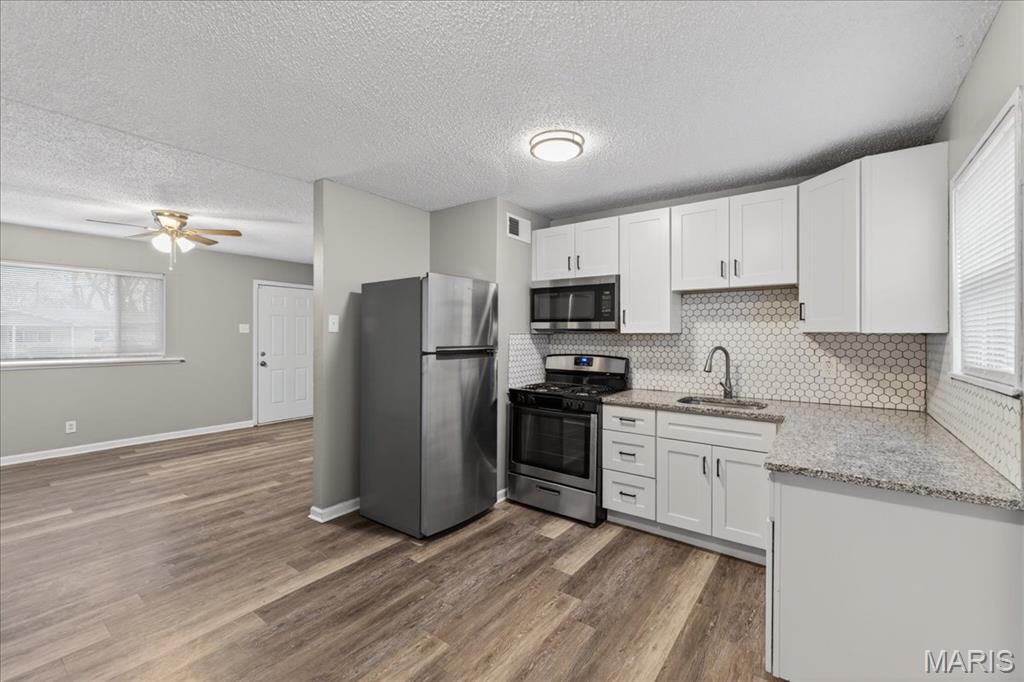 Just unpack and relax in your next home...single level living, refreshed, updated & truly move in ready! Spacious main living area features a large picture window, lighted ceiling fan and is open to the kitchen. Newer stainless appliances are featured in the kitchen with a gas range, and the refrigerator is included as well. White cabinetry highlights the granite countertops and tile backsplash. The kitchen also has another large window for natural light and a view of the back yard. The laundry area is located to the side of the kitchen, washer and dryer will stay! You'll also be able to access the yard from the kitchen. The hallway from the living area leads to 3 bedrooms and updated full bath. All bedrooms include lighted ceiling fans. Additional features throughout this home include fresh paint, LVP flooring, white 6 panel doors and vinyl tilt-in windows. The back yard is fully fenced and level, includes a patio area and storage shed. Wentzville-Timberland schools serve the neighborhood, shopping and services are near by, and you'll have quick access to roadways. Boxes are all checked...make an appointment for your private viewing today!