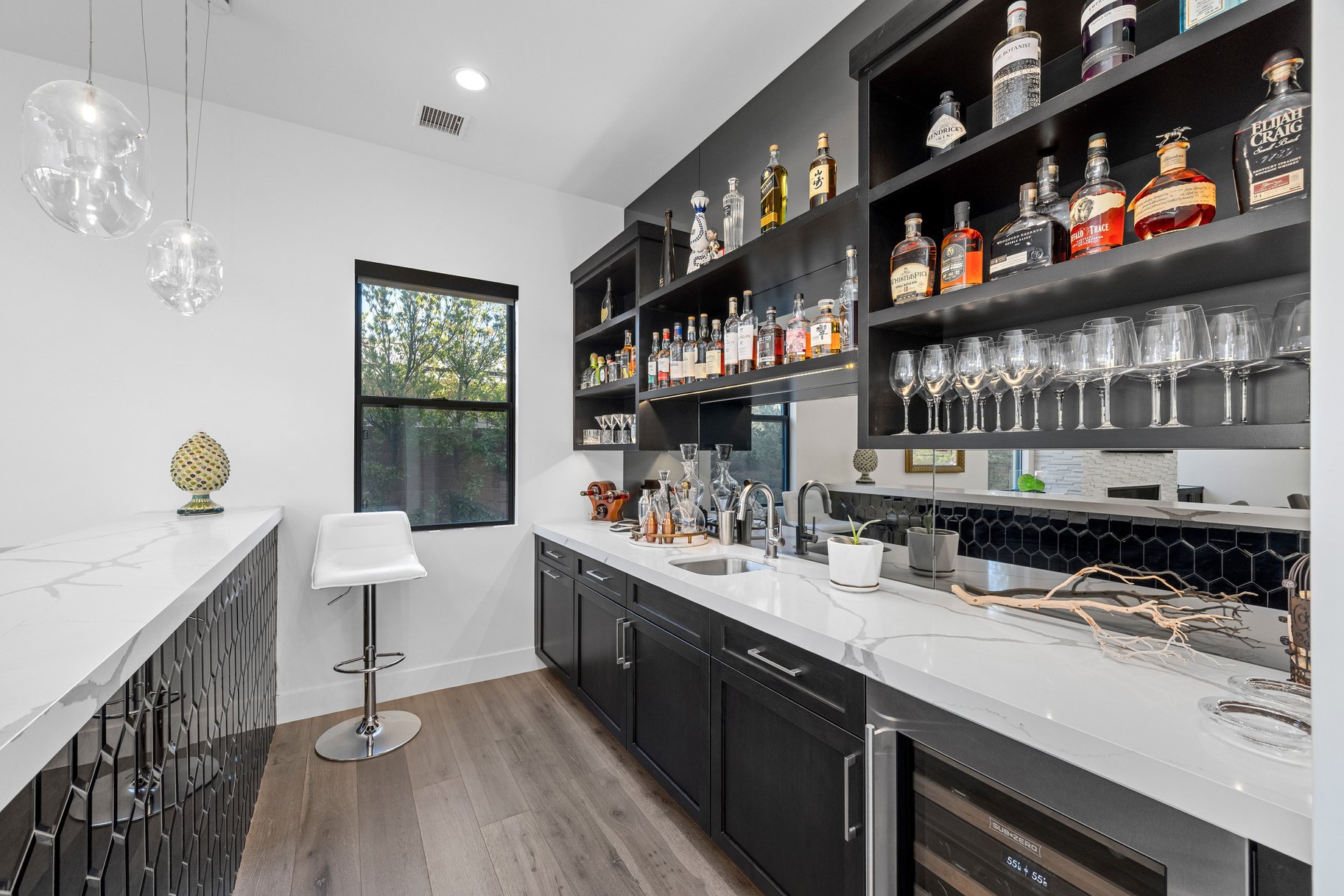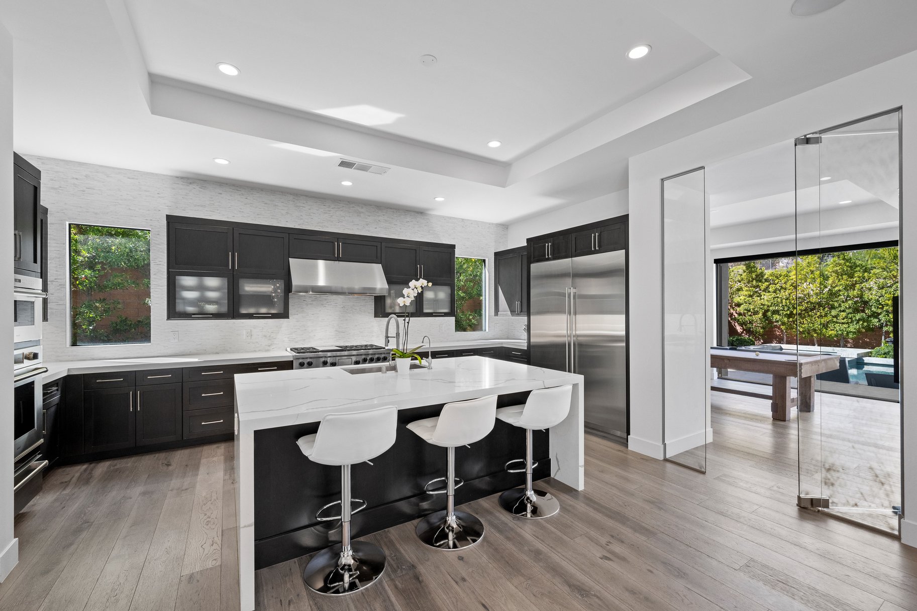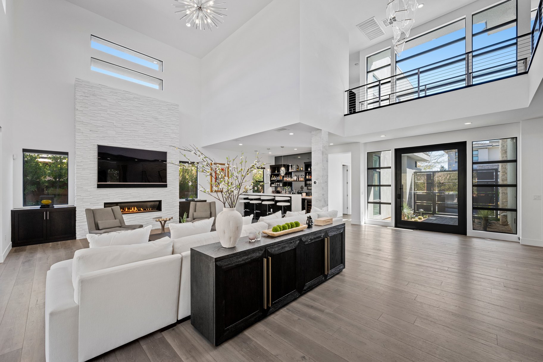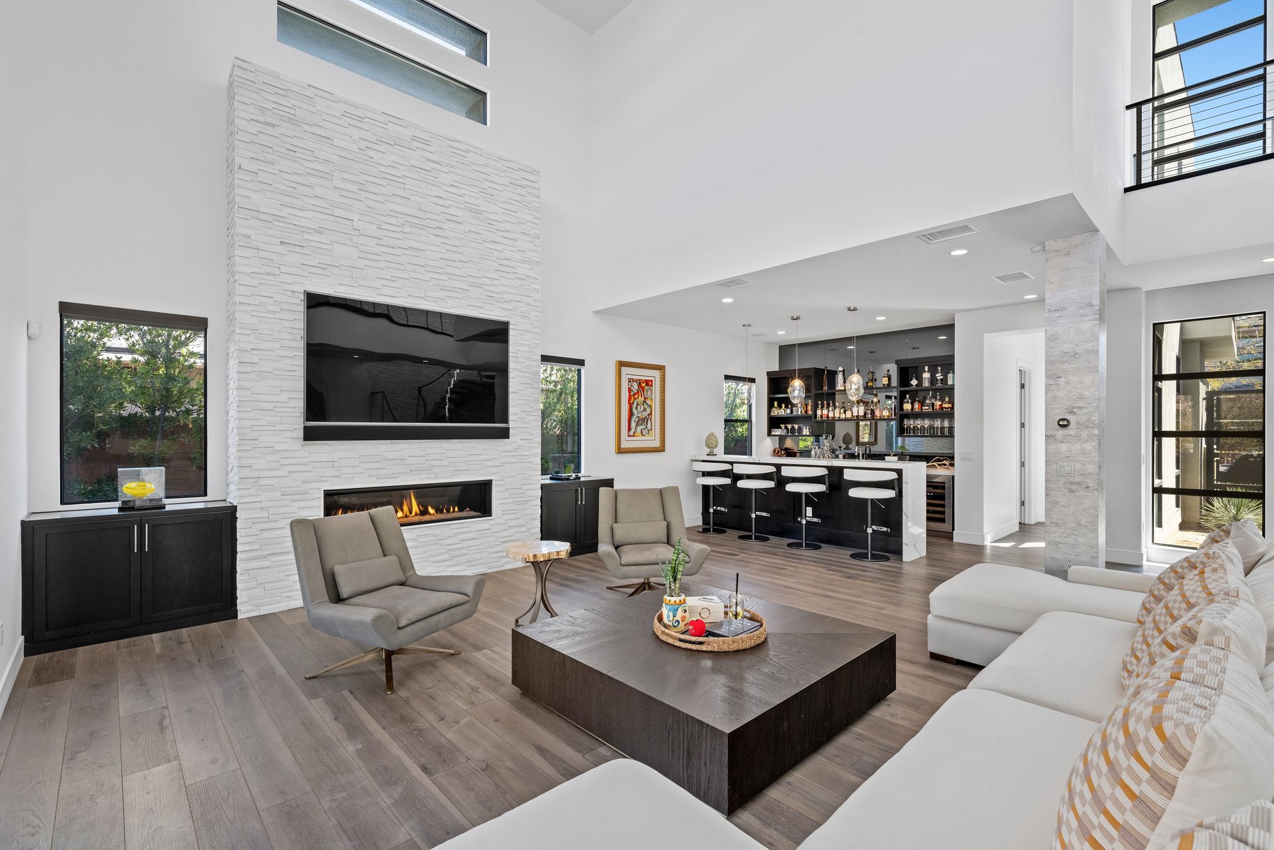 Tucked behind the guard gates of The Ridges, life moves at a different pace. Mornings begin with soft desert light pouring through expansive windows, illuminating more than 4,600 s/ft of contemporary living. With 4 bedrooms & 6 baths, the layout is designed for quiet moments and effortless entertaining. At the heart of the home, the kitchen becomes the gathering place. Anchored by Sub-Zero refrigeration and a Wolf range, it’s built for culinary creativity & connection. The open design allows the space to flow seamlessly into the surrounding living areas. Hardwood floors lead to a primary retreat with a sitting area and covered patio—perfect for morning coffee or quiet evenings. The spa-inspired bath and dual walk-in closets add everyday comfort. Outside, the backyard has gas fire features and an outdoor kitchen with a built-in Viking grill. Residents also enjoy access to Club Ridges with fitness, tennis, pickleball courts, and pool within one of Summerlin’s most desirable communities.