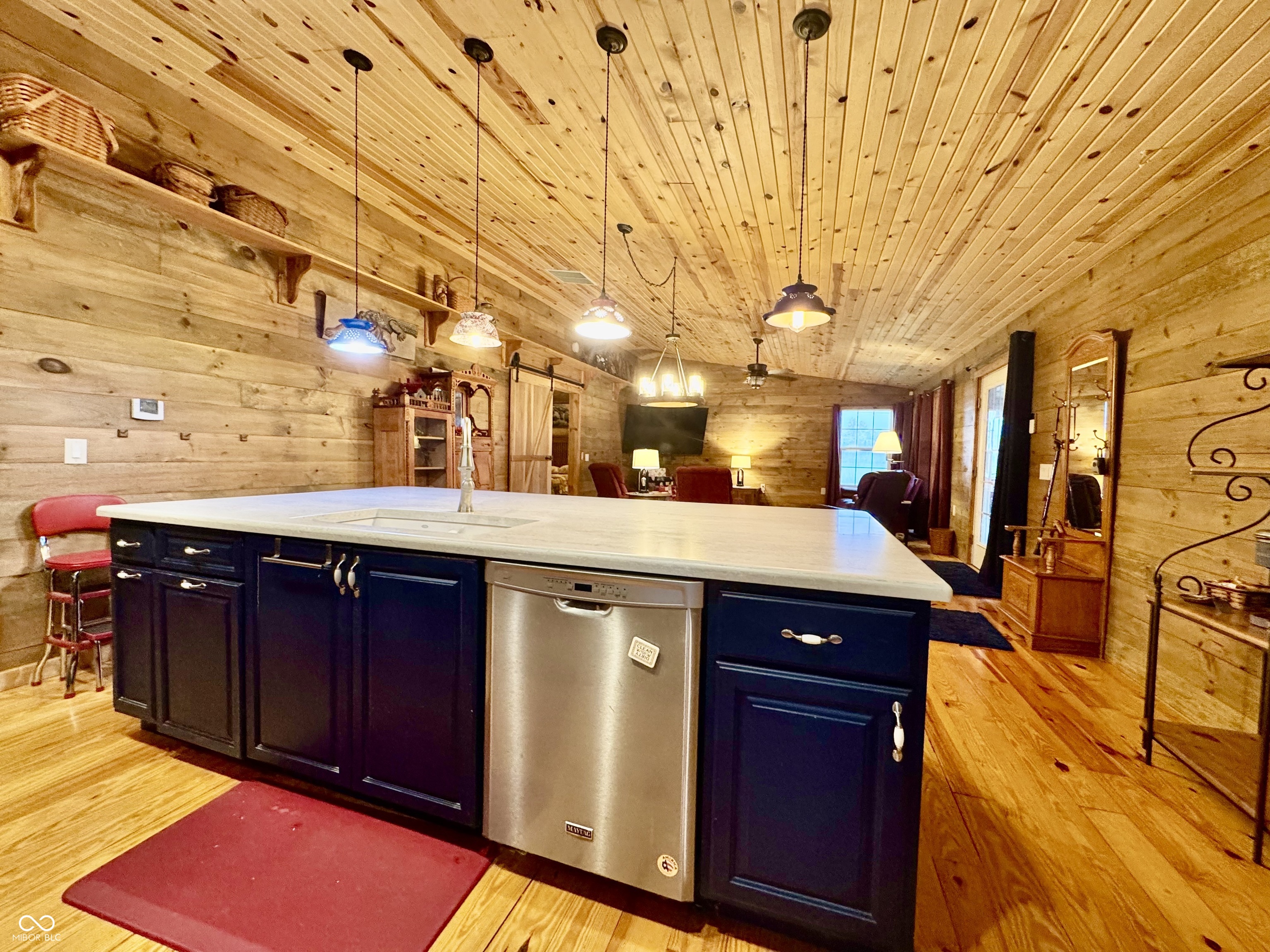 Built in 2019, this beautifully crafted 3-bedroom, 2.5-bath ranch home offers 2,496 square feet of living space and sits on 2 peaceful acres in the Cortland School District, outside of the floodplain. The home was thoughtfully designed with comfort and functionality in mind. The interior is finished entirely in natural pine, creating a warm and inviting atmosphere throughout along with the pleasant natural scent of wood. The spacious primary suite features 36-inch ADA-accessible doors, grab bars, a large 9' x 14' walk-in tile shower, a heated garden tub, and an additional wall heater to keep the space comfortable while bathing. The master closets are lined with cedar and provide a pleasant natural scent. The kitchen offers solid surface countertops, an undermount sink, a gas stove, soft-close cabinetry, and a large 5' x 9' center island perfect for gathering and entertaining. A unique third bedroom currently used as a quilt room provides incredible flexibility with its own service entrance, ADA-accessible ramp, two sets of double doors, closet, and half bath. This space could easily serve as a home office, recreation room, home business space, or be converted into additional bedrooms if desired. Utilities are cost-efficient with well water featuring a filtration system and a septic system already in place. Electrical service includes a 200-amp breaker panel in the home and a separate 200-amp breaker panel in the barn. Outside, the property offers excellent additional workspace and storage including a 30' x 21' detached garage, a 23' x 15' workshop equipped with a wood stove, and a 15' x 10' lean-to for equipment storage. The property also features a 15' x 12' insulated she shed with electric, offering even more flexibility for hobbies or workspace. A durable metal roof adds long-term value and peace of mind while the 2-acre setting provides space, privacy, and beautiful country surroundings.
