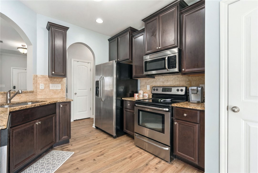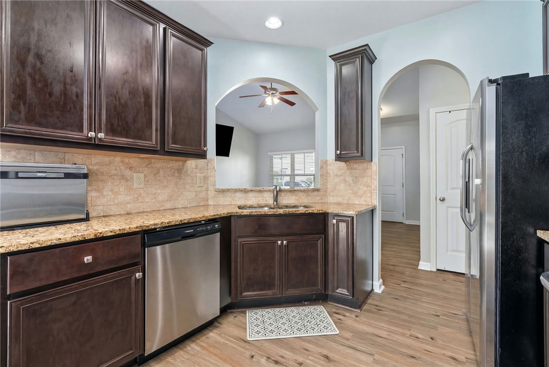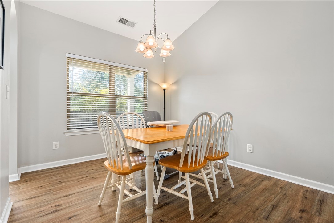 Whether you're searching for a **starter home, investment property, retirement spot, or simply a cozy retreat**, this charming **3 bedroom, 2 bathroom one-level home** offers comfort, convenience, and low-maintenance living. Inside, you'll find **LVP flooring throughout**, **granite countertops**, and a **stylish tiled backsplash in the kitchen**. The kitchen also features **stainless steel appliances, including the refrigerator and a new dishwasher**, making it truly move-in ready. Enjoy relaxing mornings on the **welcoming front porch** or unwind in the evenings on the **covered rear patio overlooking the large fenced backyard**, perfect for pets, entertaining, or outdoor enjoyment. An additional **large green space beside the home (part of a neighborhood easement)** provides extra room for play and outdoor activities. Recent updates include a **new HVAC coil and drain pan**, offering added peace of mind. Located on a **quiet street next to the community pool**, this home is also **convenient to shopping, downtown, Interstate 85, and a nearby elementary school**, making it ideal for a variety of lifestyles.