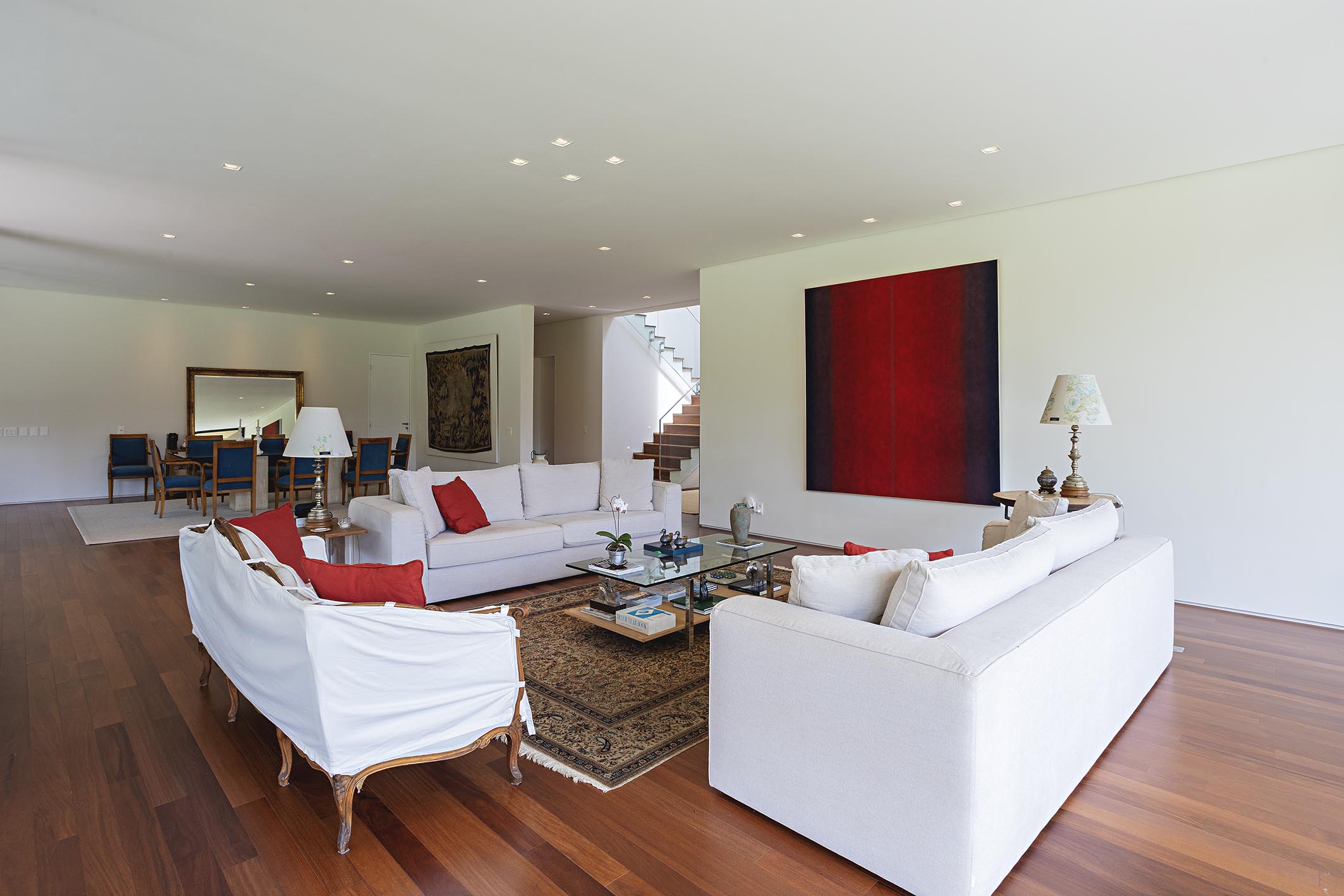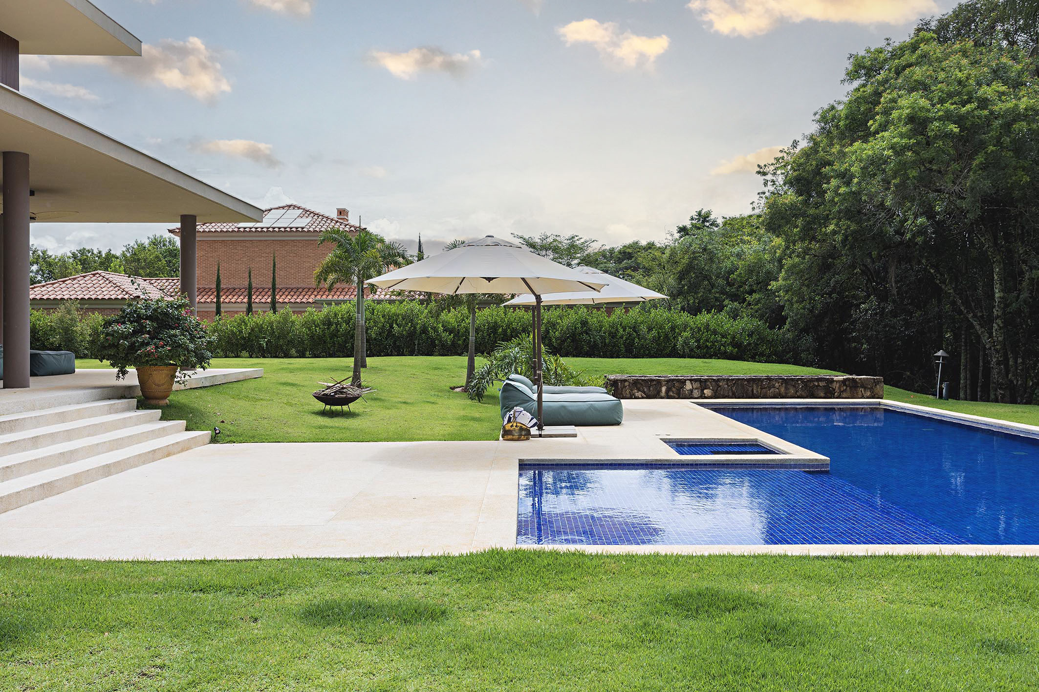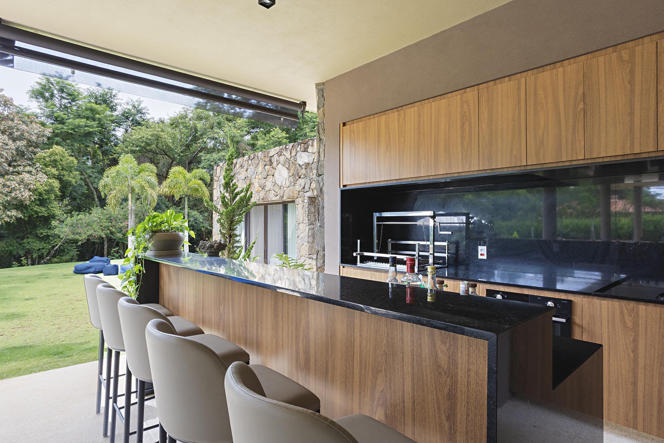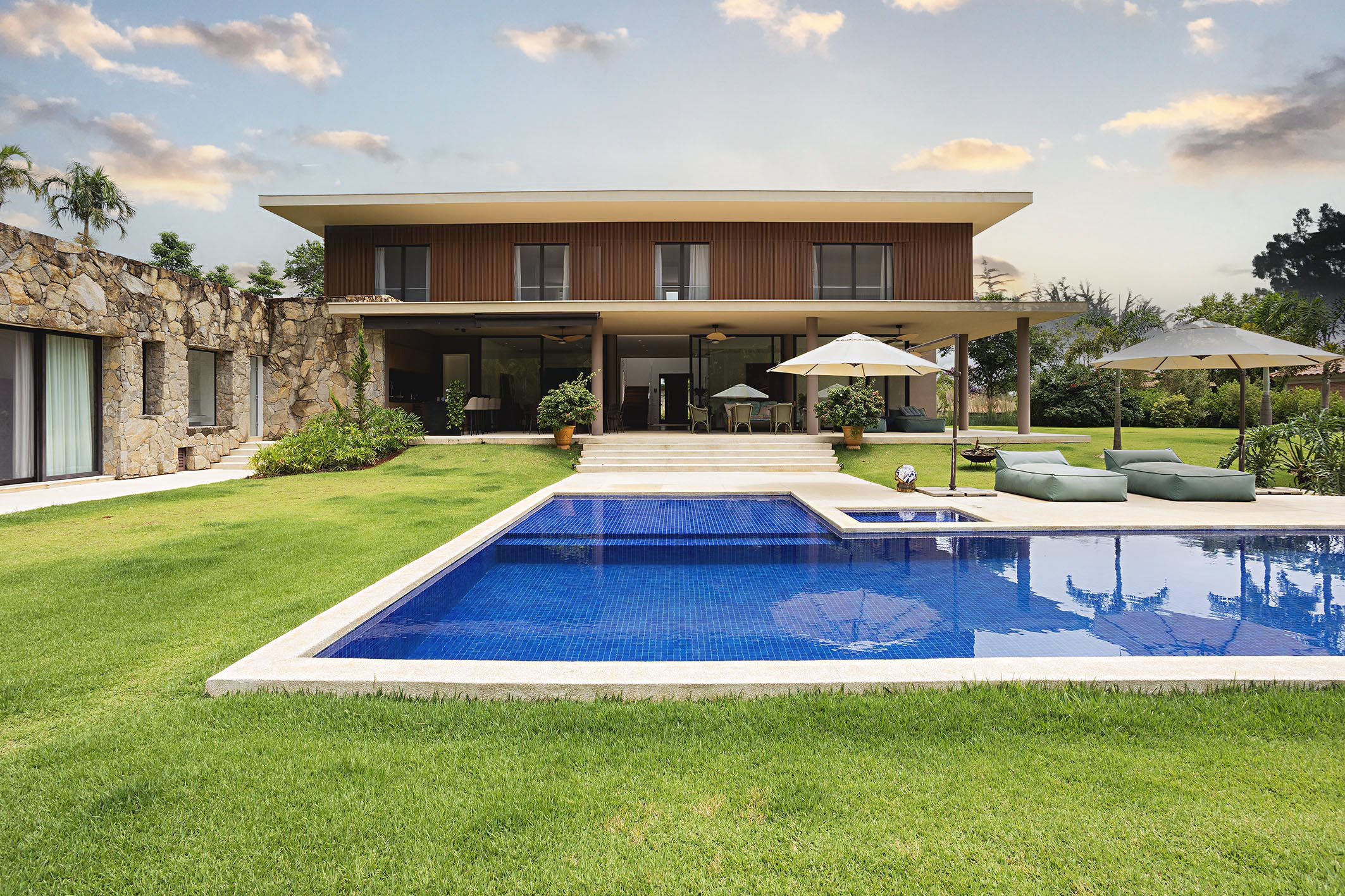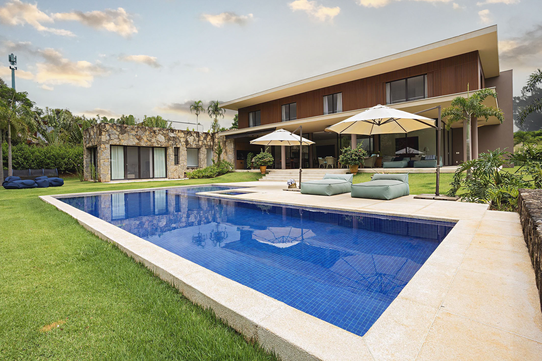 Located within the Quinta da Baroneza condominium, in a quiet countryside setting in the interior of São Paulo, this residence was built in 2023 on a flat plot facing the forest, featuring contemporary architectural lines and generously proportioned interiors. The design emphasizes seamless integration between spaces, with a social area composed of a living room connected to the gourmet area, creating a continuous environment ideal for entertaining, in addition to a home theater and elevator. The outdoor area includes a swimming pool, spa, sauna, and a multipurpose lounge with a bathroom that can be adapted to different uses according to the resident’s needs. On the upper floor are six well-distributed suites, along with a linen room serving the private area. The residence also features a staff suite and a caretaker’s house with two bedrooms, bathroom, living room, and kitchen. The functional layout organizes the spaces in a fluid manner, with abundant natural light, privacy, and permanent views of the surrounding greenery.