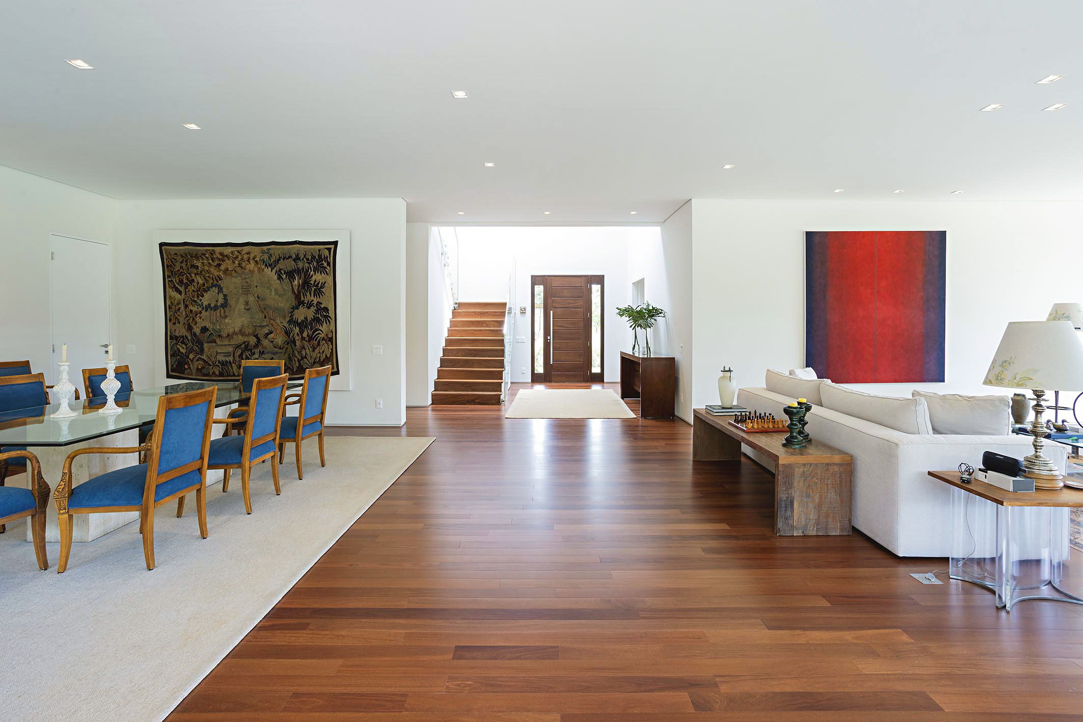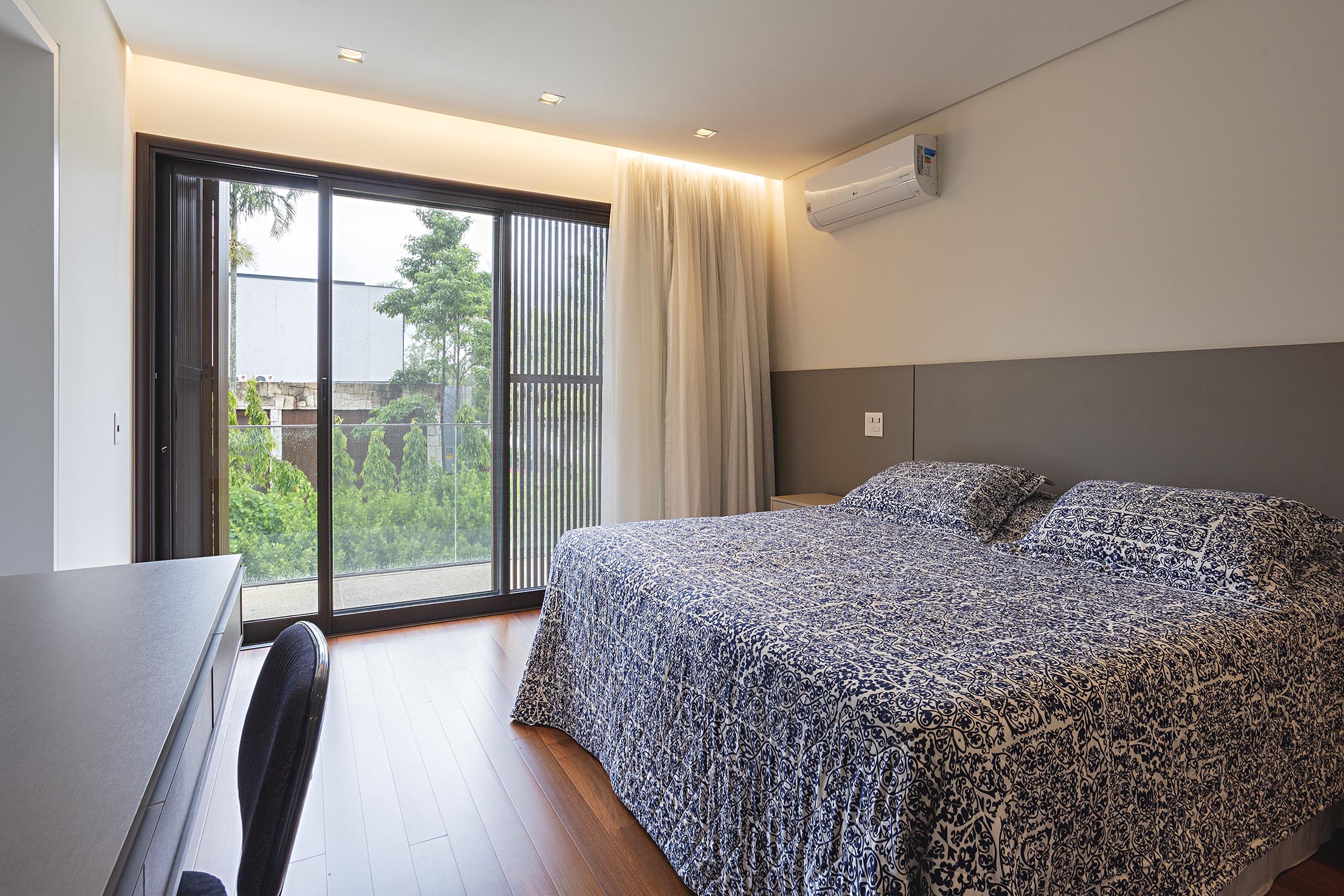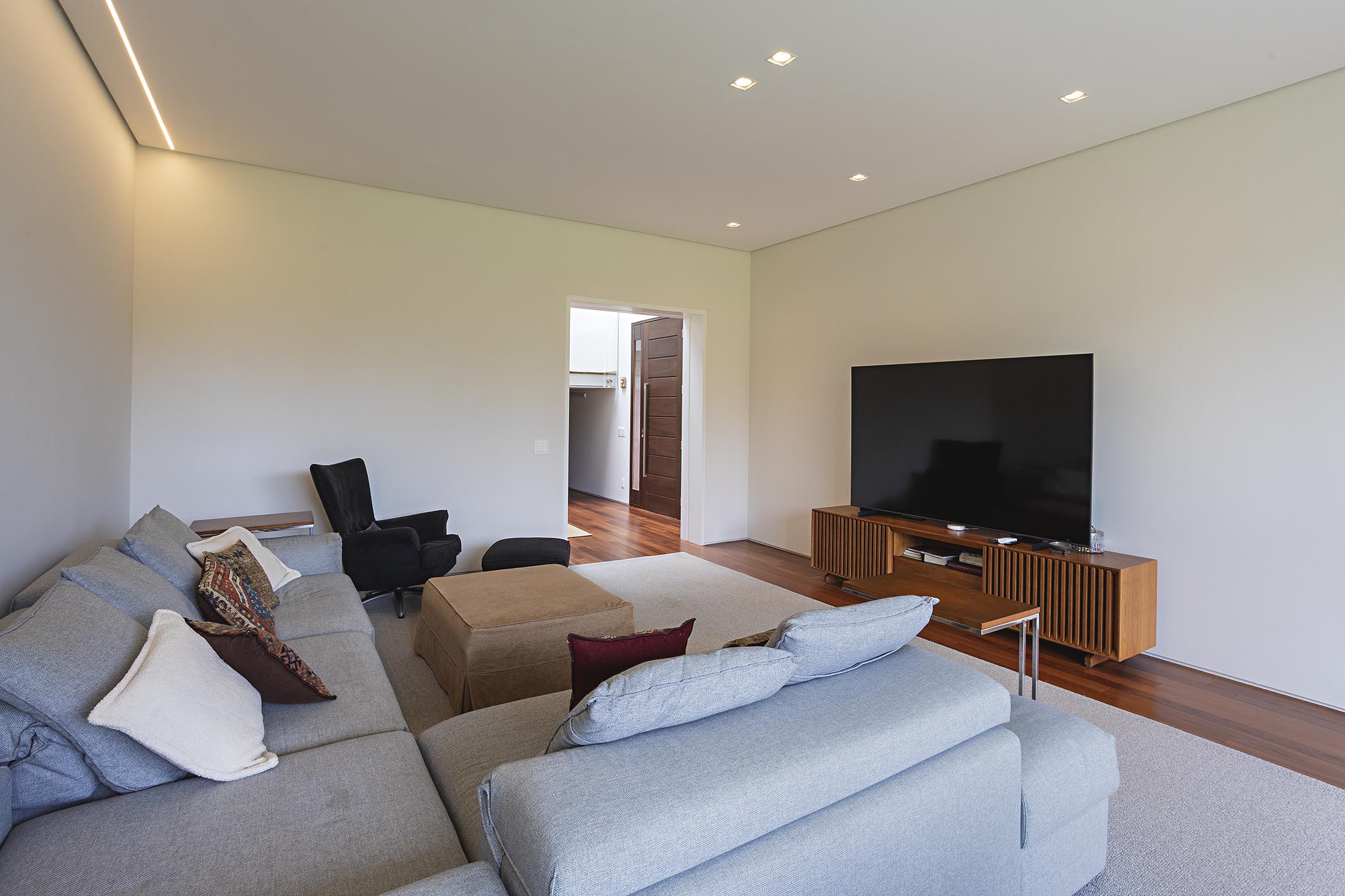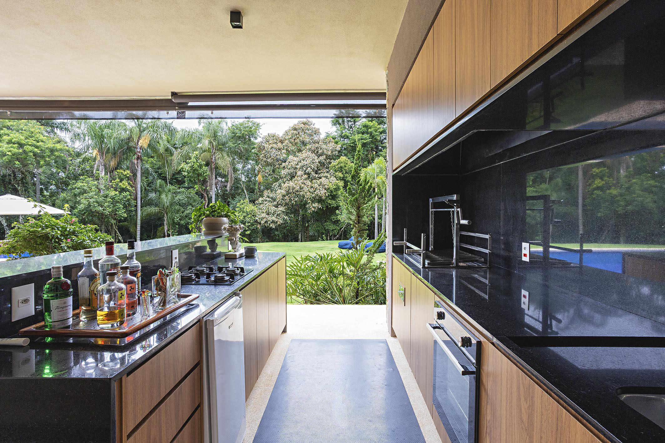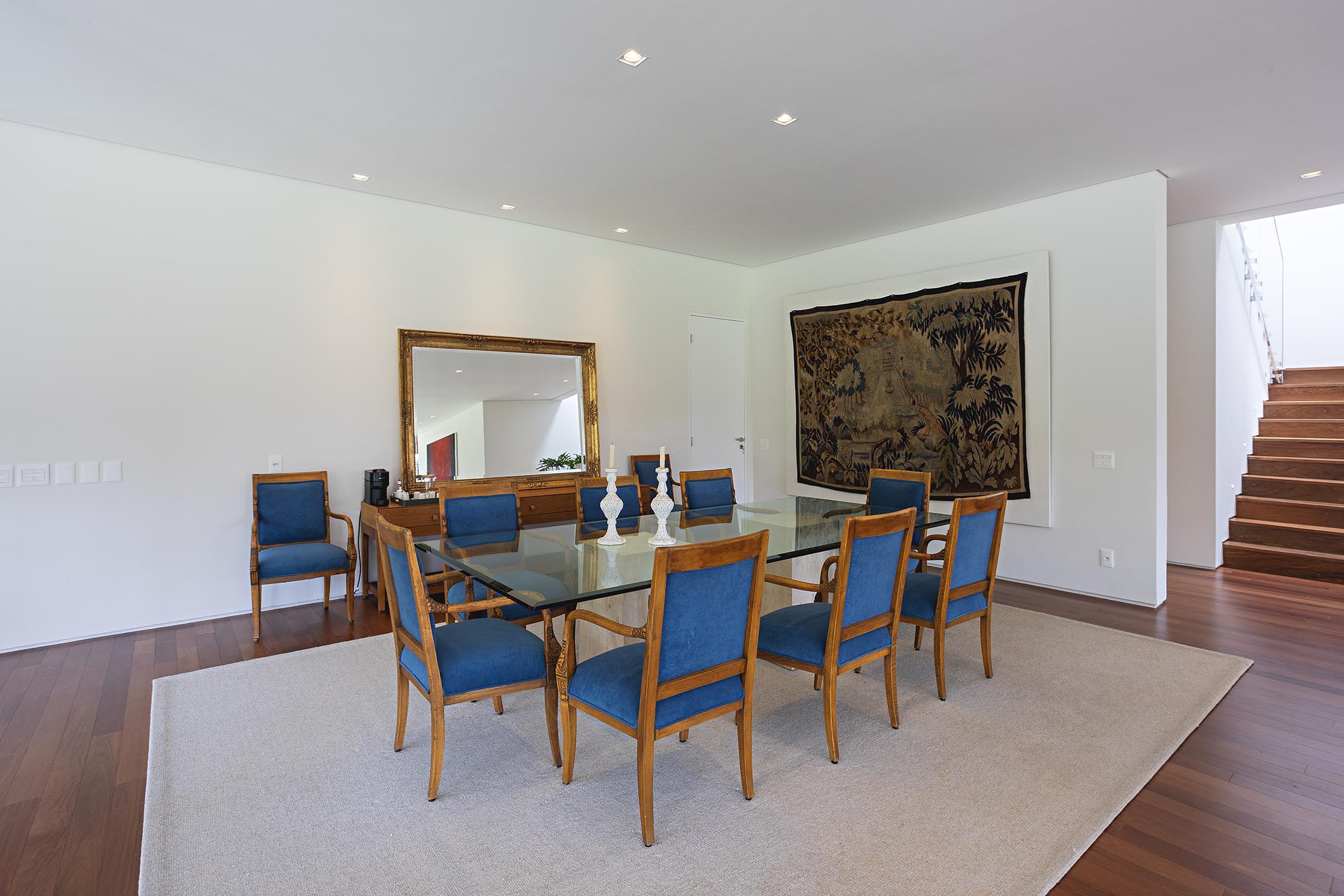 Located within the Quinta da Baroneza condominium, in a quiet countryside setting in the interior of São Paulo, this residence was built in 2023 on a flat plot facing the forest, featuring contemporary architectural lines and generously proportioned interiors. The design emphasizes seamless integration between spaces, with a social area composed of a living room connected to the gourmet area, creating a continuous environment ideal for entertaining, in addition to a home theater and elevator. The outdoor area includes a swimming pool, spa, sauna, and a multipurpose lounge with a bathroom that can be adapted to different uses according to the resident’s needs. On the upper floor are six well-distributed suites, along with a linen room serving the private area. The residence also features a staff suite and a caretaker’s house with two bedrooms, bathroom, living room, and kitchen. The functional layout organizes the spaces in a fluid manner, with abundant natural light, privacy, and permanent views of the surrounding greenery.