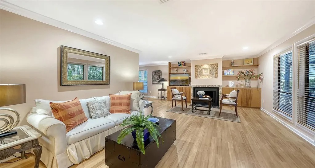 Welcome to Siesta Cove on Siesta Key, just minutes from world famous Siesta Key Beach. This bright, well maintained home offers comfortable island living in one of the area's most desirable neighborhoods. The layout provides excellent flexibility with both a living room and a separate family room, giving you plenty of space to relax or entertain guests. Oversized windows throughout the home bring in natural light and offer beautiful views of the mature tropical landscaping, creating an inviting atmosphere. An electric fireplace adds warmth and character to the living room, while the two skylights in the family room bring in beautiful natural light throughout the day. The kitchen offers granite countertops, a large island with seating, and generous cabinet storage. The cabinets are real maple with soft close drawers and doors, crown molding, and lighted glass display cabinets. Additional conveniences include under cabinet lighting and pull out drawers, making storage easy and accessible. The primary suite serves as a comfortable private retreat. It features a large walk in closet with built in organization and an en-suite bathroom with dual vanities, granite countertops, and a spacious tiled shower. After spending the day at Siesta Key Beach, you can rinse off at the outdoor shower before heading inside. Two outdoor living areas allow you to enjoy Florida's coastal climate: a front entrance lanai and a private lanai off the family room, both ideal for morning coffee or relaxing in the evening. The side load two car garage enhances the home's curb appeal and provides additional storage space. Several major systems have already been updated. The roof was replaced in 2020, including two skylights. The home also features polyvinyl chloride sewer lines; the air conditioning system was replaced in 2022; and the water heater was replaced in 2023. Best of all, the property experienced no damage during the recent storms, providing additional peace of mind for buyers. This is a wonderful opportunity to enjoy the relaxed lifestyle of Siesta Key, just minutes from the beach, dining, and everything the island has to offer.