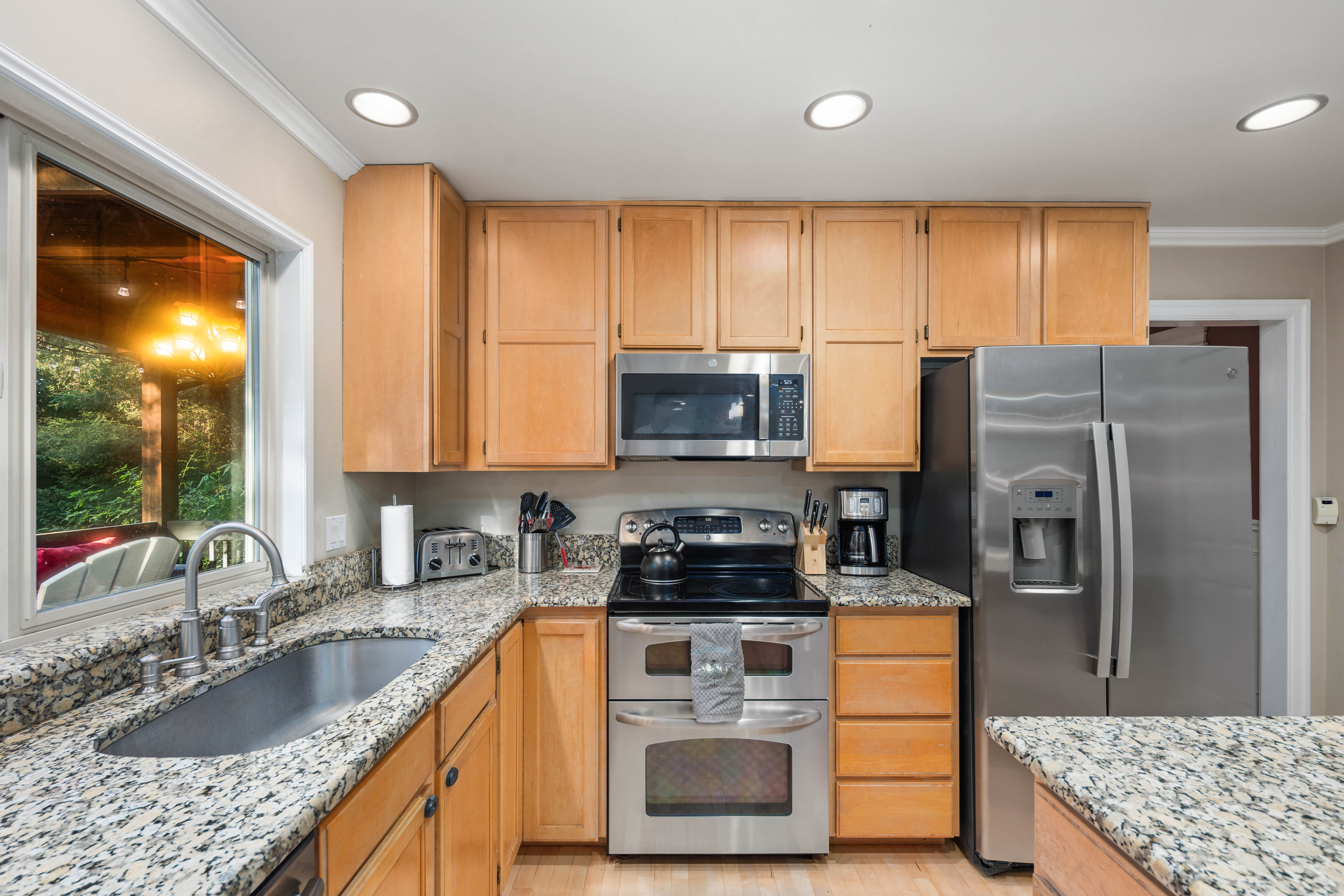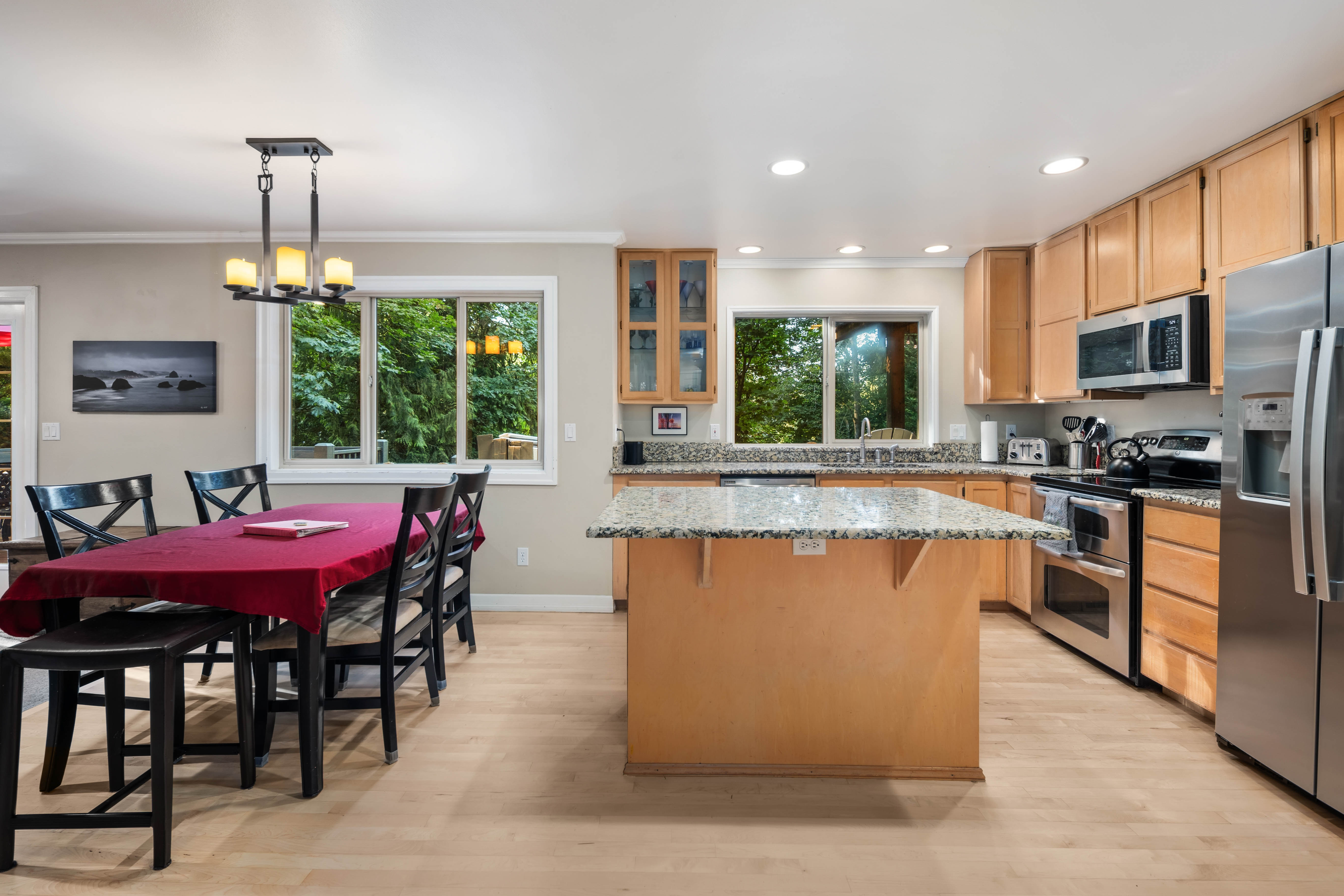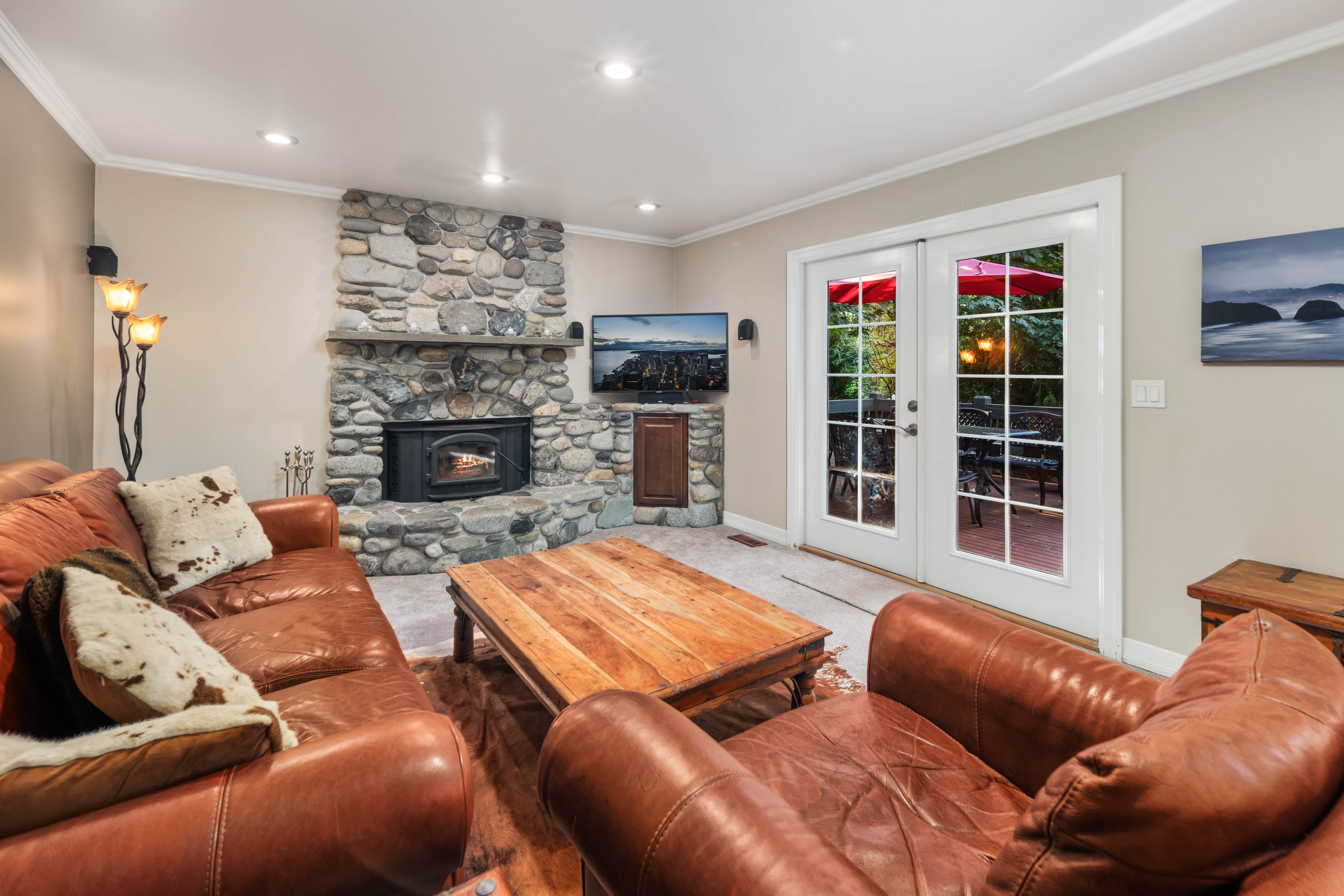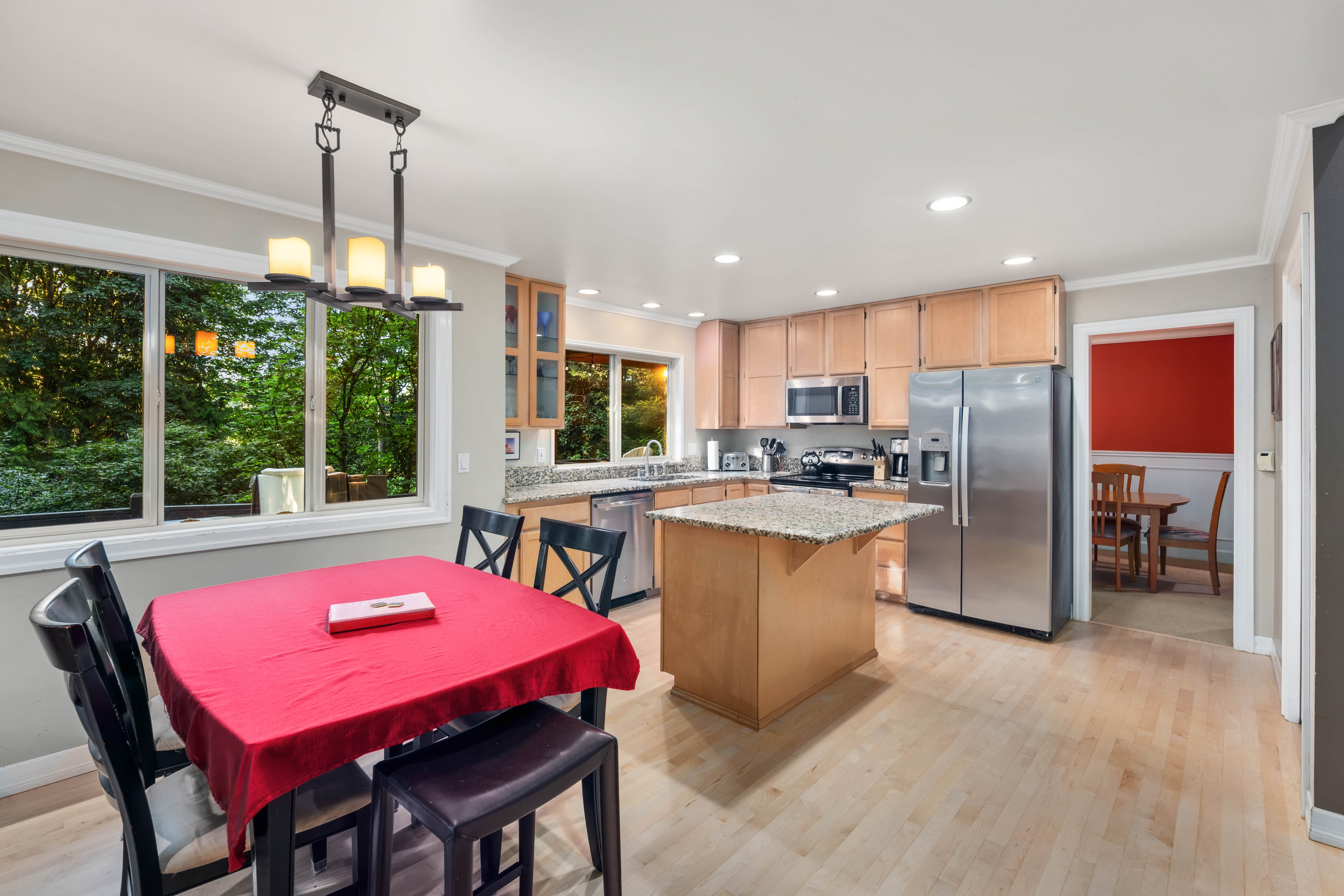 Welcome to 16502 NE 180th Place, a beautifully maintained 4 bedroom, 2.5 bath home set on an expansive 16,000+ square foot landscaped lot in the heart of Woodinville wine country. Surrounded by natural beauty, the property offers Lake Leota views, mature landscaping, berry patches, and apple trees, creating a peaceful retreat just minutes from shops, dining, wineries, parks, and everyday conveniences. Designed for comfortable living and easy entertaining, the home features a seamless flow between the kitchen, dining, and living areas. The open kitchen offers generous cabinetry, a brand new stove, and a layout that keeps the cook connected to guests. Natural light fills the home, highlighting warm finishes and inviting spaces throughout. Multiple living areas provide flexibility for any occasion. A bright formal living room welcomes guests, while a relaxed gathering room with a cozy fireplace creates a comfortable space for everyday living. Upstairs, a spacious bonus room is ideal for gaming, sports viewing, or a media lounge. Outdoor living includes a beautiful deck, outdoor fireplace, and saltwater hot tub, perfect for relaxing or entertaining. The property also offers a home office, three car garage, and access to highly regarded Northshore schools. Previously operated as a successful vacation rental, the home offers both lifestyle appeal and income potential in one of Woodinville’s most desirable settings.
