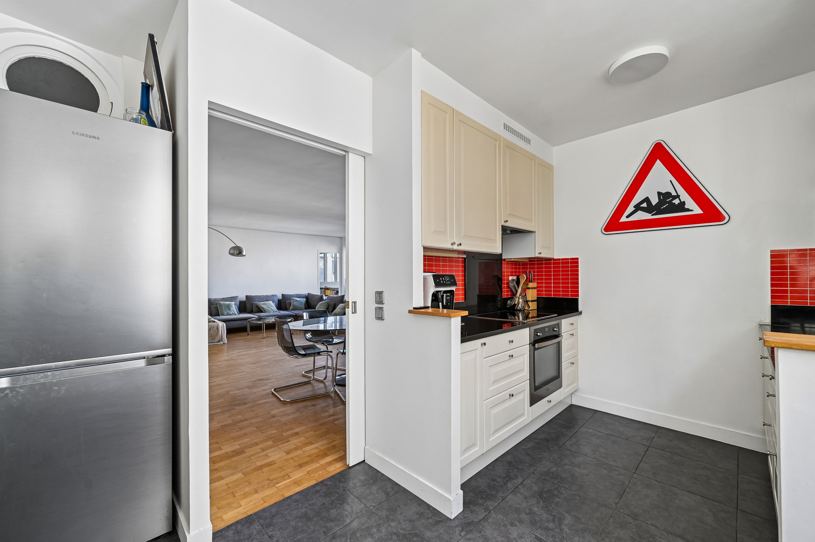 PARIS XVII – ARGENTINE / PLACE SAINT-FERDINAND Located just steps from Place Saint-Ferdinand and Avenue des Ternes, in a sought-after neighborhood known for its quality of life, shops, and restaurants, this 112 m² apartment occupies the 6th floor of a well-maintained building from the 1970s, with elevator access. Enjoying absolute calm, the apartment faces entirely onto a courtyard, offering a peaceful environment in the heart of the city. Its large double-glazed windows provide generous volumes and a pleasant sense of space. The current layout features a spacious reception area and a separate kitchen, which could easily be reconfigured according to personal preferences. A small balcony extends the living area, providing a discreet and charming outdoor space. The sleeping area includes two large bedrooms, including a master suite with a shower room and dressing area, offering comfort and privacy. The apartment’s layout also allows for the creation of a third bedroom, providing excellent potential for a family or a home office. Located close to public transport, neighborhood shops, and schools, this property is particularly appealing for its rare tranquility, generous volumes, and potential for adaptation. A comfortable and functional apartment, ideal as a primary residence, in the heart of a lively and highly regarded area of western Paris.