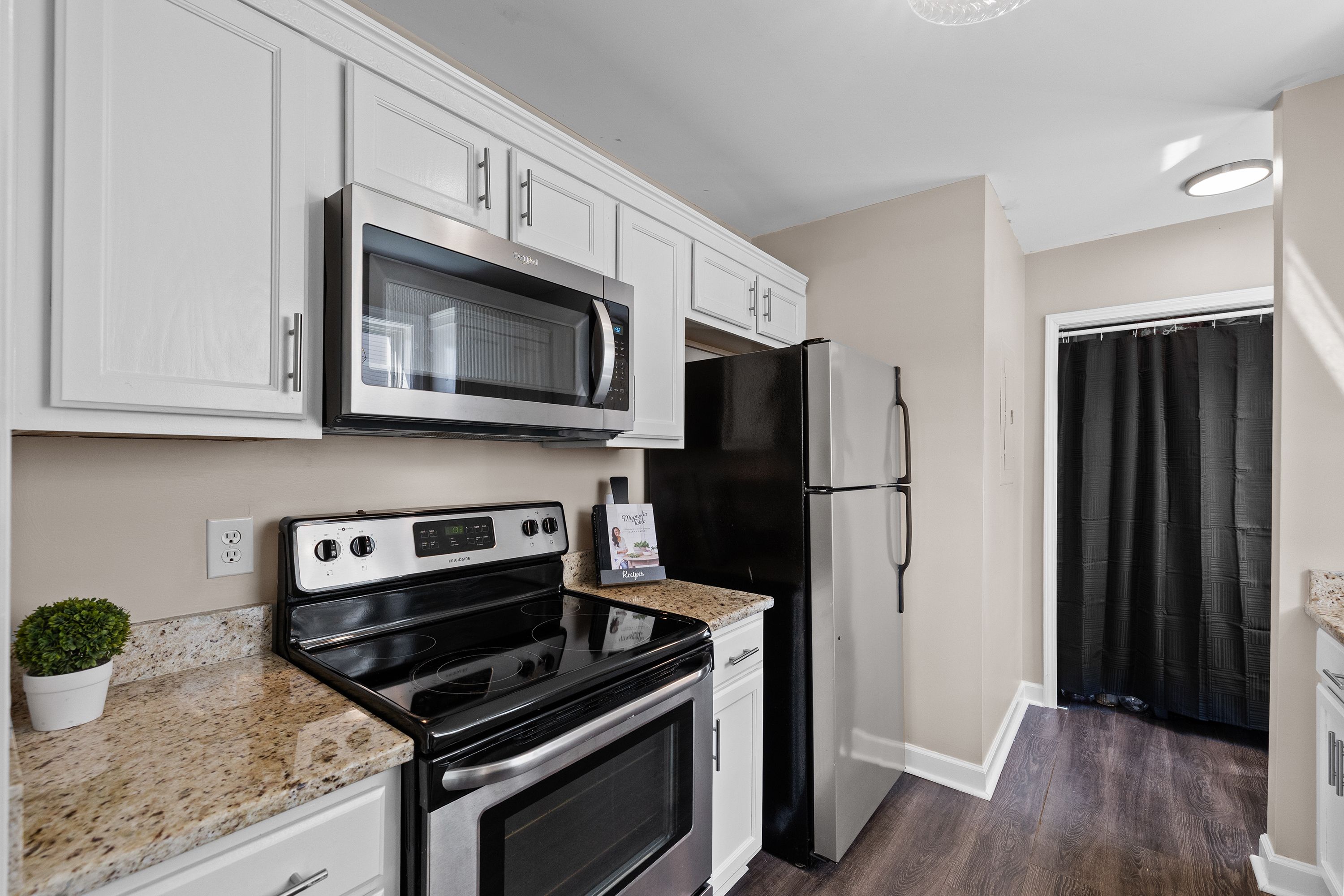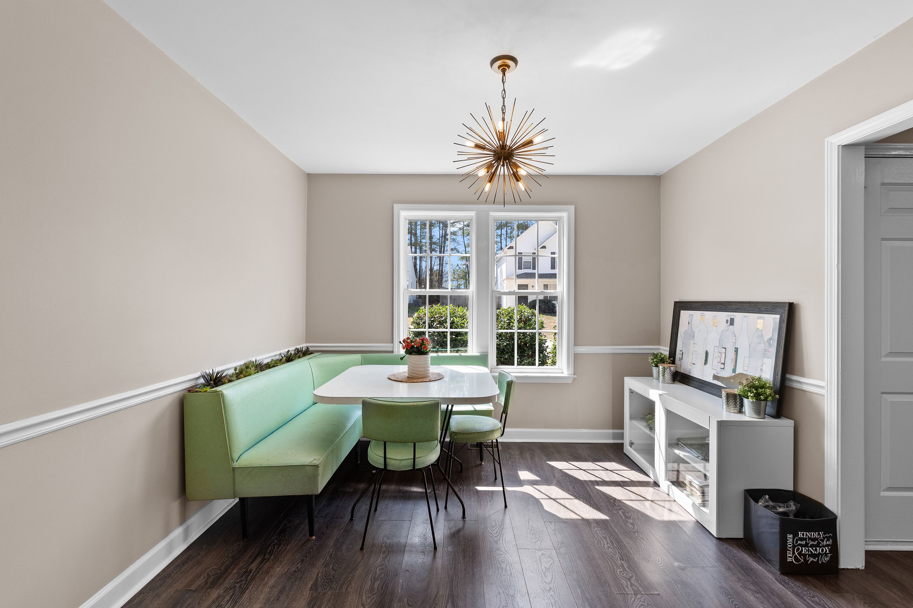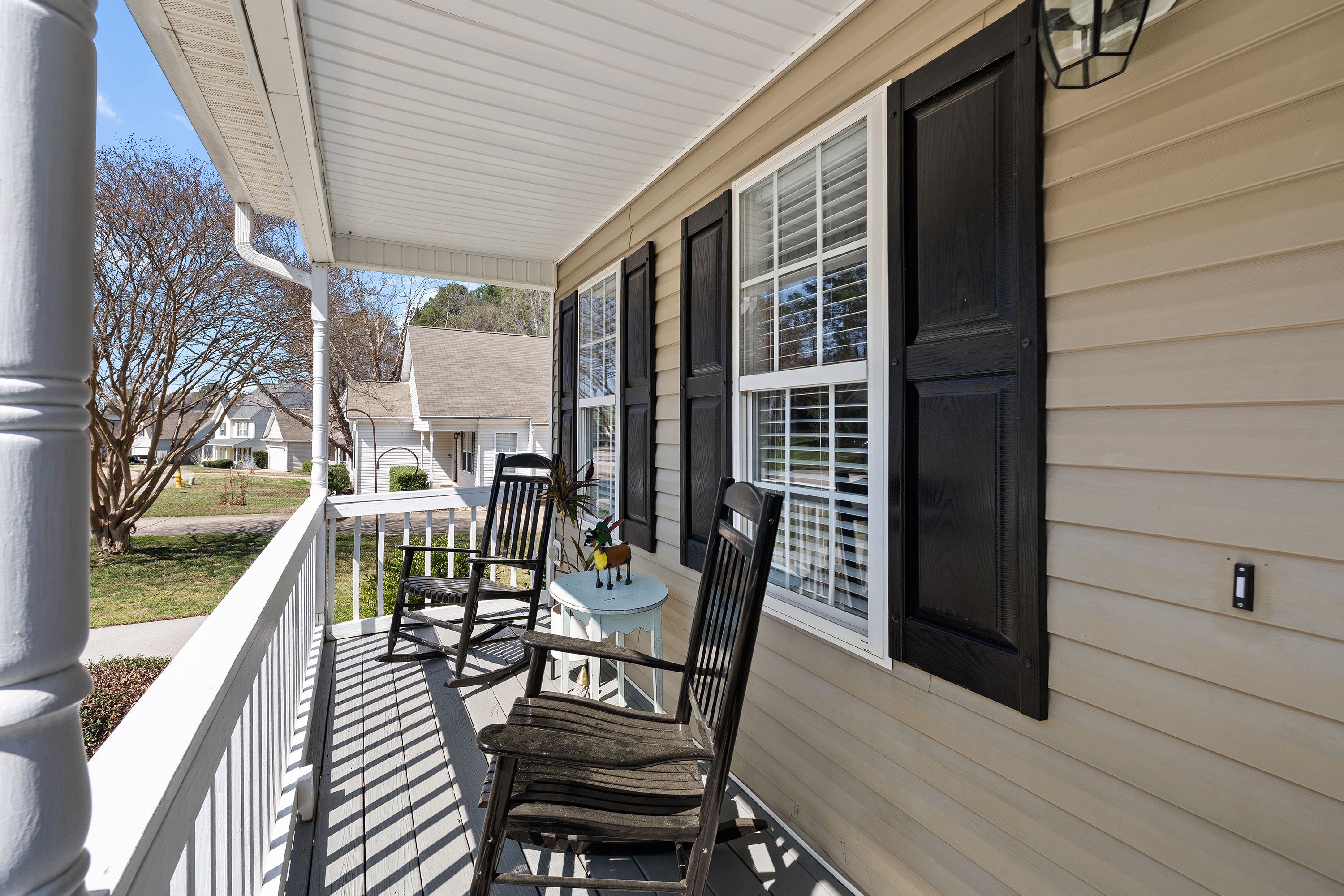 Welcome to this beautifully maintained 3-bedroom, 2-bath ranch offering a comfortable, low-maintenance living—perfect for first-time buyers, downsizers, or anyone seeking simplicity without sacrificing style.The light-filled living room features a soaring vaulted ceiling and a cozy fireplace, creating an open and inviting space. The kitchen includes granite countertops, white cabinetry, stainless steel appliances, and modern lighting, making it both functional and stylish.The bright dining area is filled with natural light, ideal for everyday living and casual gatherings. Step outside to enjoy a private wooded backyard, a side patio perfect for entertaining, and a charming rocking chair front porch for relaxing mornings or evenings.Offering a blend of style, comfort and a prime North Raleigh setting, this move-in ready home stands out as a true must see.
