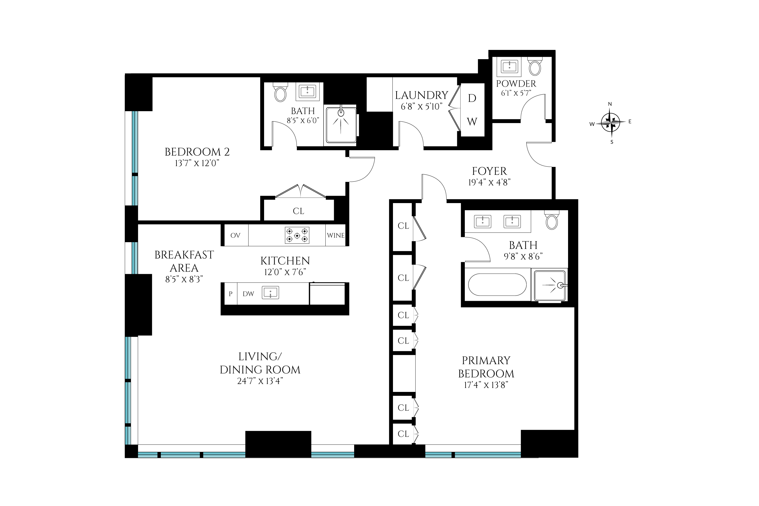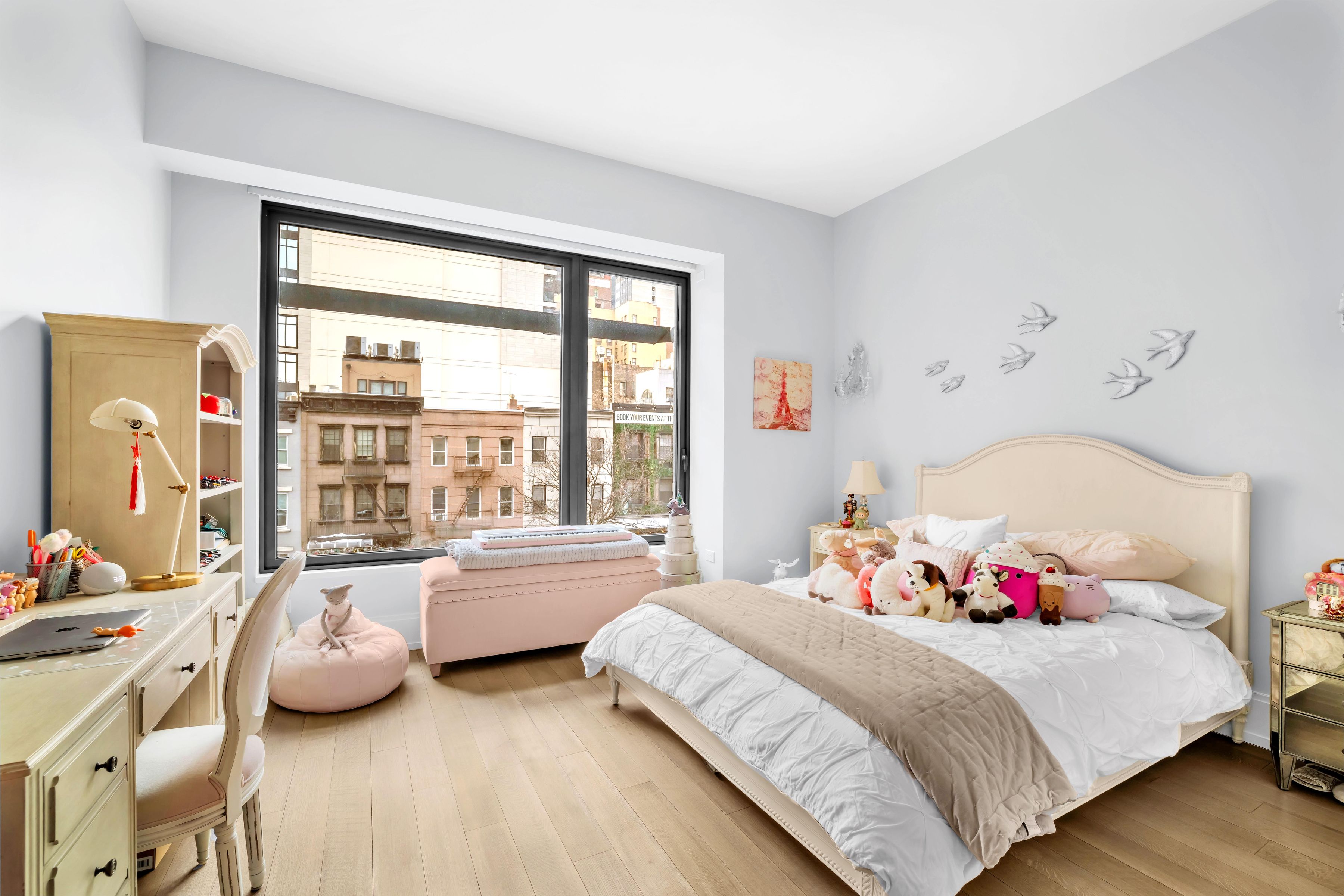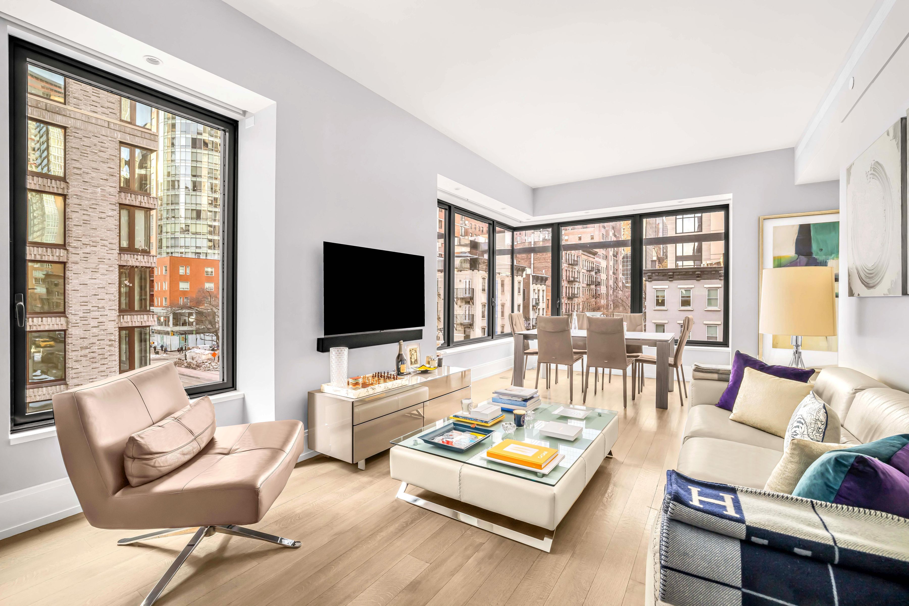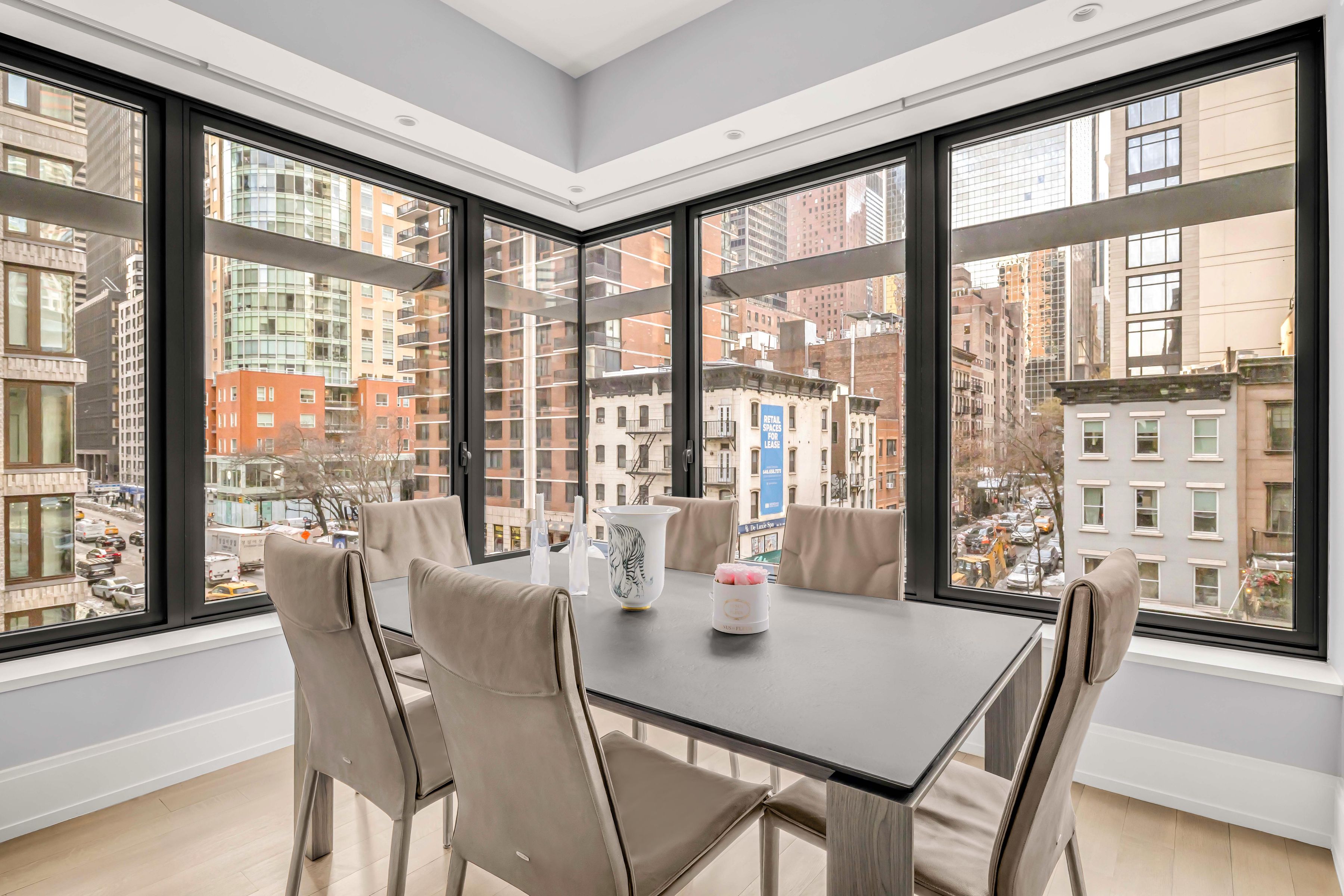 This stunning 1,564 +/- square-foot corner residence at 301 East 50th Street offers an exceptional two-bedroom, two-and-a-half-bath layout with beautifully proportioned interiors and refined finishes throughout. The home features 10-foot ceilings, five-inch wide-plank solid oak floors, motorized shades, multi-zone heating and cooling, eight-foot solid-core doors with Nanz hardware, and city-quiet low-e glass windows. A stately foyer leads into a sun-filled corner living and dining area with open city views, creating a serene and sophisticated setting for everyday living and entertaining. The COOKFOX-designed kitchen is equipped with professional-grade Gaggenau appliances, a U-Line wine refrigerator, a Dornbracht faucet with filtered instant hot and cold water, Caesarstone countertops, and a Bianco Dolomiti marble backsplash. The luxurious primary suite features an en-suite bath clad in Bianco Dolomiti marble, Waterworks fixtures, Calacatta Gold bow-tie mosaic flooring, and custom lighting by COOKFOX. The additional bedroom is spacious and bright, complemented by a second full bath finished with Waterworks fixtures and white marble or limestone mosaic flooring. A dedicated laundry room featuring a full-size, side-by-side washer and dryer with ample closet space for storage complete this thoughtfully designed home 301 East 50th Street is an elegant 29-story limestone condominium inspired by French Modernism and designed by renowned architects COOKFOX. The building offers a full suite of premium amenities, including a 24-hour doorman and concierge, a state-of-the-art fitness center with soaring ceilings, an exquisite spa with a private treatment room, two steam rooms, a sauna, a tea lounge, and a tranquil terrace and yoga deck. Additional conveniences include a central laundry room, cold storage, bike storage, and a pet grooming room. The building also incorporates advanced air filtration and storm-ready features, ensuring comfort and peace of mind. Perfectly situated between the quiet residential enclaves of Sutton Place and Beekman Place, the building is moments from the natural beauty of the East River as well as the cultural and commercial heartbeat of Midtown Manhattan. Residents enjoy proximity to the United Nations, MoMA, Rockefeller Center, high-end shopping on Fifth and Madison Avenues, world-class dining, and convenient access to major subway lines including the E, M, 6, 4, 5, N, R, and W trains. The East River Greenway is just steps away, offering a scenic waterfront path for jogging, cycling, or leisurely strolls. Timeless architecture, luxurious interiors, thoughtful amenities, and an unbeatable location come together to create an unparalleled living experience at 301 East 50th Street.