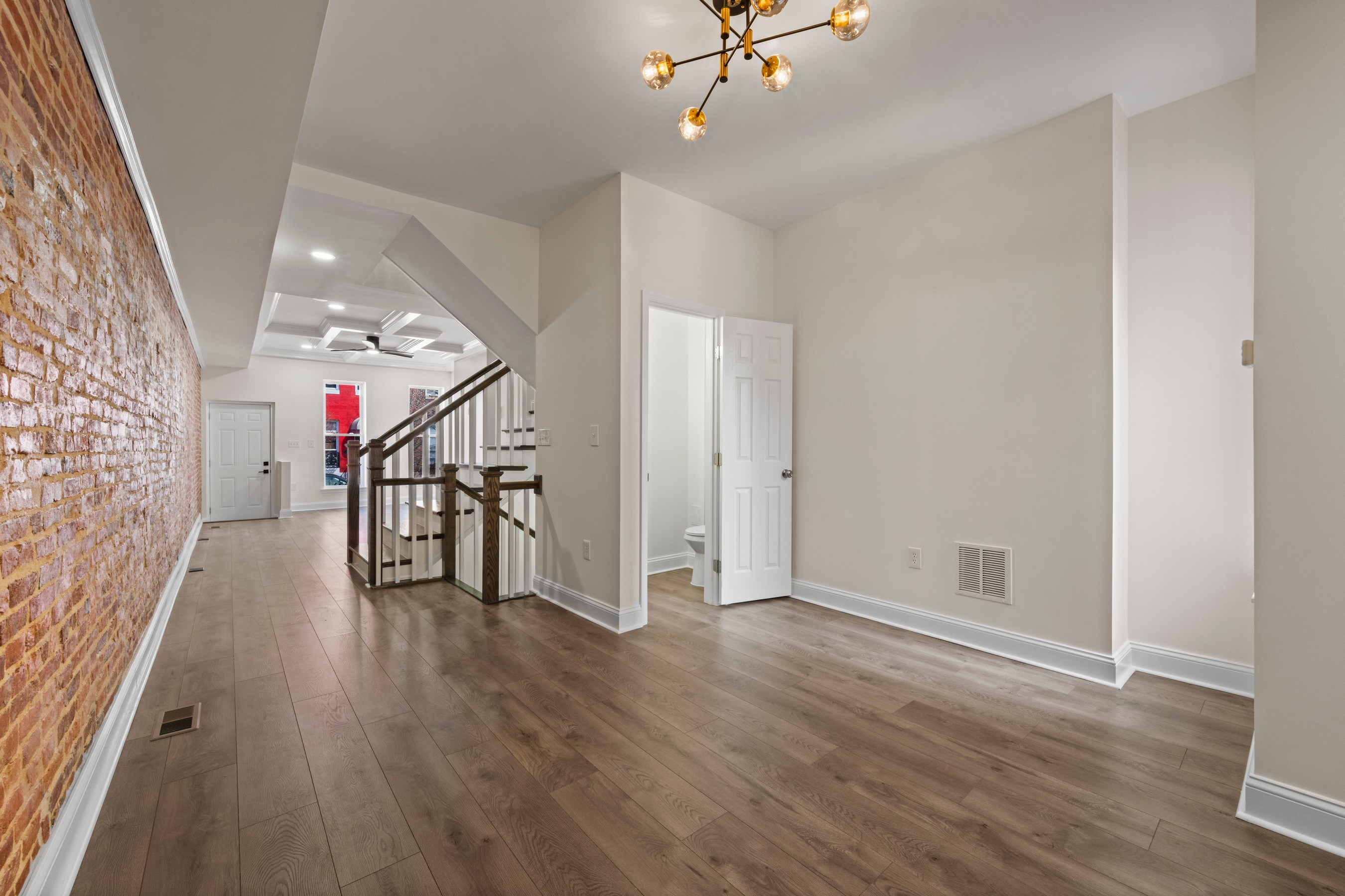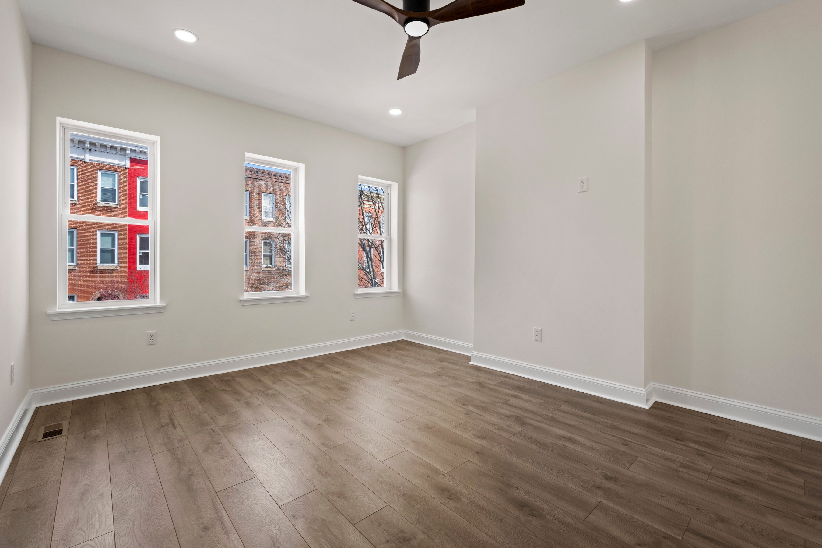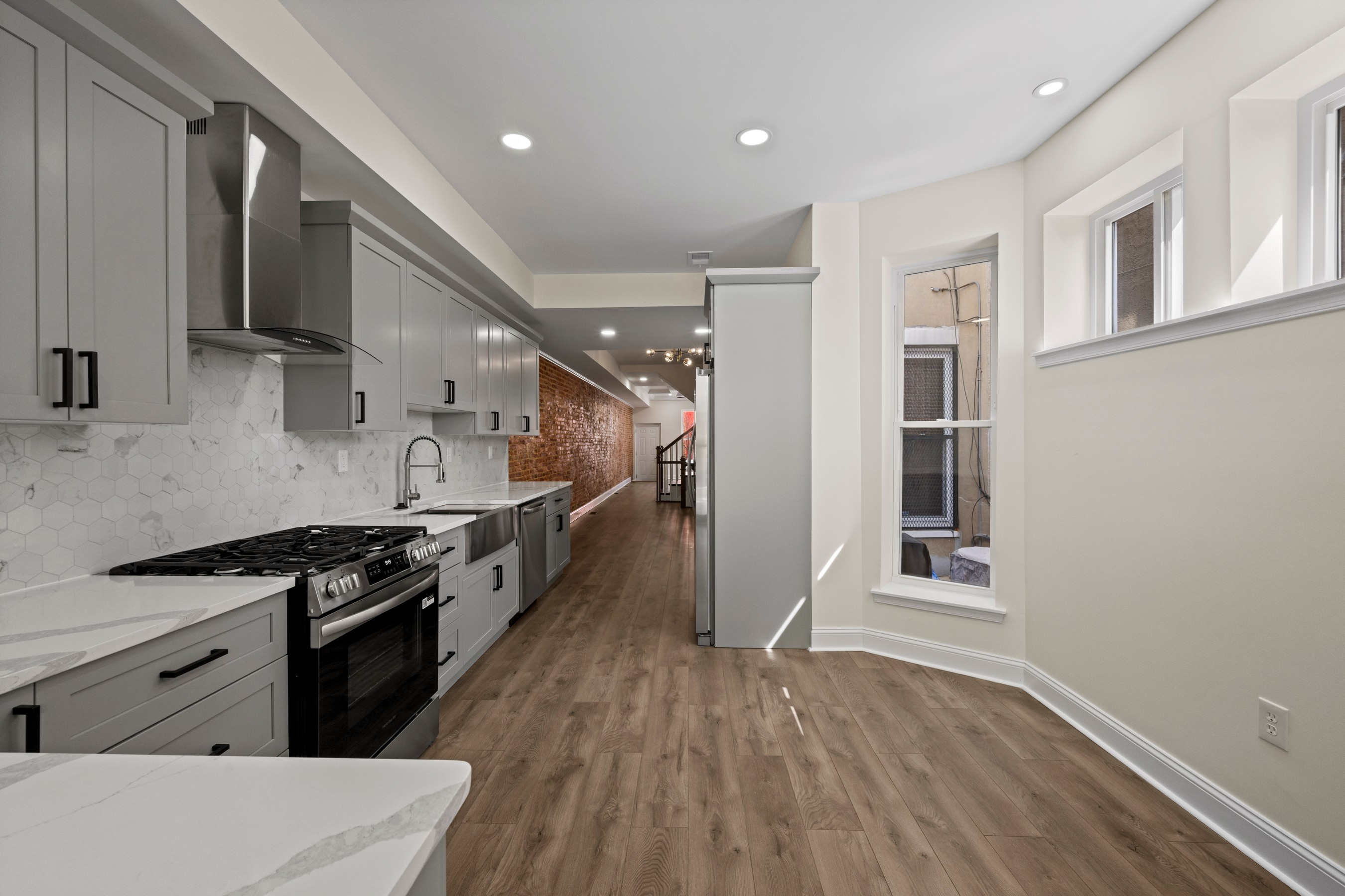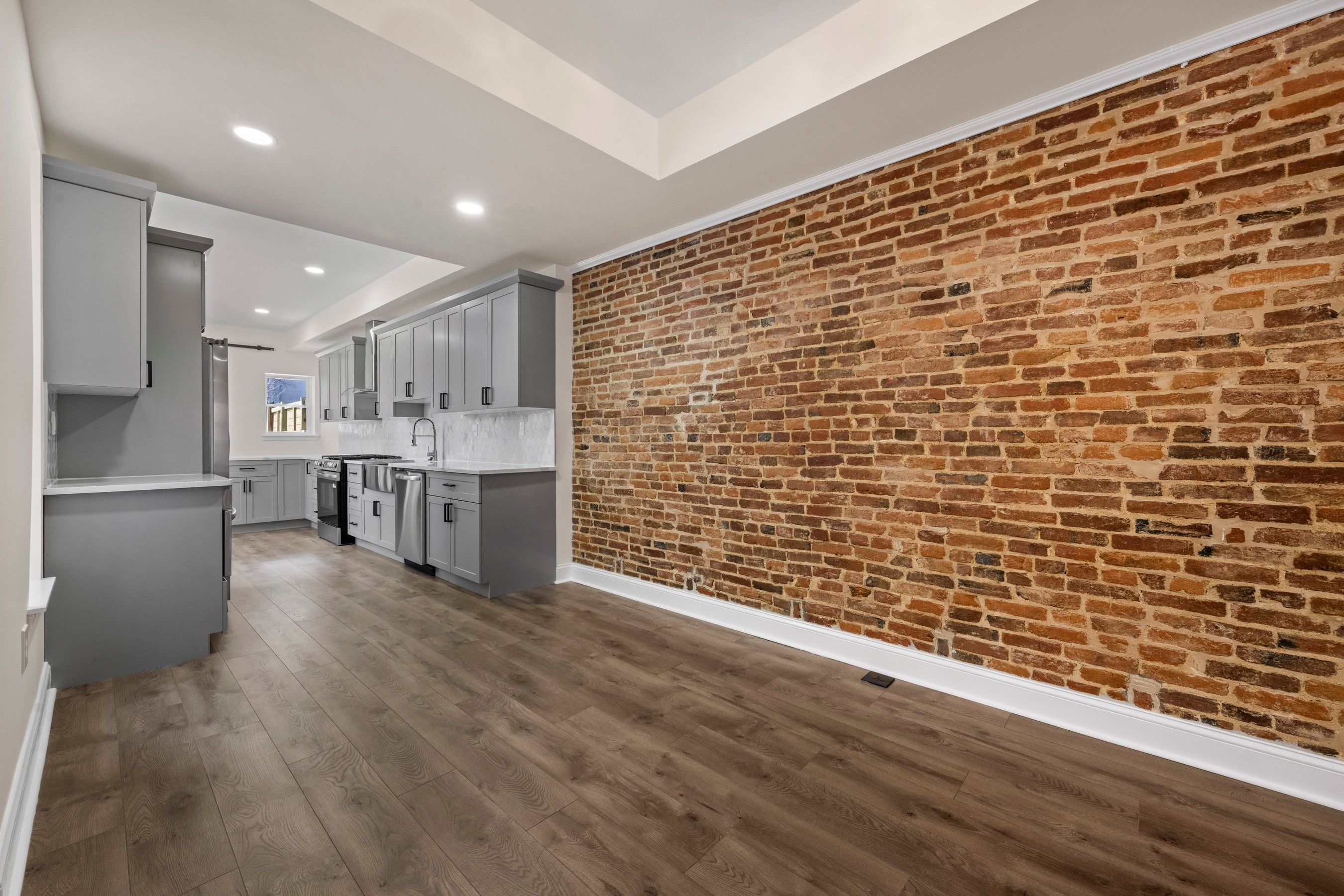 Welcome to 1940 Druid Hill Avenue, a completely reimagined end-of-group townhome in the heart of Druid Heights, where classic Baltimore character meets exceptional modern design. Taken down to the four original brick walls and rebuilt with thoughtful craftsmanship throughout, every element of this four-bedroom, three full and one half bath residence is entirely new. The classic brick façade and iconic Baltimore marble steps provide timeless curb appeal, while inside, luxury vinyl flooring flows throughout bright, beautifully finished living spaces. The main level features an inviting living room with a stylish fireplace that opens seamlessly to the dining area and a stunning state-of-the-art kitchen appointed with quartz countertops and top-tier appliances, perfect for everyday living and entertaining. A convenient main-level laundry room with washer and dryer hookups adds everyday functionality. The upper level offers three spacious bedrooms and two sleek full baths, including the primary suite with an en suite bath. The finished lower level includes a fourth bedroom, an additional full bath, and generous storage space. With brand new systems and finishes throughout, including the roof and HVAC, this home offers a rare opportunity to enjoy modern comfort within one of Baltimore's most historic and culturally rich neighborhoods.