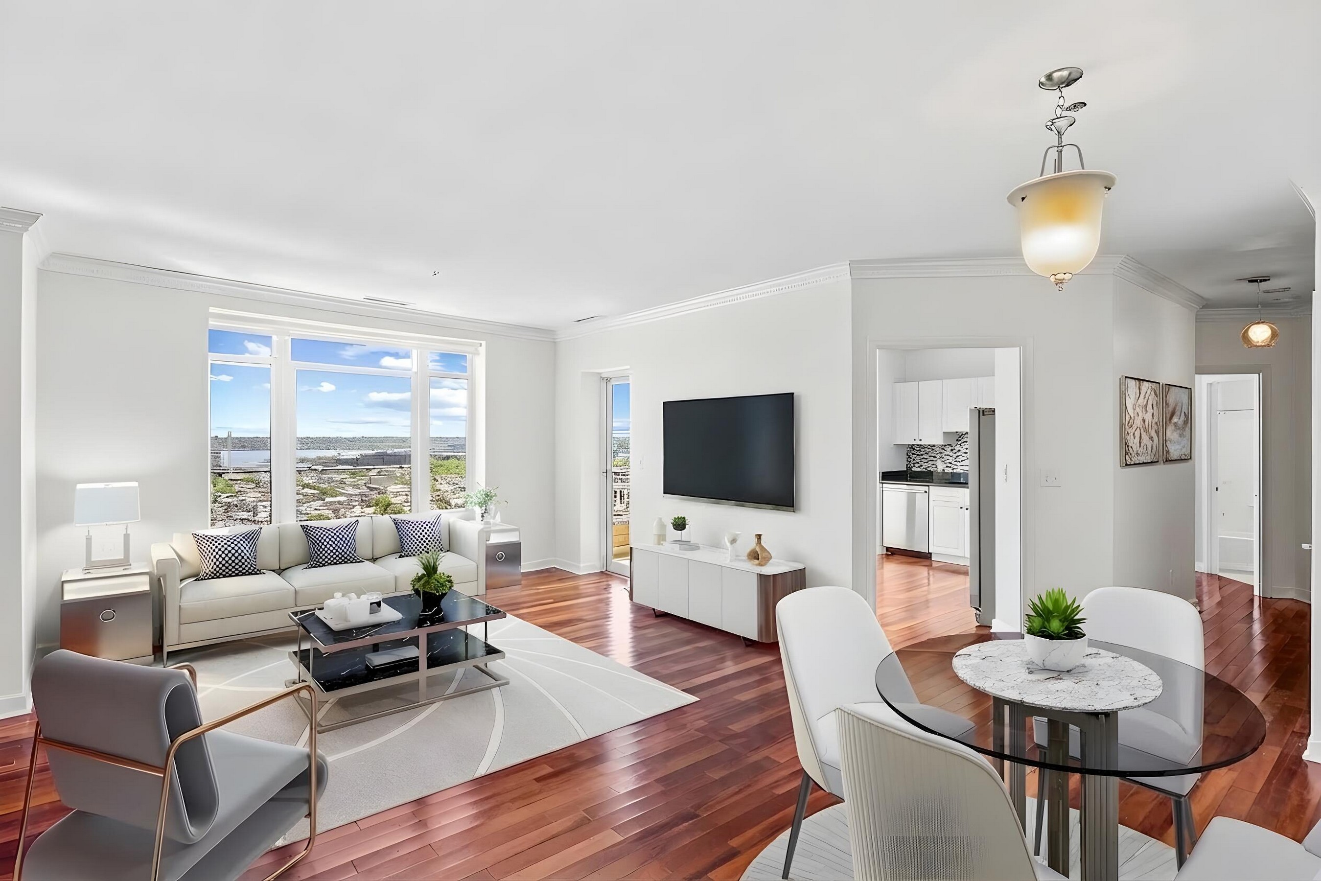 Perched high above the city, this beautifully designed upper-floor one-bedroom, one-and-a-half-bath, 1,138 square foot condominium offers a front row seat to the skyline and waterfront of Baltimore. Watch boats glide through the Inner Harbor, enjoy fireworks, or take in sweeping sunset views, all from the comfort of home. Inside, you will find an open, light-filled layout with beautiful hardwood floors and a seamless flow from the living area to the dining space. The spacious living and dining area is ideal for entertaining. The updated eat-in kitchen features granite countertops, stainless steel appliances, ample cabinetry, and a stylish tile backsplash. A powder room off the main living space provides added convenience for guests. The private suite includes a large walk-in closet and a spa-inspired bath with a soaking tub and a separate walk-in shower. Step onto the balcony and enjoy stunning year-round views of Federal Hill, Locust Point, and the Inner Harbor. Updates include a new wall oven, microwave, and cooktop. Located in HarborView, a full-service waterfront community offering a 24-hour concierge, an indoor pool with a hot tub, a fully equipped fitness center with sauna and steam rooms, resident lounges, a conference room, a business center, and an on-site gourmet deli. Residents enjoy beautifully landscaped grounds, a gated parking garage, and direct access to the Baltimore Promenade, perfect for morning walks or hopping on a water taxi. Ideally located near shops, restaurants, and nightlife, with convenient access to Interstate 95, Baltimore Washington International Thurgood Marshall Airport, Pennsylvania Station, the MARC Train, and Interstate 83. Schedule your tour today and experience the HarborView lifestyle.