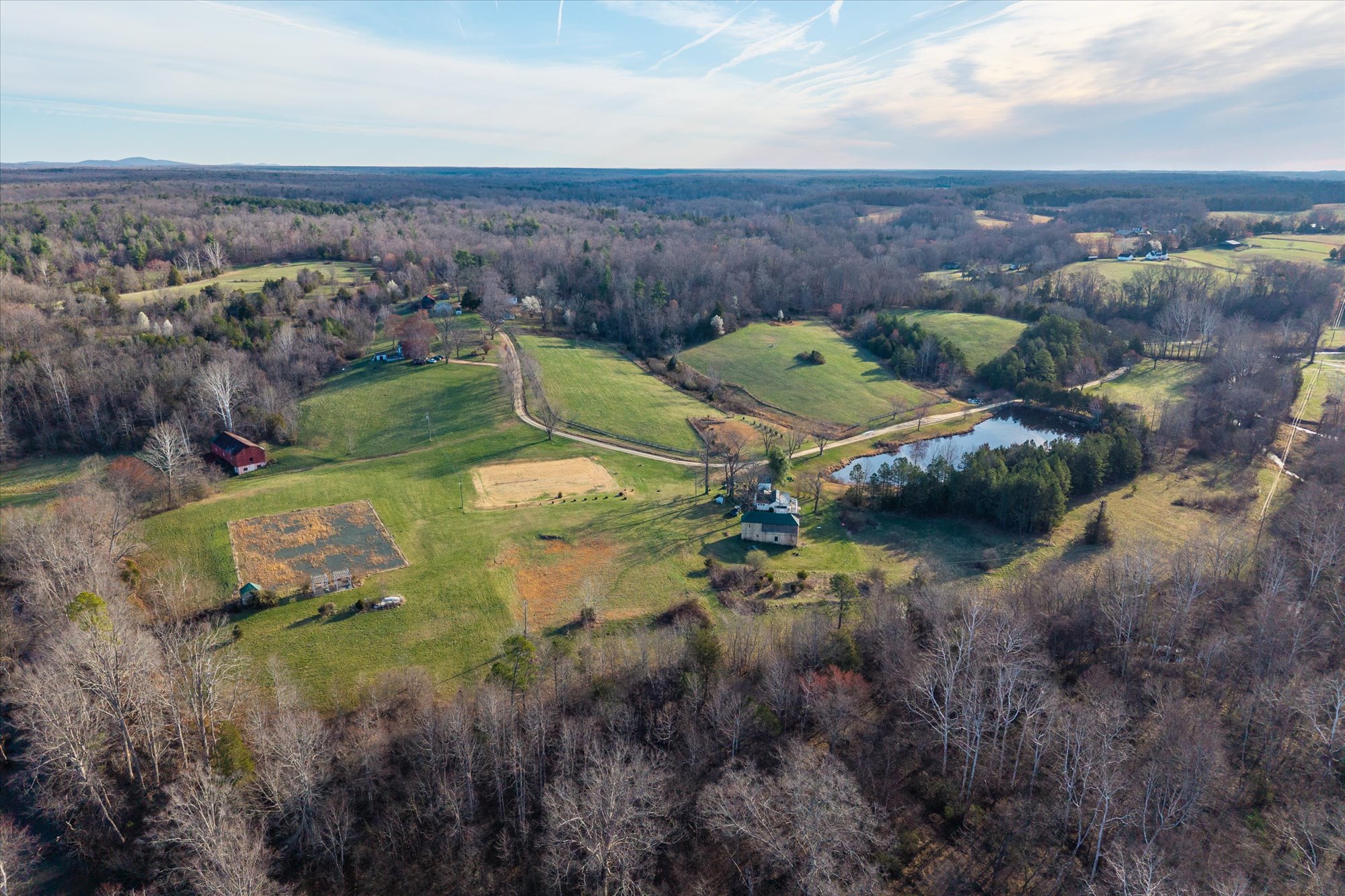 Rare opportunity to acquire approximately 123 acres spanning both Albemarle and Fluvanna Counties in the desirable Keswick area, where large tracts of developable land are increasingly rare. The property consists of 56 acres in Albemarle and 67 acres in Fluvanna and offers significant long-term potential with up to several division rights . Four existing homes on the property currently generate rental income. The land itself is a mix of open pasture and gently rolling terrain, creating multiple attractive homesites throughout the property. A stream borders part of the Albemarle portion, while the Fluvanna side features elevated areas with potential long-range views for future homesites. A pond, established clearings, and the property's natural topography further enhance its versatility. With limited inventory of large parcels remaining in the Keswick area, this offering presents a compelling opportunity for a private estate, family compound, or thoughtfully planned high-end subdivision, all within convenient reach of Charlottesville, Keswick Hall, and the University of Virginia.