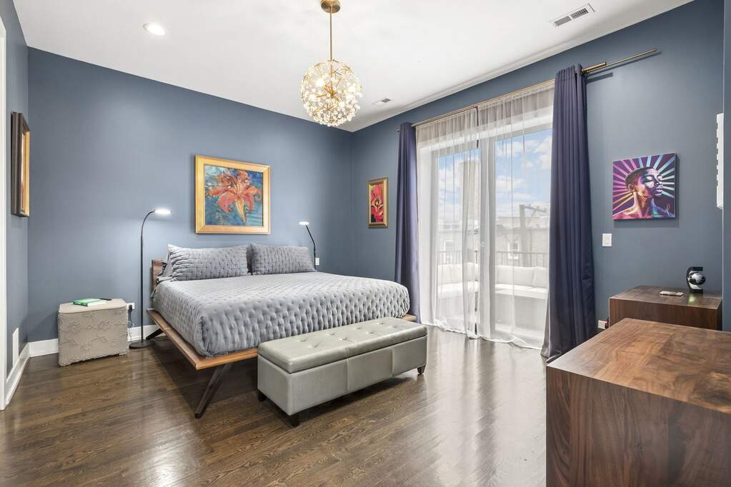 Meticulously maintained and perfectly positioned, this rare 3BD/2BA simplex penthouse in the heart of Andersonville offers the ultimate blend of modern luxury and expansive private outdoor living. Built in 2018, this all-brick residence retains its "like-new" luster with high-end finishes and an intelligent, open-concept layout. The light-filled interior features a stunning living area anchored by a gas fireplace, flowing into a chef's kitchen with premium Thermador appliances and a dedicated dining space. Step out onto the wide front balcony to enjoy morning coffee overlooking a quiet, tree-lined one-way street. The primary suite is a true retreat, featuring a private back balcony, a large walk-in closet, and a spa-inspired ensuite bath with heated floors and steam shower. Two additional generous bedrooms are located on the main level. Ascend to the versatile upper-level bonus space-ideal for a high-performance home office-which opens to a massive private rooftop deck with breathtaking, unobstructed views of the Chicago skyline. This location is a commuter's dream, offering effortless access to both the Red Line and the UP-N Metra, placing the entire city within reach. Includes 1 garage space and storage. This is a pristine, move-in-ready asset in one of Chicago's most coveted walk-to-everything pockets.