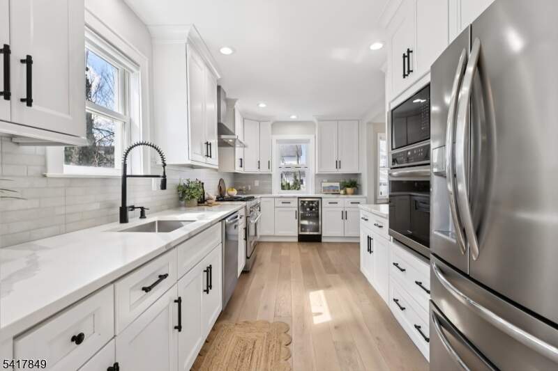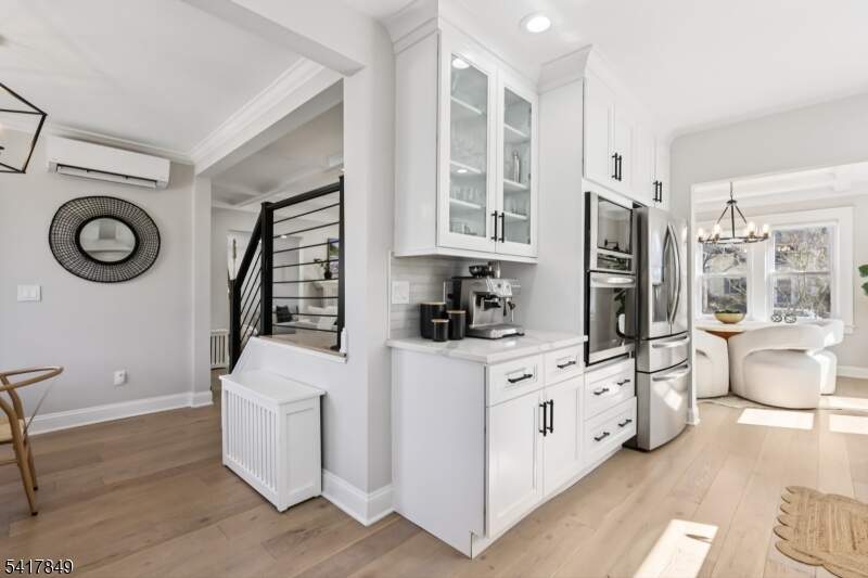Beautifully updated and meticulously maintained 4BR/4.1BA Colonial located just two blocks from Wilson Elementary. This move-in ready home blends classic charm with modern upgrades, featuring wide-plank white oak engineered floors, custom millwork, smart lighting, and an inviting den with wood-burning fireplace. Stunning white kitchen with quartz countertops, stainless appliances, wine fridge, and breakfast nook with built-in seating and storage. Flexible layout with full bath on first floor. Three bedrooms on the second level including an en-suite. And, a private third-floor suite with walk-in closet and spa-like bath with radiant heated floors.Exceptional outdoor living space includes a newly installed (2024) entertainer's patio complete with built-in grill, fireplace, outdoor TV, and kitchen pass-through window creating a seamless indoor-outdoor bar experience. Additional updates include finished basement with powder room and laundry, newer roof, siding, paver walkway with Belgian block edging, updated electric, ductless AC on first floor and central air on upper levels, plus recently replaced boiler and hot water heater. A rare opportunity to enjoy updated living, exceptional outdoor entertaining space, and the convenience of Westfield's top schools, vibrant downtown, and NYC commuter access.