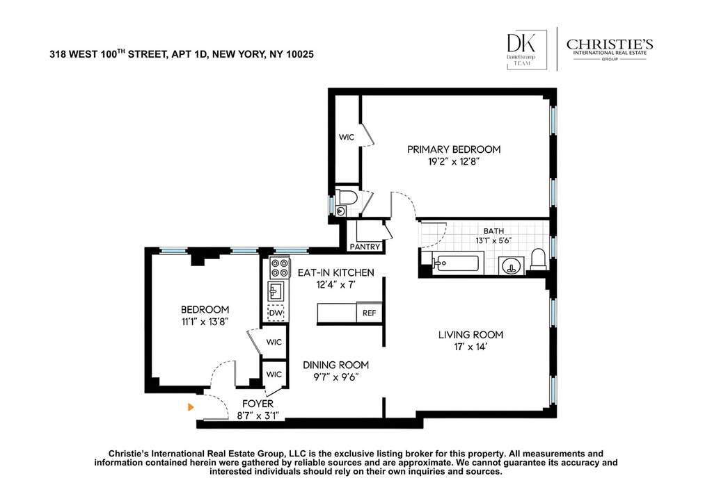 <p>Welcome to <strong>318 Wedzt 100th Dztreet, Apt. 1D</strong>, a thoughtfully renovated and generously sized two-bedroom home in the heart of the Upper West Side. Spanning <strong>1,084 square feet</strong>, this residence blends timeless pre-war character with the comforts of modern living.</p> <p> As you enter, a welcoming foyer flows naturally into a dedicated dining area-an ideal layout for hosting friends or enjoying a quiet dinner at home. The apartment immediately showcases its classic architecture with <strong>10'6" ceilings, graceful archways, and beautifully preserved cove moldings</strong>. </p> <p> The <strong>windowed kitchen</strong> is both stylish and functional, designed with custom cabinetry, sleek <strong>white quartz countertops</strong>, and a full suite of appliances including a <strong>Blomberg refrigerator and Bosch oven, microwave, and dishwasher</strong>. A substantial <strong>walk-in pantry</strong> provides exceptional storage-something rarely found in apartments of this kind.</p> <p> Even the entry door has been thoughtfully restored, stripped back to reveal its original metal detailing-one of many small touches that give the home its unique personality.</p> <p> Both bedrooms are comfortably proportioned and provide a quiet escape from the city. Storage has been carefully considered throughout the apartment, with <strong>custom Elfa systems installed in every closet</strong> for maximum organization.</p> <p> Positioned on a charming <strong>tree-lined block</strong>, this home sits quietly tucked away toward the rear of the lobby, offering a rare sense of privacy and calm. The location places you moments from <strong>Riverside Park's dog runs, baseball fields, and pickleball courts</strong>, along with neighborhood favorites like <strong>Serafina and Smoke Jazz & Supper Club</strong>. Daily essentials are equally convenient with <strong>Whole Foods, H Mart, and the local farmer's market</strong> all nearby. Transportation is simple with the <strong>1 train just a few short blocks away</strong>.</p> <p> Residents of this well-maintained <strong>condominium</strong> enjoy an elegant lobby highlighted by a beautiful marble staircase, <strong>low monthly carrying costs, strong financials, and a pet-friendly environment</strong>. Additional building amenities include a <strong>live-in superintendent, central laundry room, bike storage, and private storage in the basement</strong>.</p> <p> Apt. 1D offers a rare opportunity to own a <strong>spacious, beautifully updated pre-war home</strong> in one of the Upper West Side's most beloved neighborhoods.</p> <p> Note: There is an ongoing capital assessment of $401.21/Month</p>