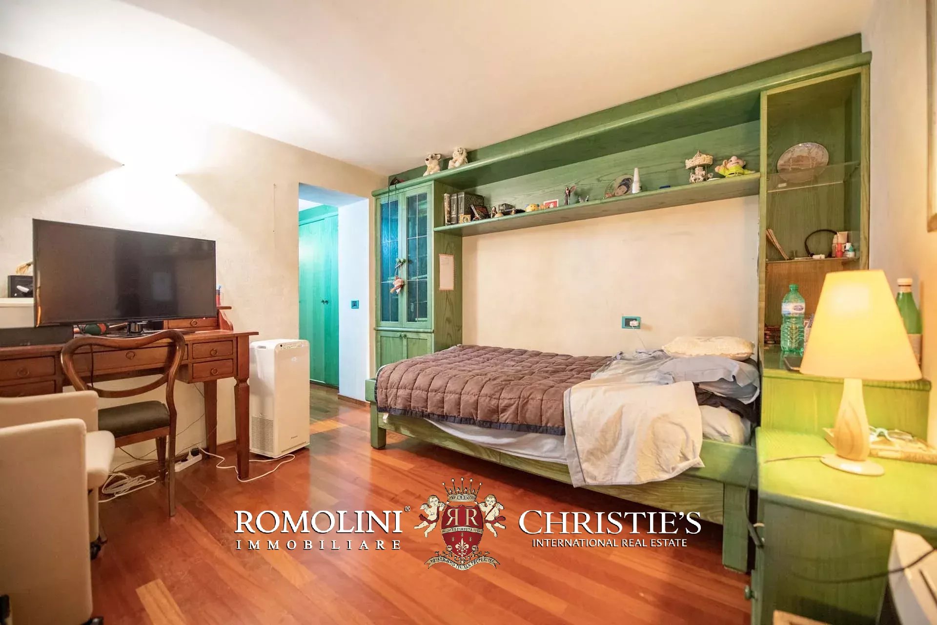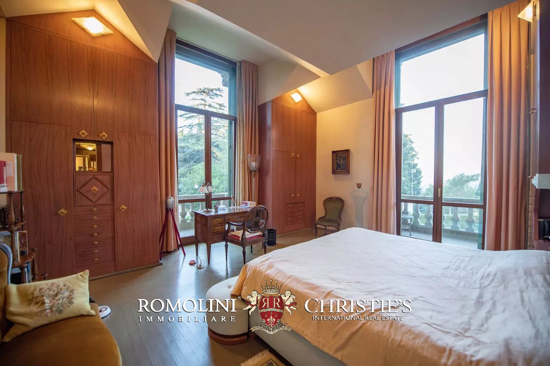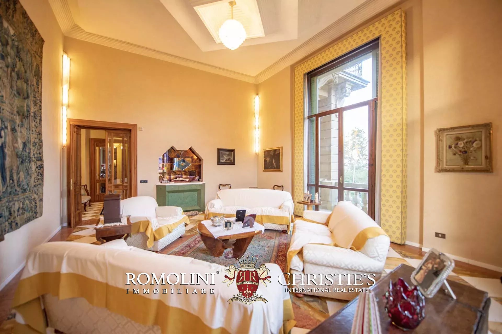 This apartment in a period villa is located in the area of Pian dei Giullari, one of the most renowned and well-known areas of Florence. The house (365 sqm) is located on the ground and basement floors of the villa and houses a total of 5 bedrooms and 4 bathrooms. Outside, the villa is surrounded by a 785-sqm of private garden and has two reserved parking spaces in the parking lot below.