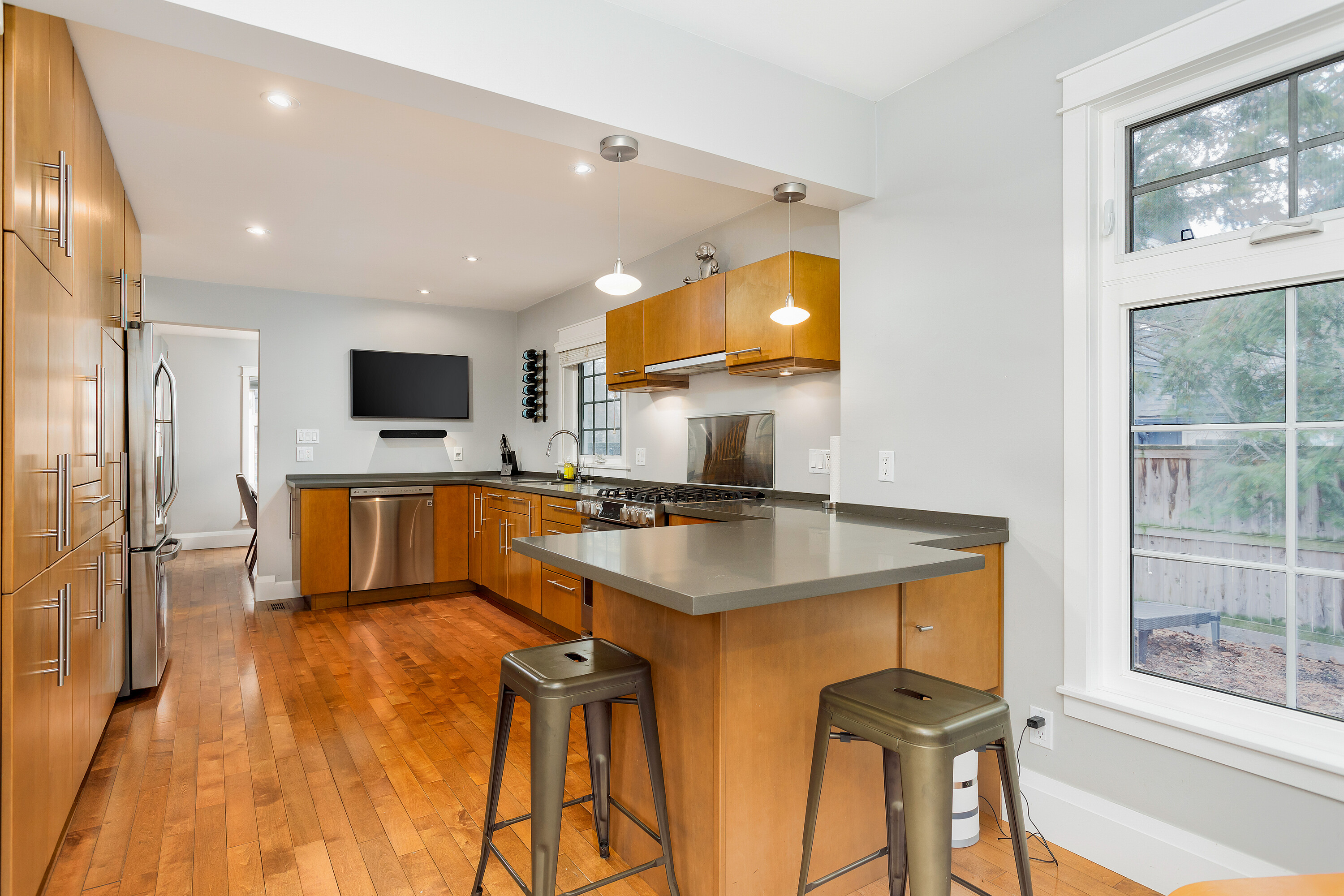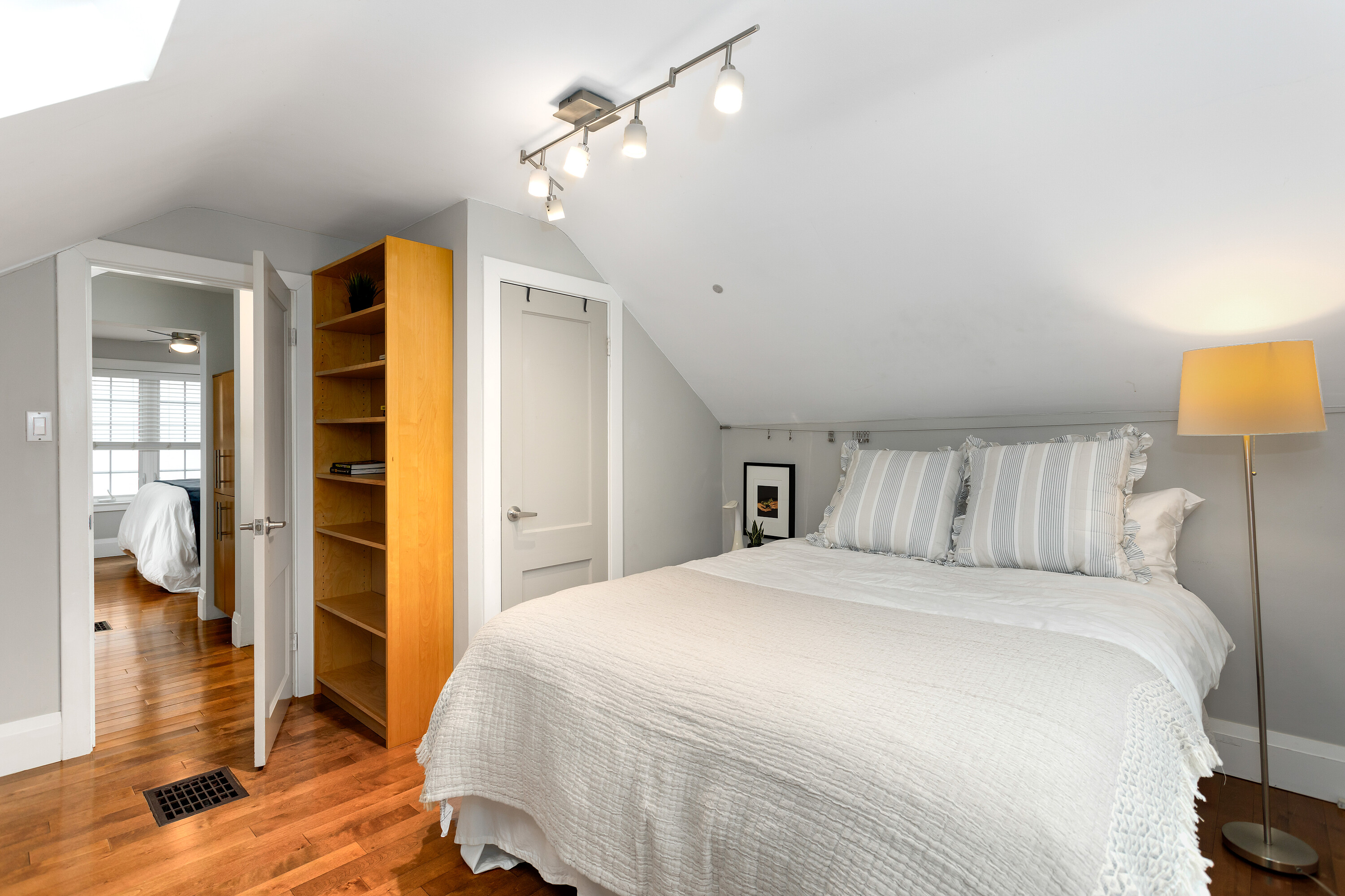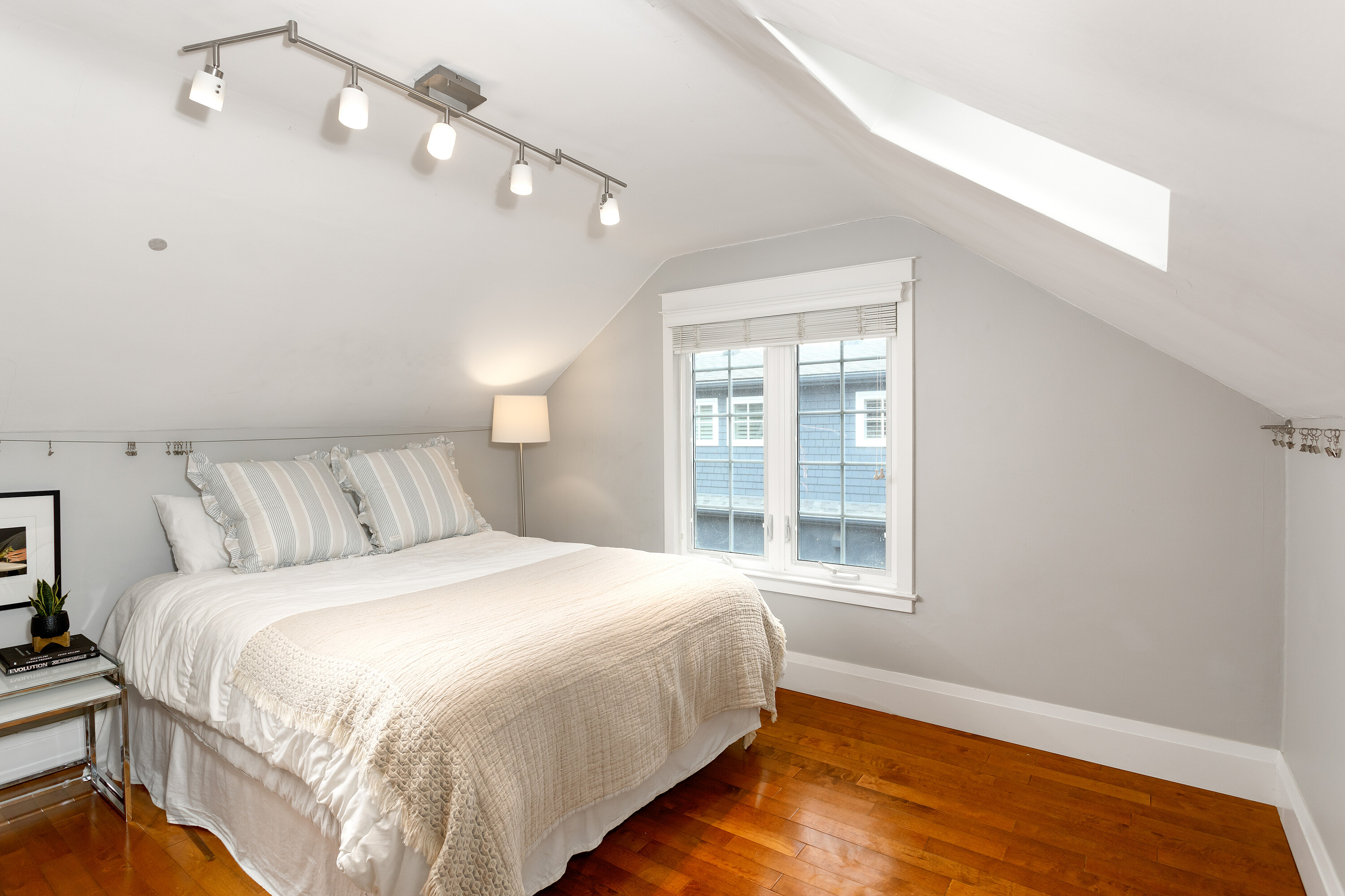 Rarely available in highly sought-after West Harbour, this turnkey home delivers a relaxed, walkable lakeside lifestyle perfect for downsizers or young professionals. The bright interior is modern and move-in ready. Neutral decor and hardwood floors flow seamlessly across the two main levels. Large south-facing windows bring an abundance of natural light. In the living room, custom built-ins flank the ethanol fireplace to add both character and practical storage, while the separate dining room is great for entertaining. The main floor den is a highly flexible space that serves perfectly as a home office or a cozy family room. The chef's kitchen offers a full pantry wall and ample counter space. The adjacent breakfast room is surrounded by large windows and has direct access to the private backyard-the ideal spot for your morning coffee. Upstairs, the primary bedroom features a charming nook with peekaboo lake views, making a lovely spot for a desk, vanity, or reading chair. A spacious second bedroom and an updated 3-piece bathroom with heated floors and towel rack complete the top floor. The finished lower level provides versatile bonus space for a home gym, recreation room, or additional workspace. Outside, the property truly shines. The backyard has undergone extensive landscaping to create a lush, private retreat. The multi-level stone patios provide multiple zones for entertaining and relaxing surrounded by low-maintenance mature perennials. An automated irrigation system and garden shed make maintenance a breeze. A subtle water feature echoes the lakeside setting with its soft, relaxing sounds. Out front, exceptional curb appeal is highlighted by the classic covered porch-the perfect spot to wind down and take in the sunset. The lifestyle here is unbeatable. Leave the car at home and walk straight down to the water, launch your paddleboard or canoe at the harbour-front Tannery Park, or take a short stroll to Oakville's best local shops and restaurants.