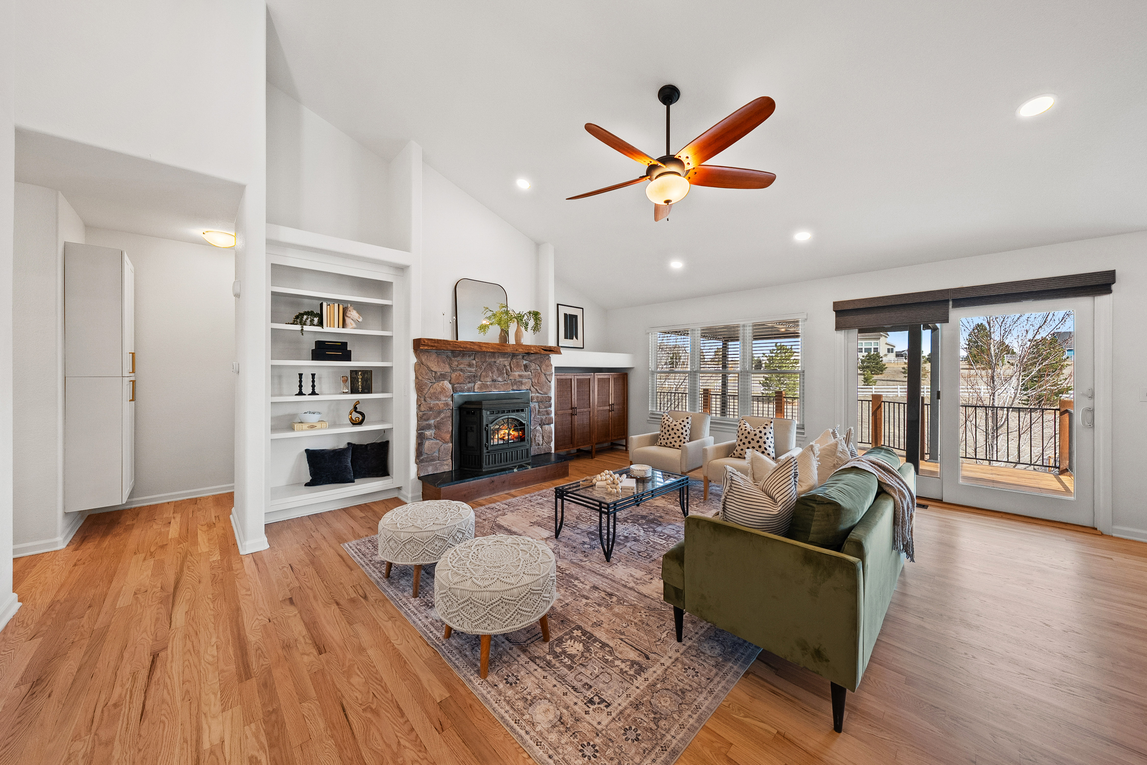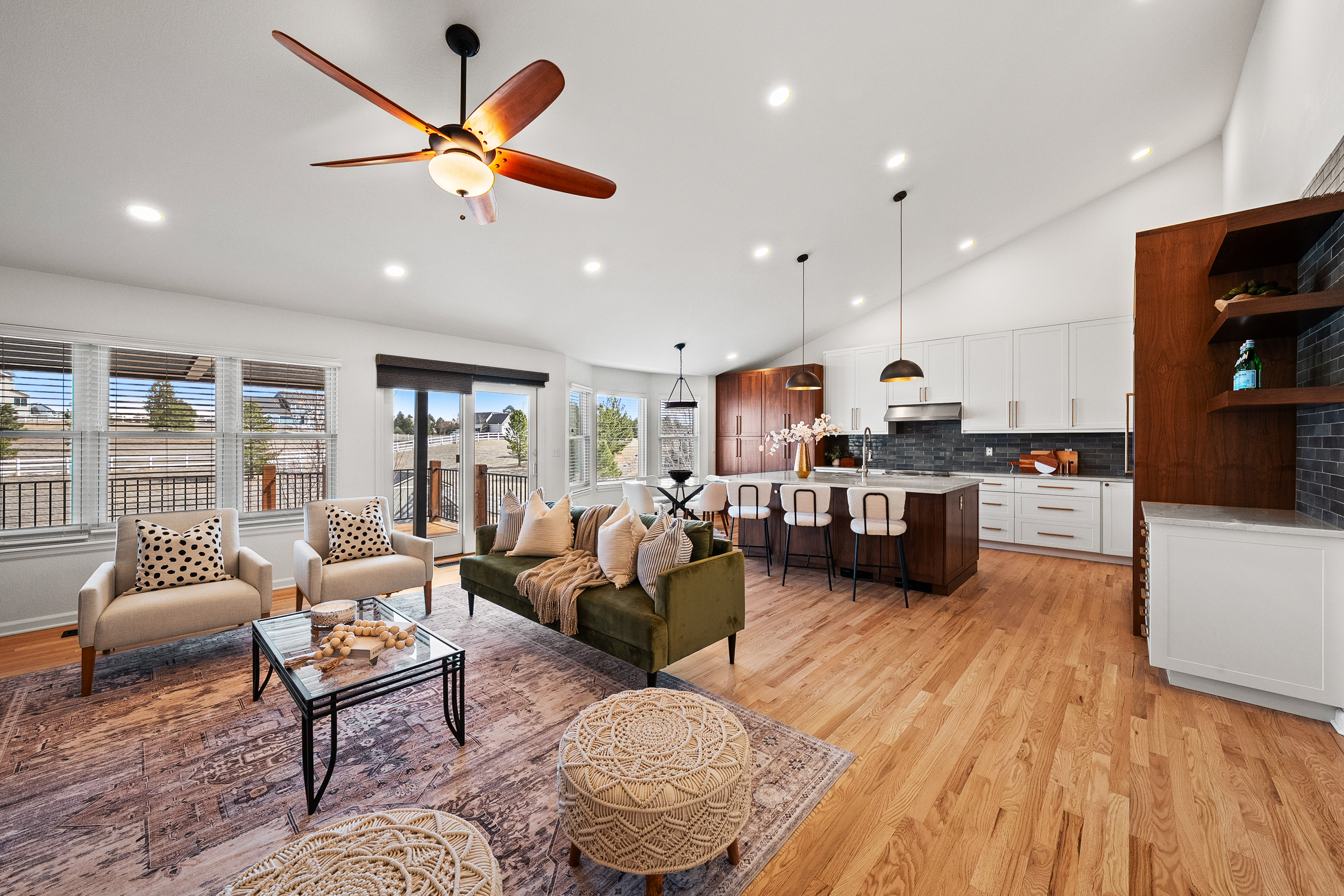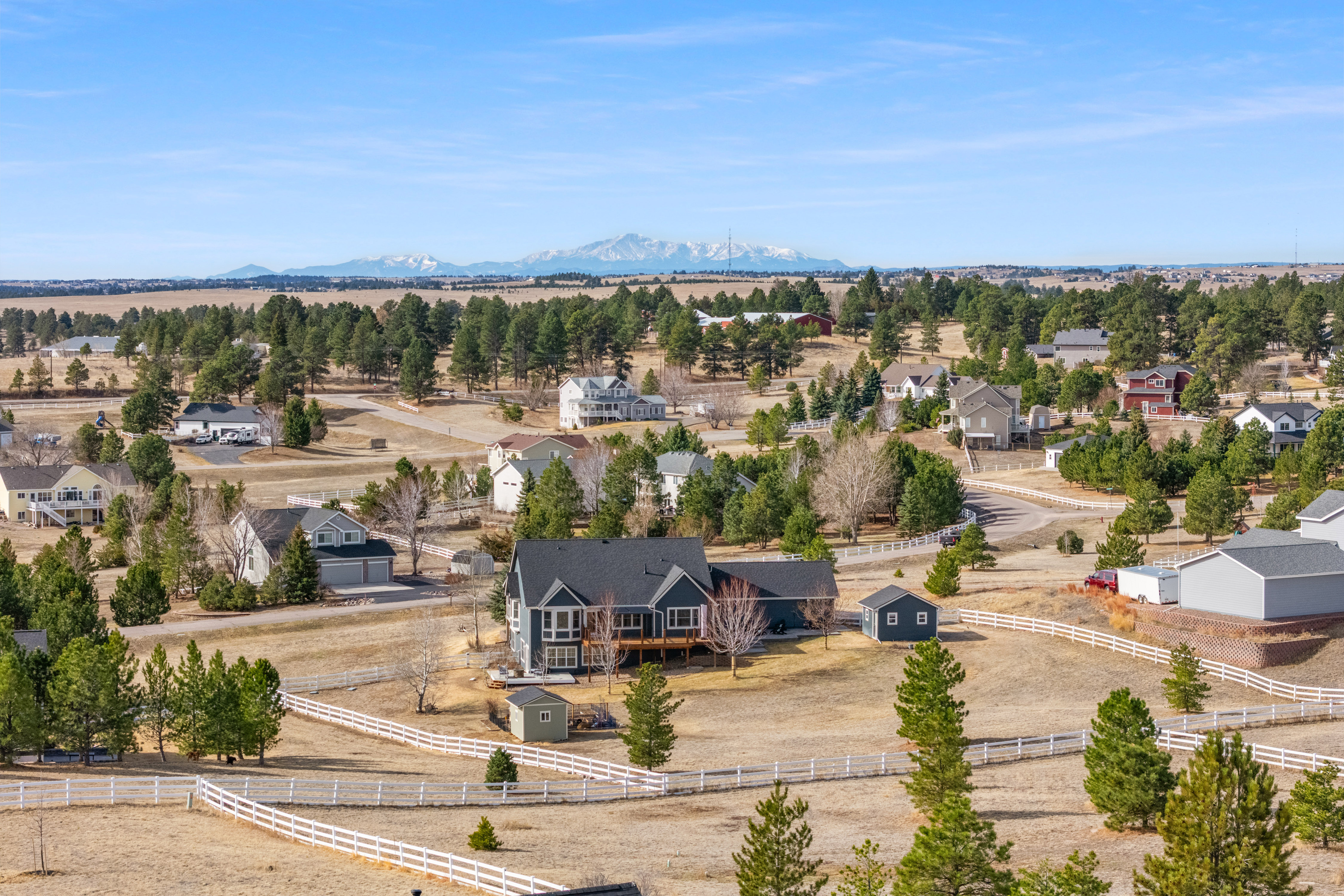 Located in Parker’s desirable Deer Creek Farm neighborhood, this thoughtfully designed home offers generous space, natural light, and comfortable main-floor living in a quiet and peaceful setting on a 1.6-acre lot. The open floor plan centers around a beautifully designed kitchen that flows seamlessly into the main living areas—ideal for both everyday living and entertaining. A main-floor primary suite provides convenience and privacy, while large windows throughout the home bring in abundant natural light. The finished walkout basement feels bright and welcoming thanks to oversized windows that fill the space with sunlight. Additional bedrooms, a three-quarter bathroom, and flexible living spaces create room for guests, hobbies, or multi-generational living.Outdoor living is equally inviting. A welcoming front porch offers a relaxing place to unwind, while the expansive fenced yard features multiple patios, a deck with a new pergola and updated railings, a greenhouse, a garden shed, and a large garden area. Mature landscaping and perennial flowers enhance the natural setting, and a sprinkler system serves the lawn areas near the home.The oversized, attached garage is a rare and valuable feature, offering three traditional bays with epoxy floors. Extra insulation was recently added to improve comfort year-round. Don’t miss an additional detached 1-car garage, perfect for heavy equipment storage, hobbies, or a workshop. Located just 15 minutes from Parker, the home offers easy access to Main Street and the town’s restaurants, shops, and community events while maintaining convenient access to DIA without the typical I-70 traffic. A unique combination of privacy, functionality, and space makes this Deer Creek Farm property a standout opportunity in Parker.